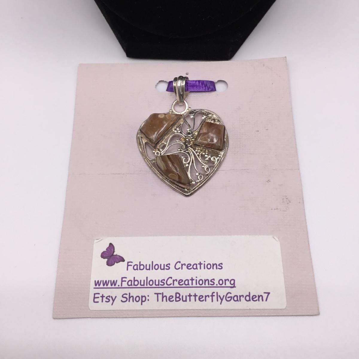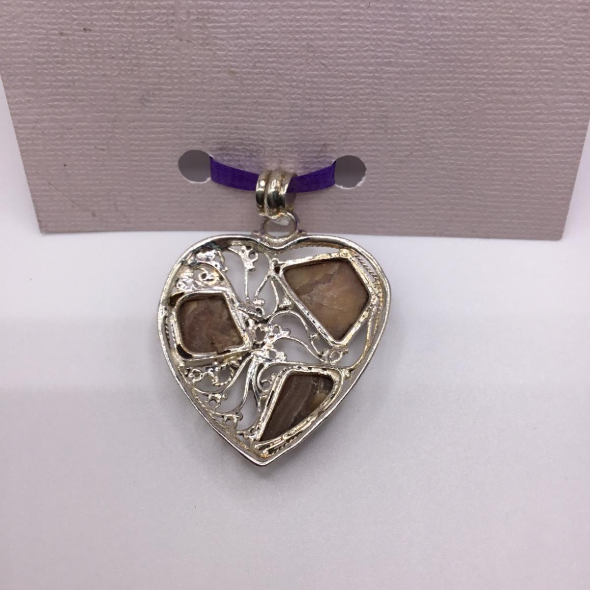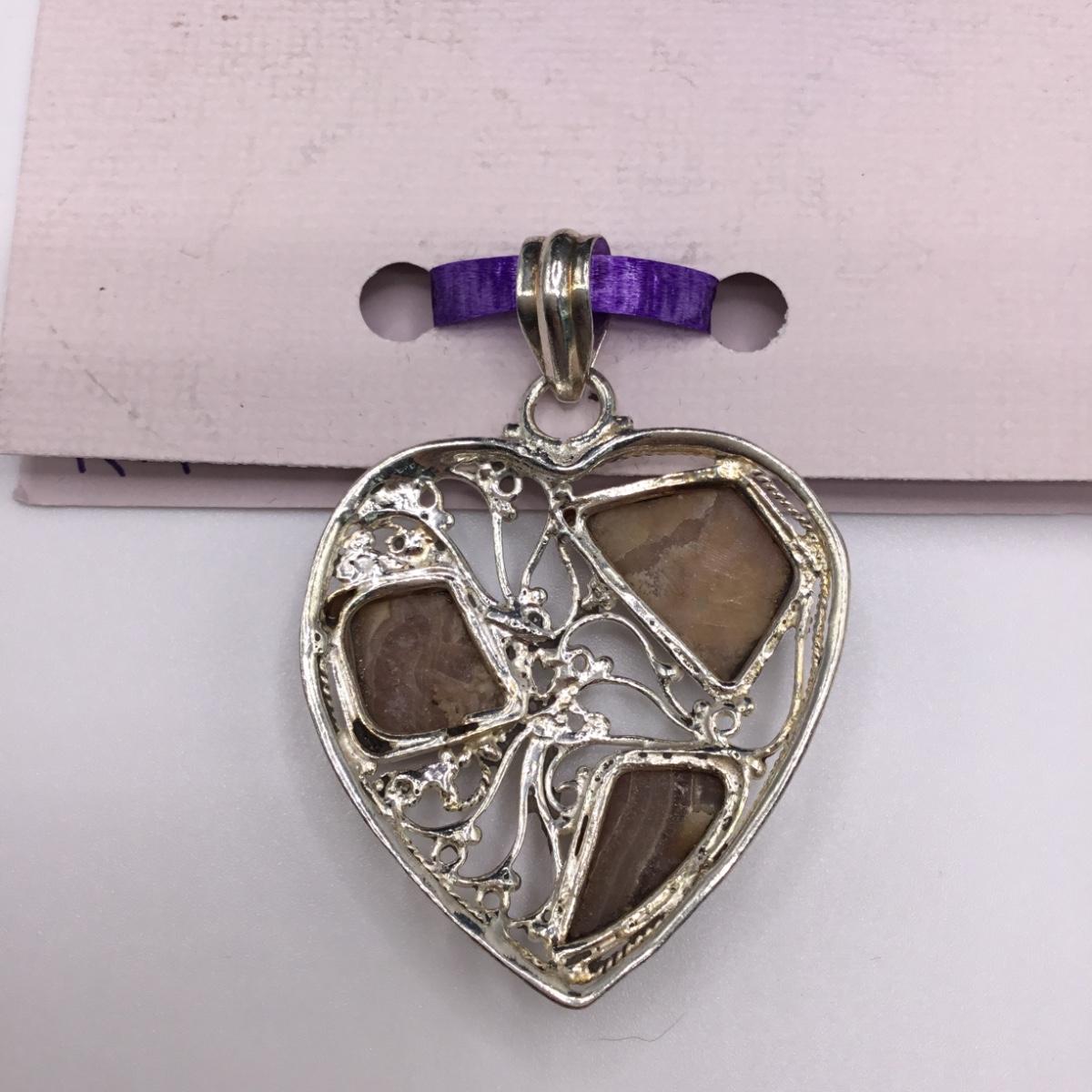 Honey-Brown Rhodochrosite in Heart-Shaped Silver Pendant. The pictures show condition, measurements if taken, and what is included in the lot. All items unless noted, are pre-owned and may or may not have been worn. Unless noted in the pictures or description, there are no boxes for the jewelry. Shipping will be offered at the actual shipping cost to your zip-code plus $5.00 for packing and handling. We can do combined shipping. Items over $50.00 will have an added insurance charge, and will be signature required for delivery at the buyers expense. All lots have a Buyers Premium of 15%. For a shipping quote, please email with zip code and items (lot) numbers. Treasure Me Estate Sales offers shipping as a courtesy and in doing so, reserves the right to choose the shipping supplies including whether not to send in an envelope or box to protect the integrity of the item. When the auction closes, and all items have sold, you will receive an invoice with all of your winning items. If you need shipping, and there is not a shipping charge on the invoice, please email for a quote and new invoice will be sent with shipping charges and pay at that time. Paying through PayPal helps so we can generate a label with tracking, but is not required. Thank you and please email with any questions.