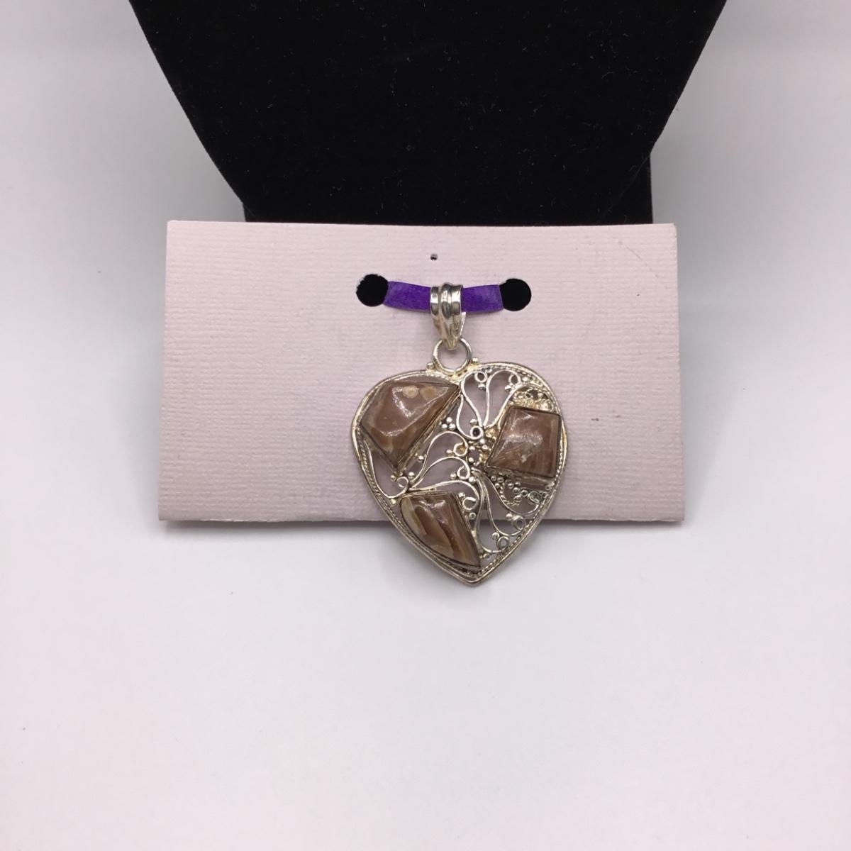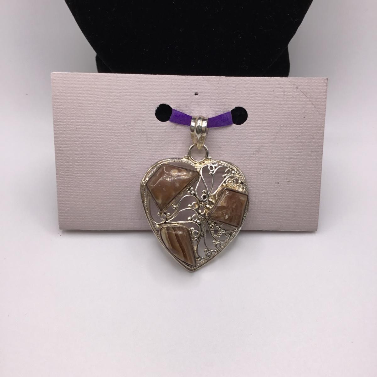 LOTJ139: Honey-Brown Rhodochrosite in Heart-Shaped Silver Pendant