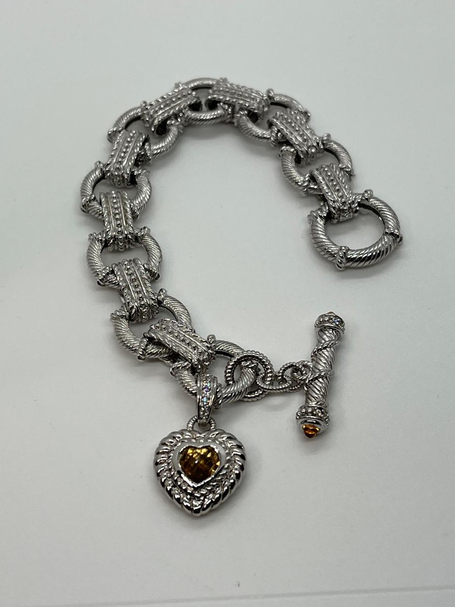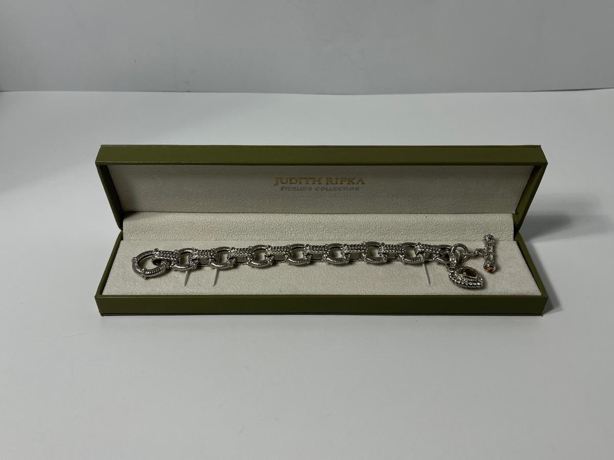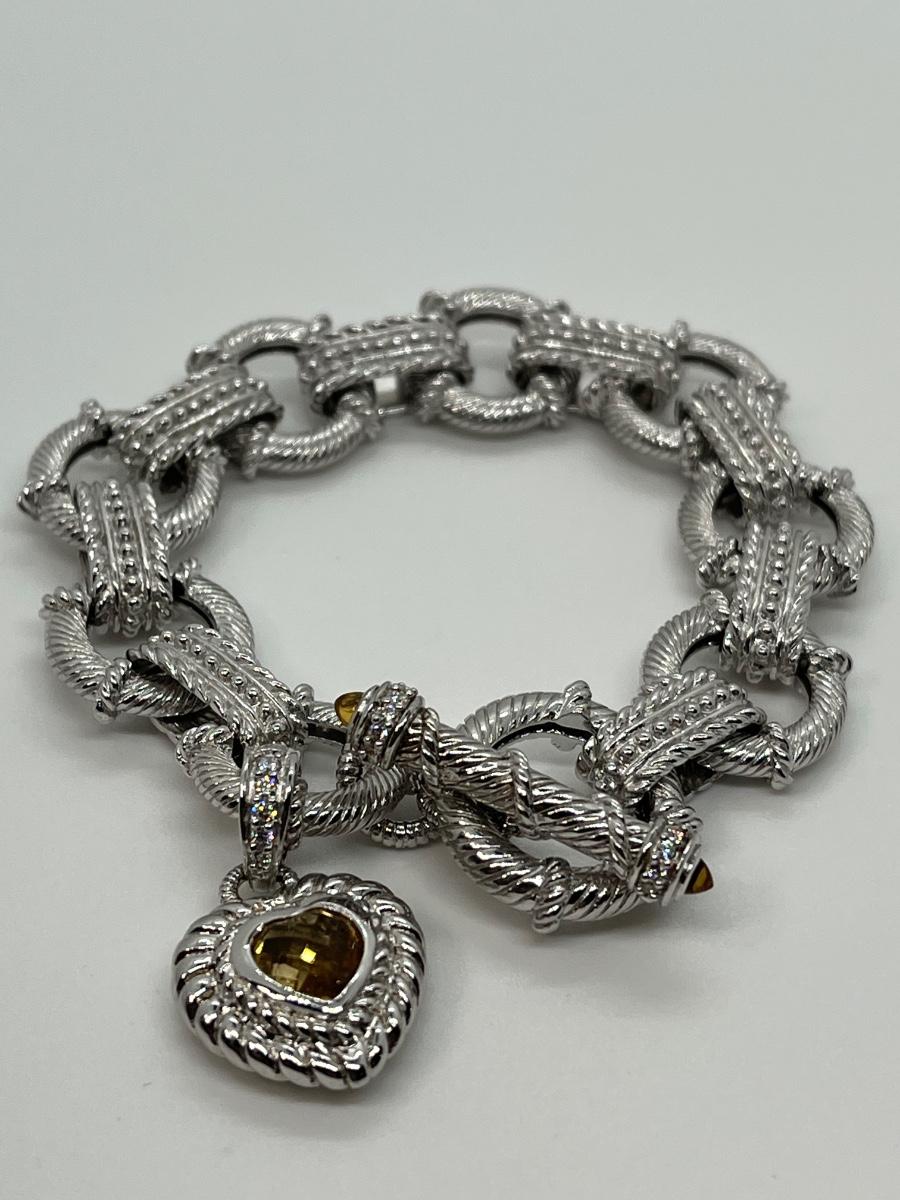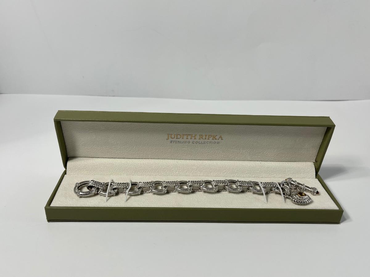 LOTJ151: New in box Judith Ripka Sterling Silver Link Bracelet with CZ Heart 7 1/2"L