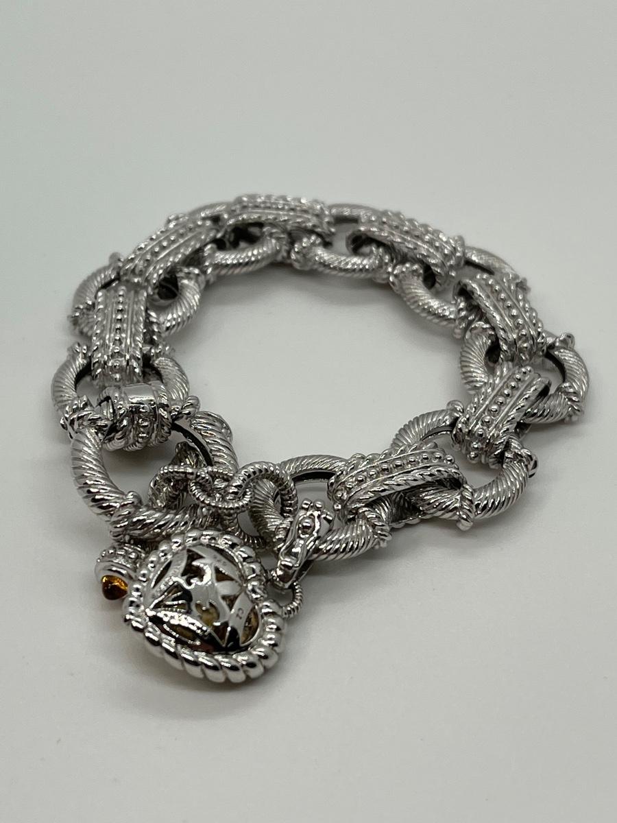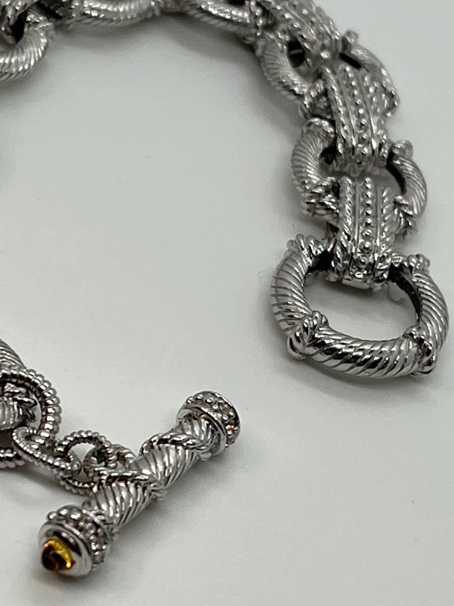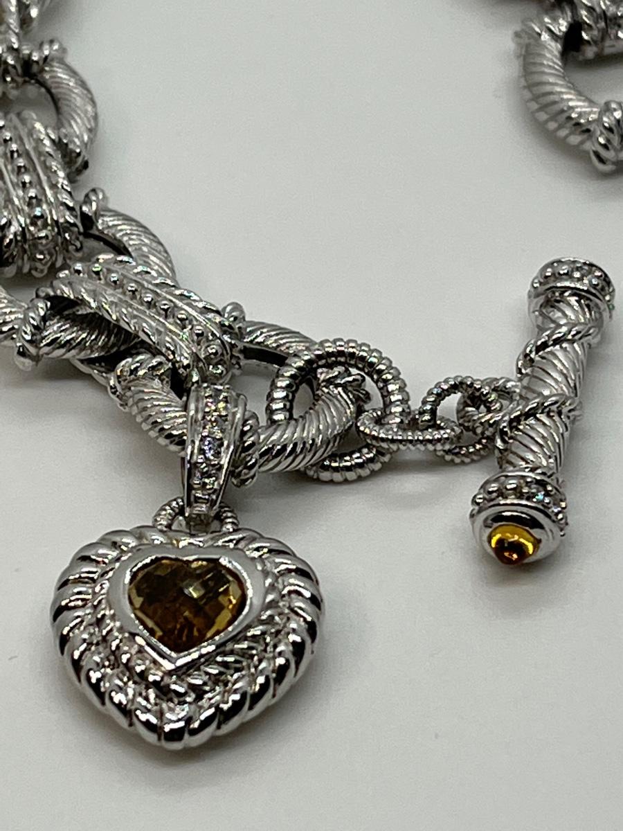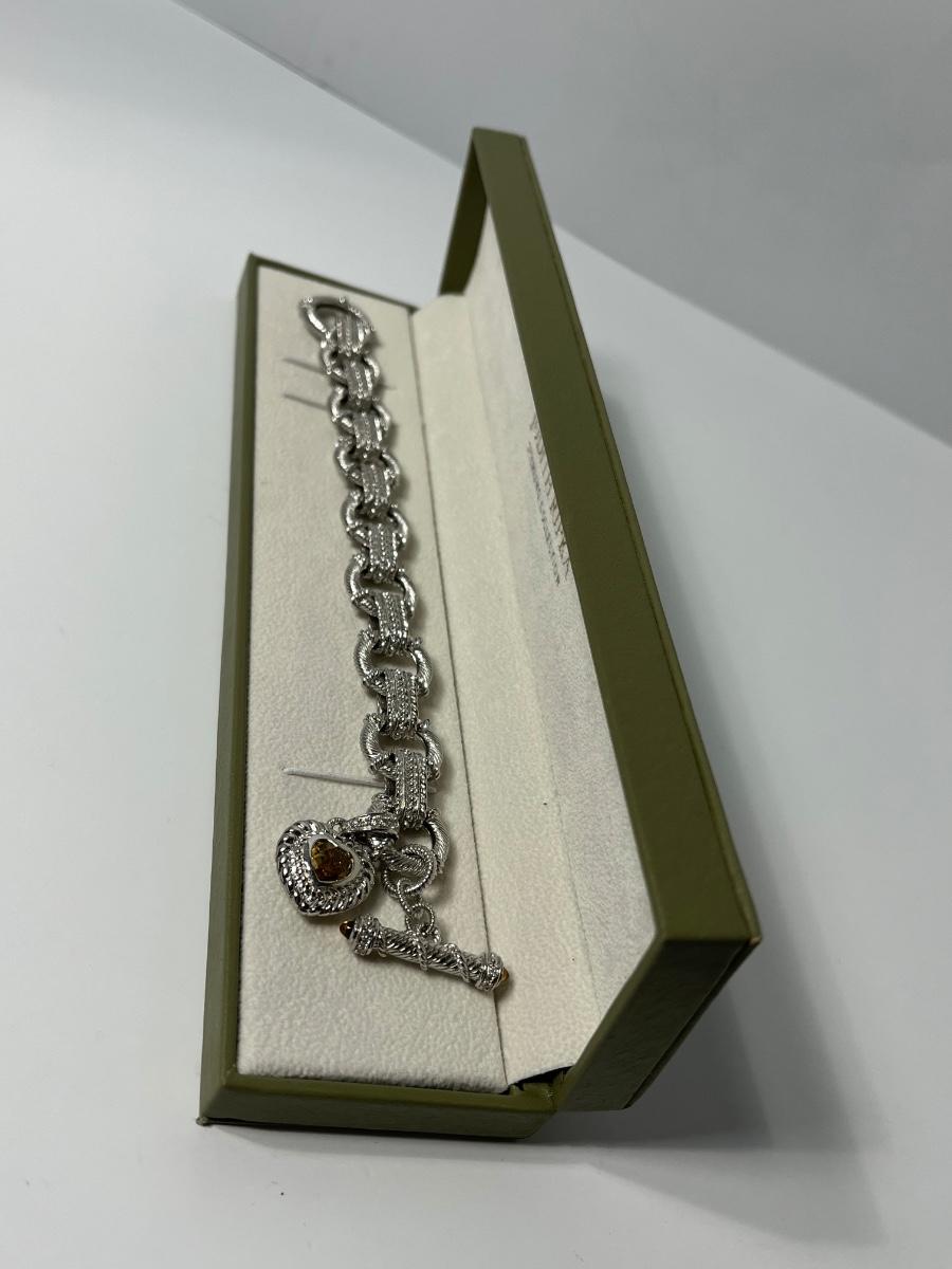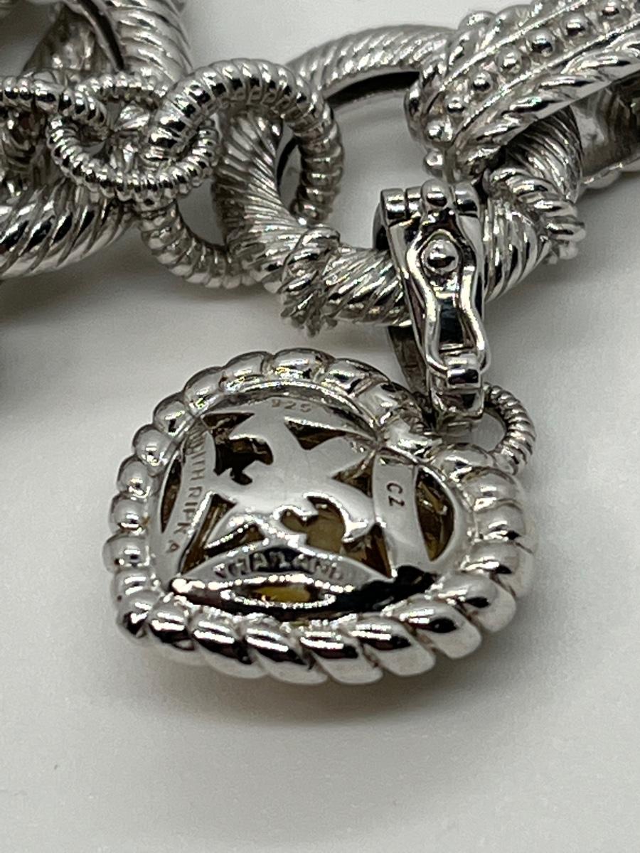 LOTJ151: New in box Judith Ripka Sterling Silver Link Bracelet with CZ Heart 7 1/2"L