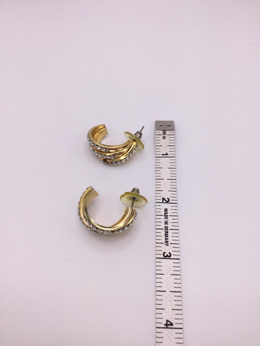 Three Pair Fashion Earrings Green Plastic, Goldtone, Rhinestones. The pictures show condition, measurements if taken, and what is included in the lot. All items unless noted, are pre-owned and may or may not have been worn. Unless noted in the pictures or description, there are no boxes for the jewelry. Shipping will be offered at the actual shipping cost to your zip-code plus $5.00 for packing and handling. We can do combined shipping. Items over $50.00 will have an added insurance charge, and will be signature required for delivery at the buyers expense. All lots have a Buyers Premium of 15%. For a shipping quote, please email with zip code and items (lot) numbers. Treasure Me Estate Sales offers shipping as a courtesy and in doing so, reserves the right to choose the shipping supplies including whether not to send in an envelope or box to protect the integrity of the item. When the auction closes, and all items have sold, you will receive an invoice with all of your winning items. If you need shipping, and there is not a shipping charge on the invoice, please email for a quote and new invoice will be sent with shipping charges and pay at that time. Paying through PayPal helps so we can generate a label with tracking, but is not required. Thank you and please email with any questions.