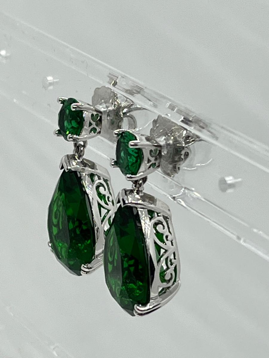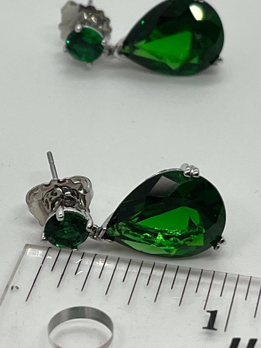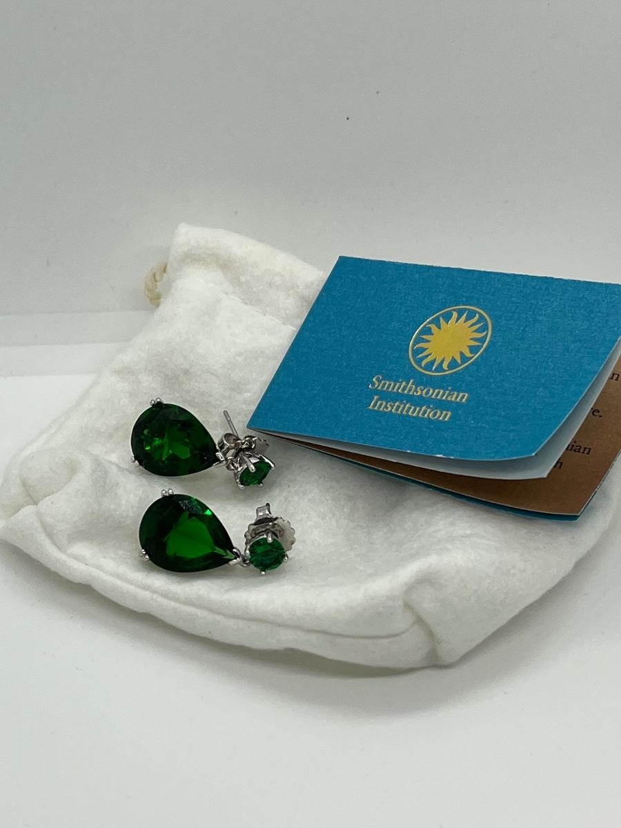 LOTJ157: New in box Smithsonian Silvertone Simulated Tvastorite Pierced Drop Earrings