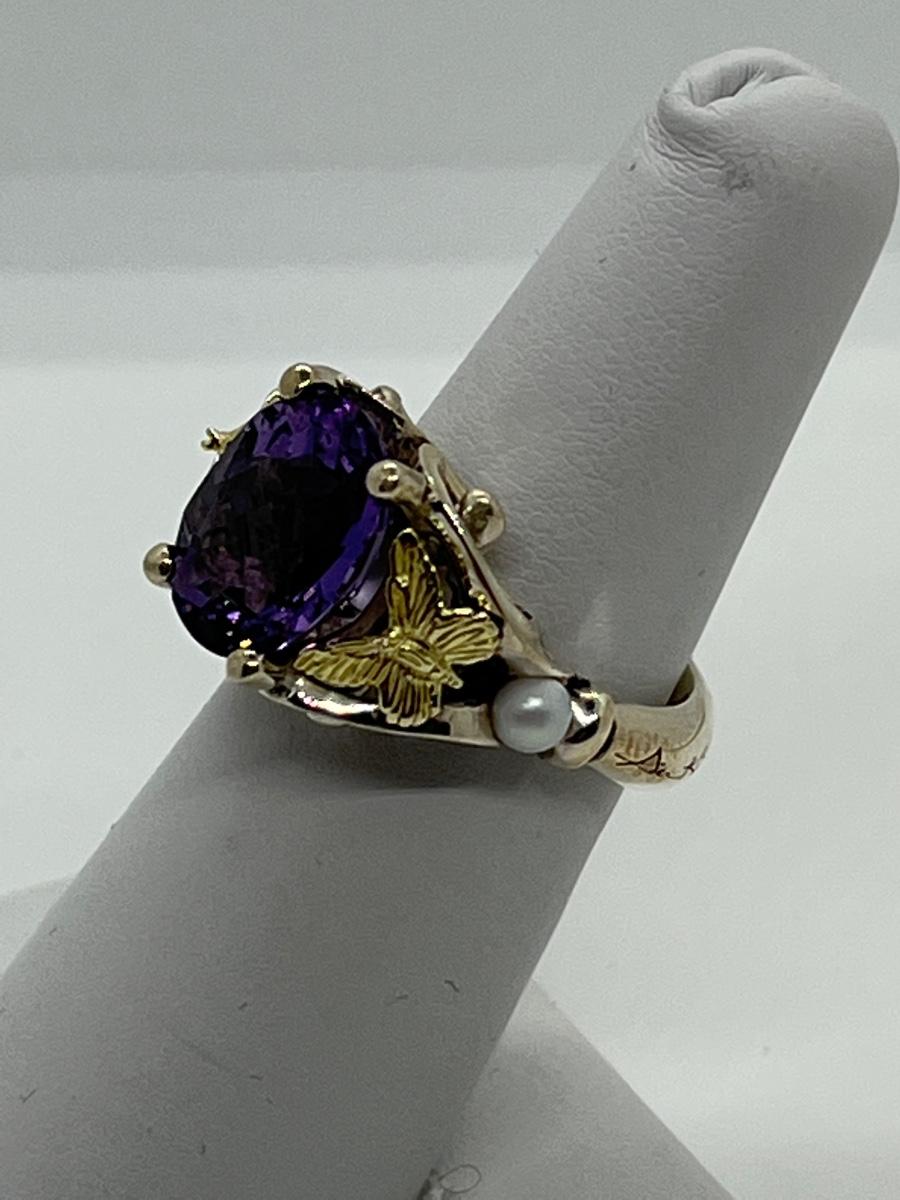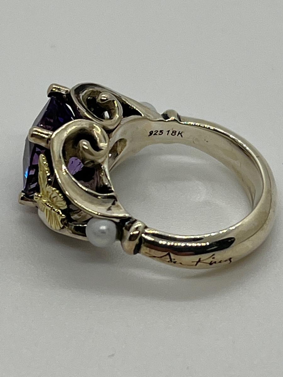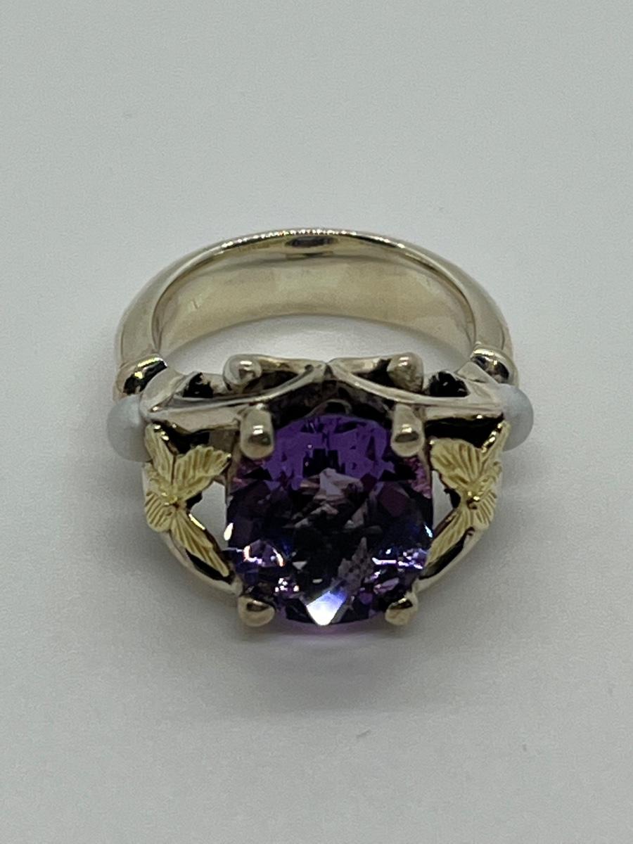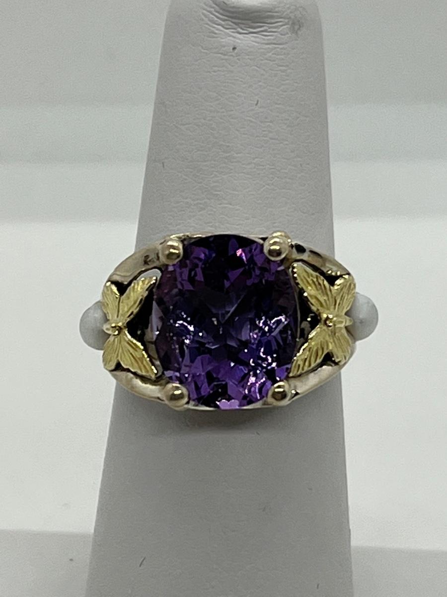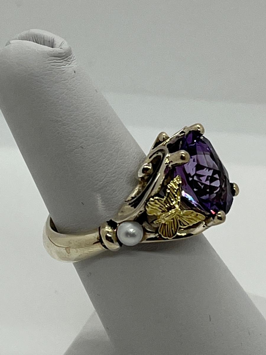 LOTJ158: New in Box Ann King Sterling/18k Butterfly Accent 3.40cttw Amethyst Ring Size 6