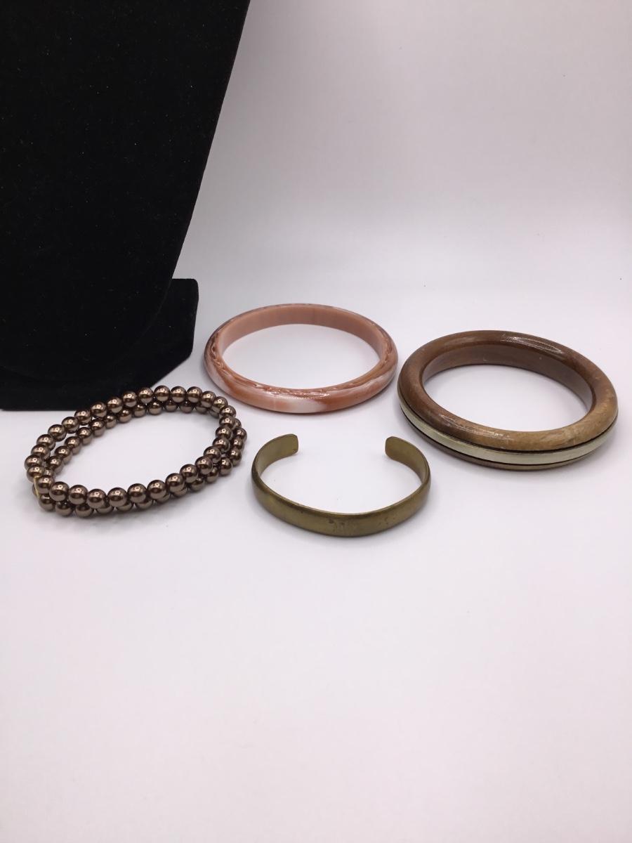 LOTJ158: Four Costume Bracelets - Metal, Wood, Plastic