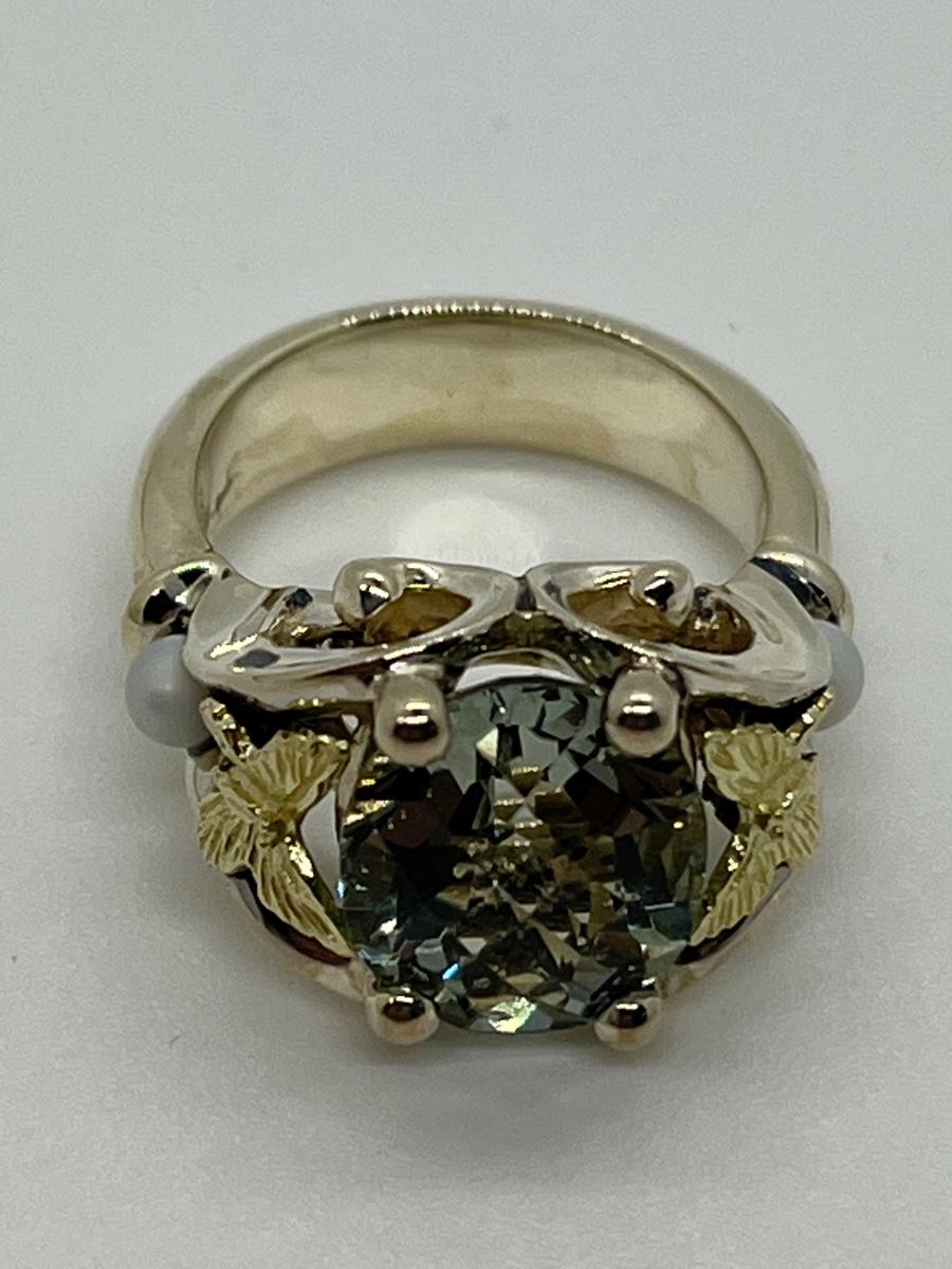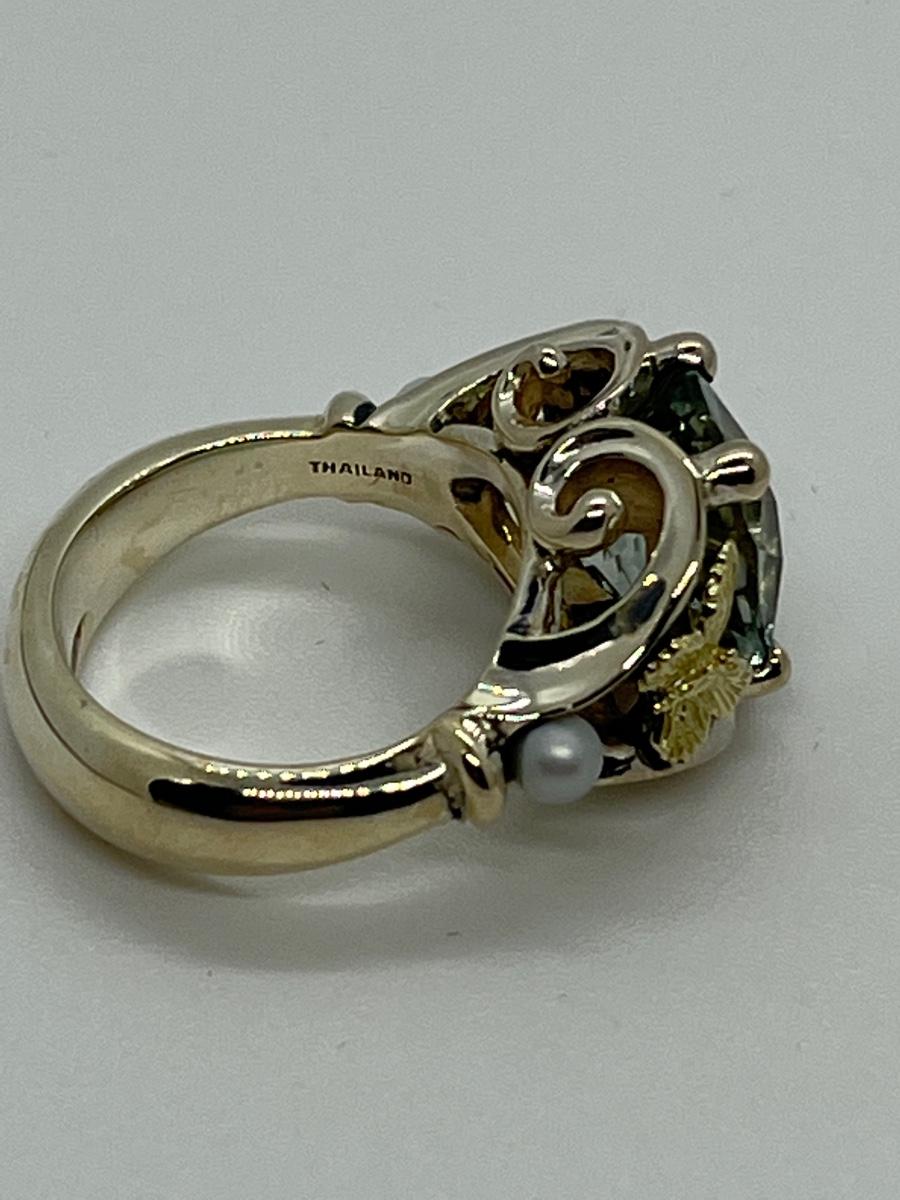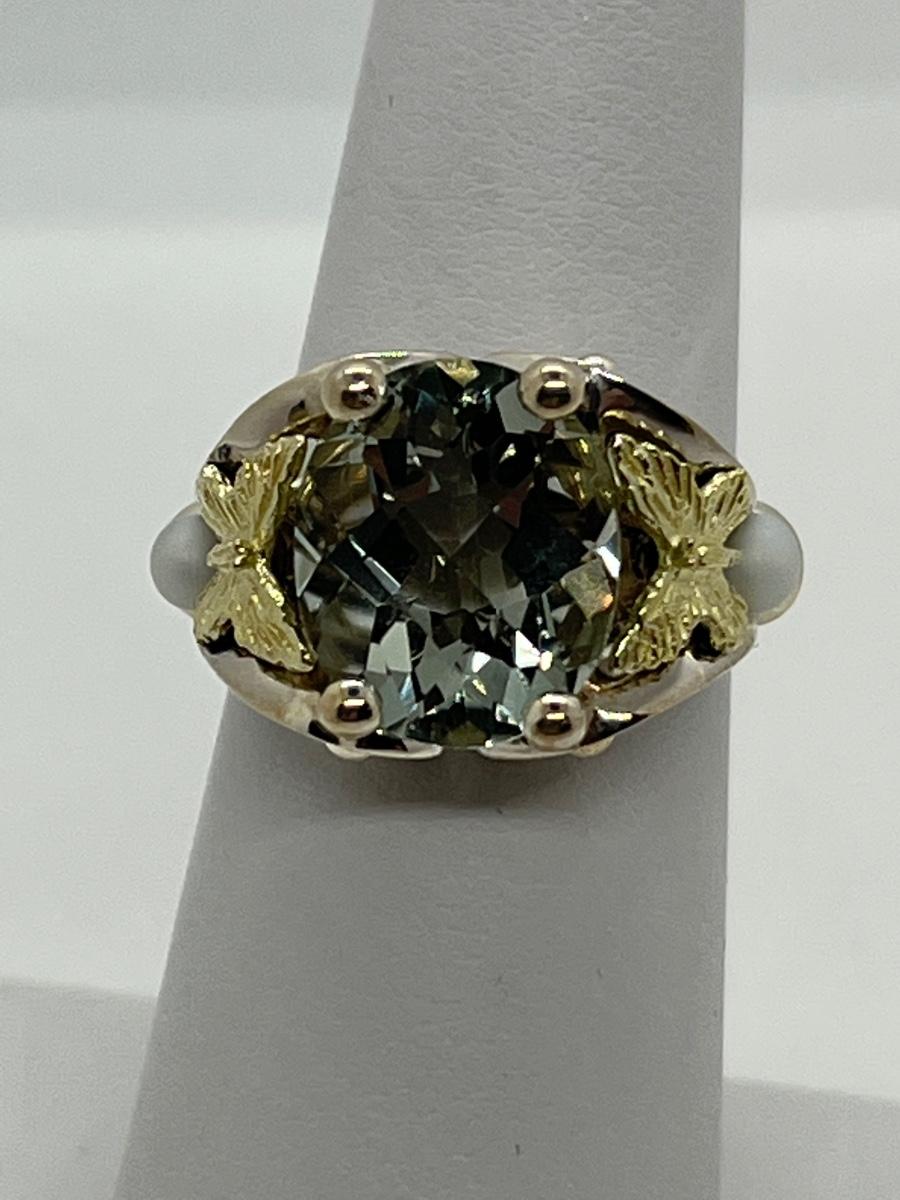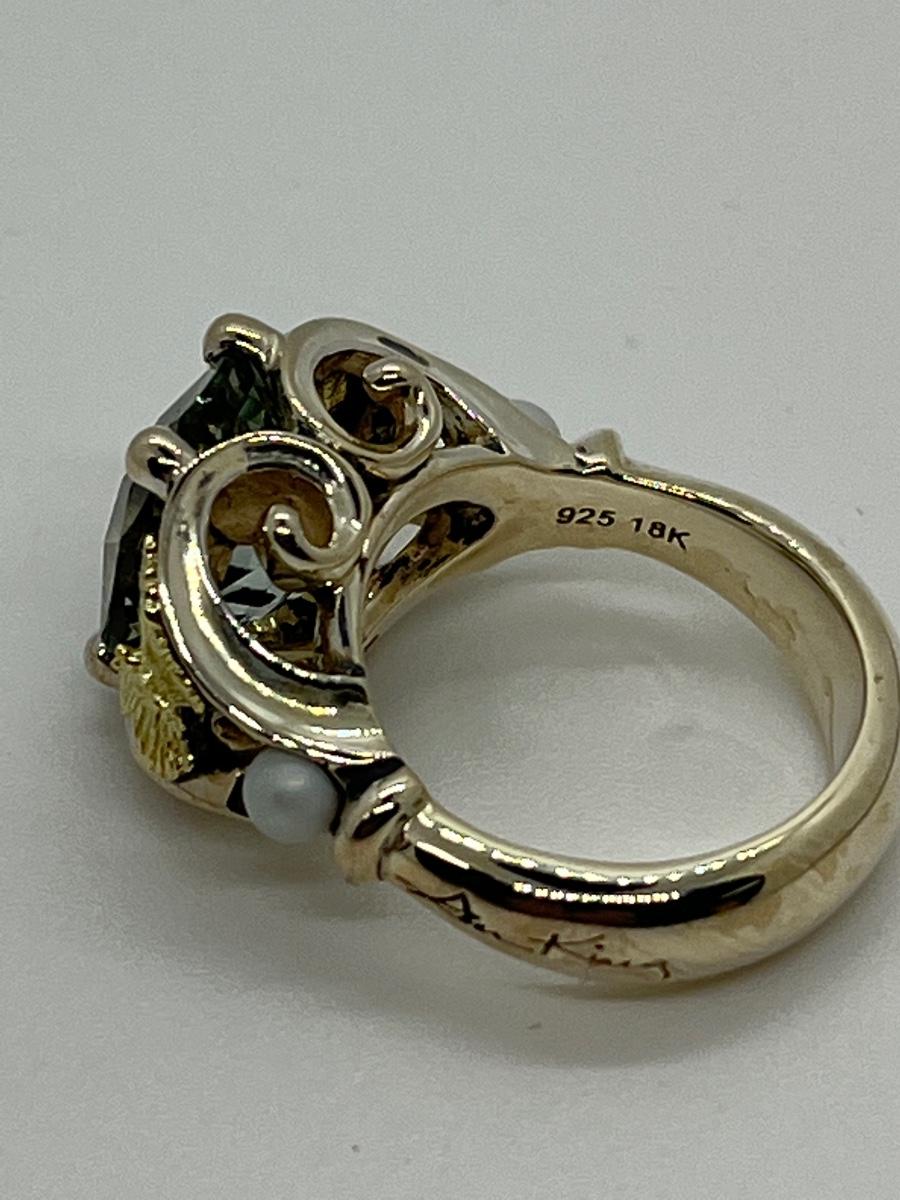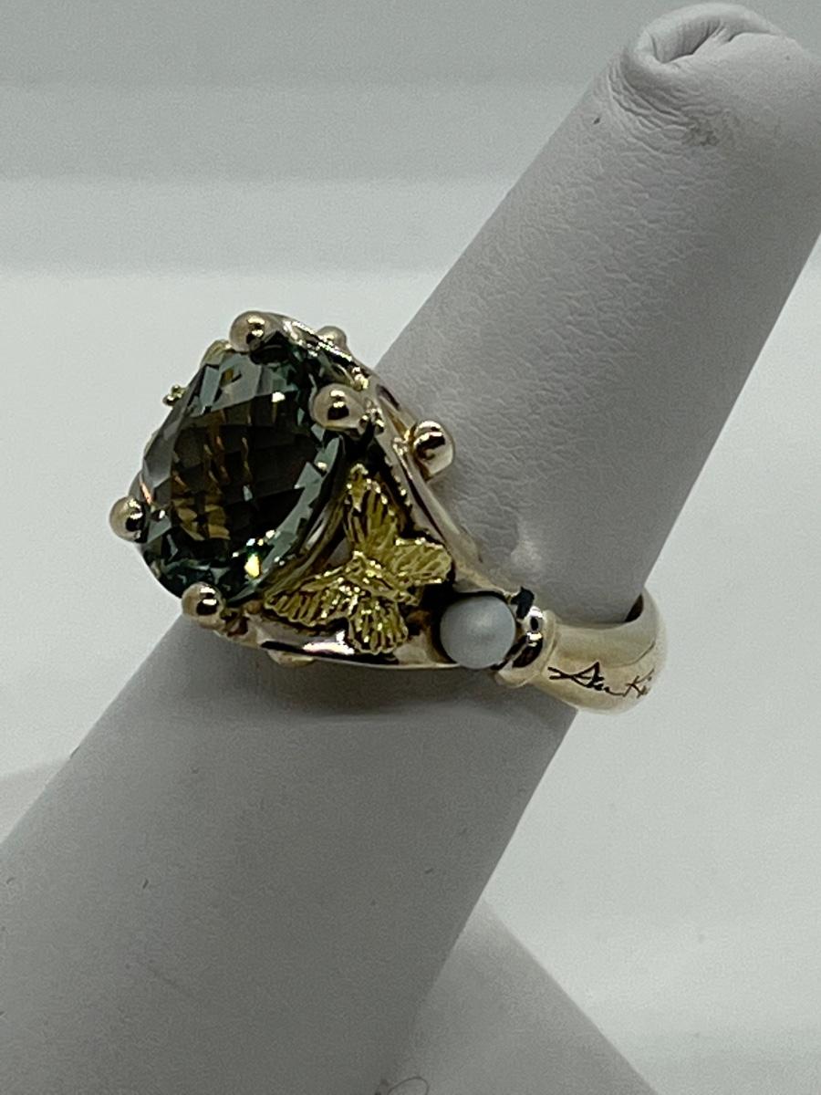 LOTJ160: New in Box Ann King Sterling/18k Butterfly Accent 3.40cttw Green Quartz Ring Size 6