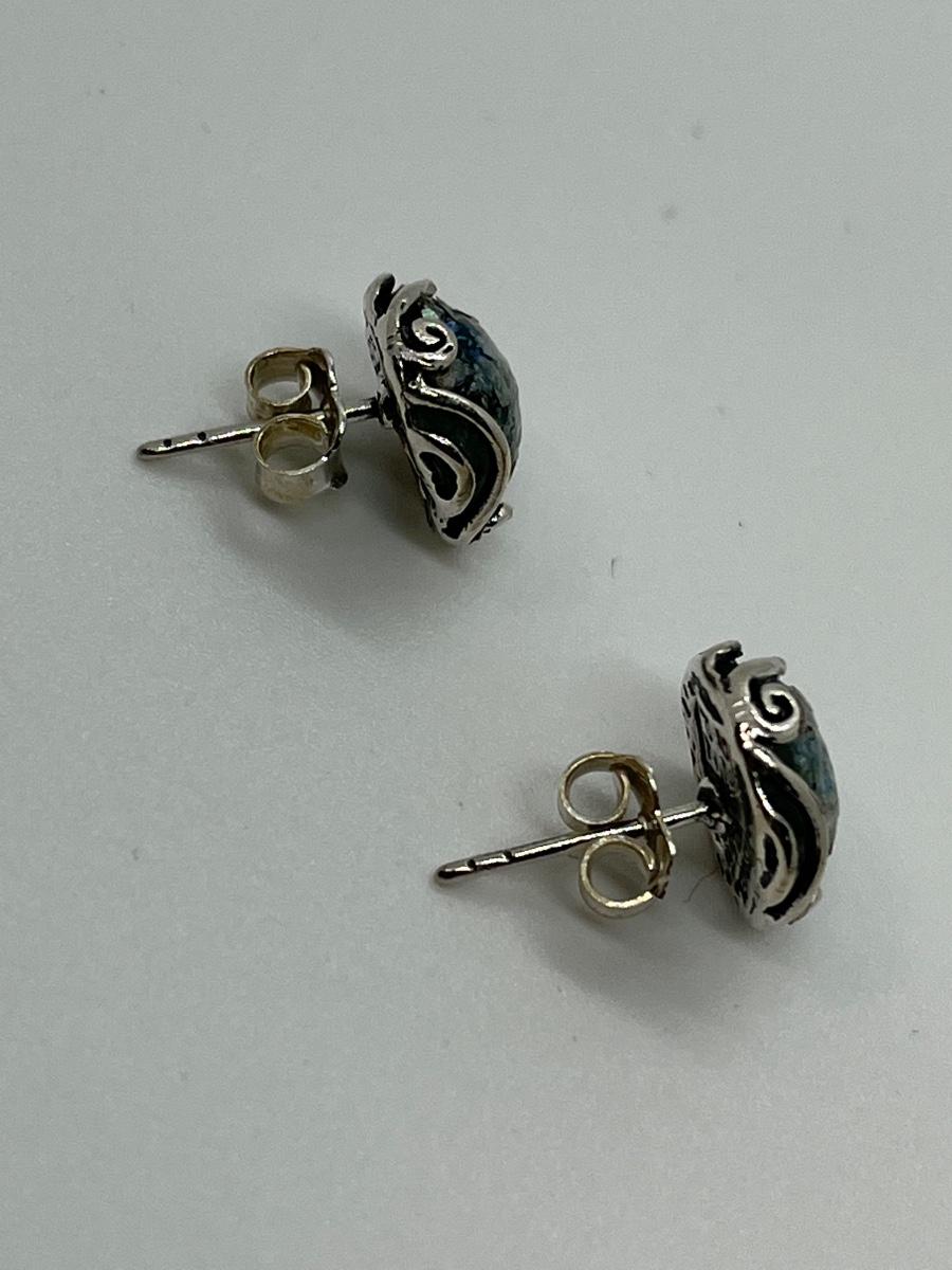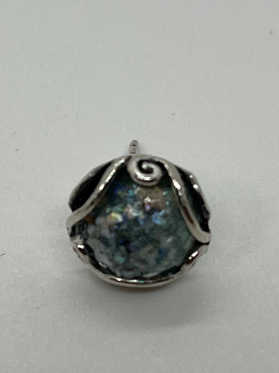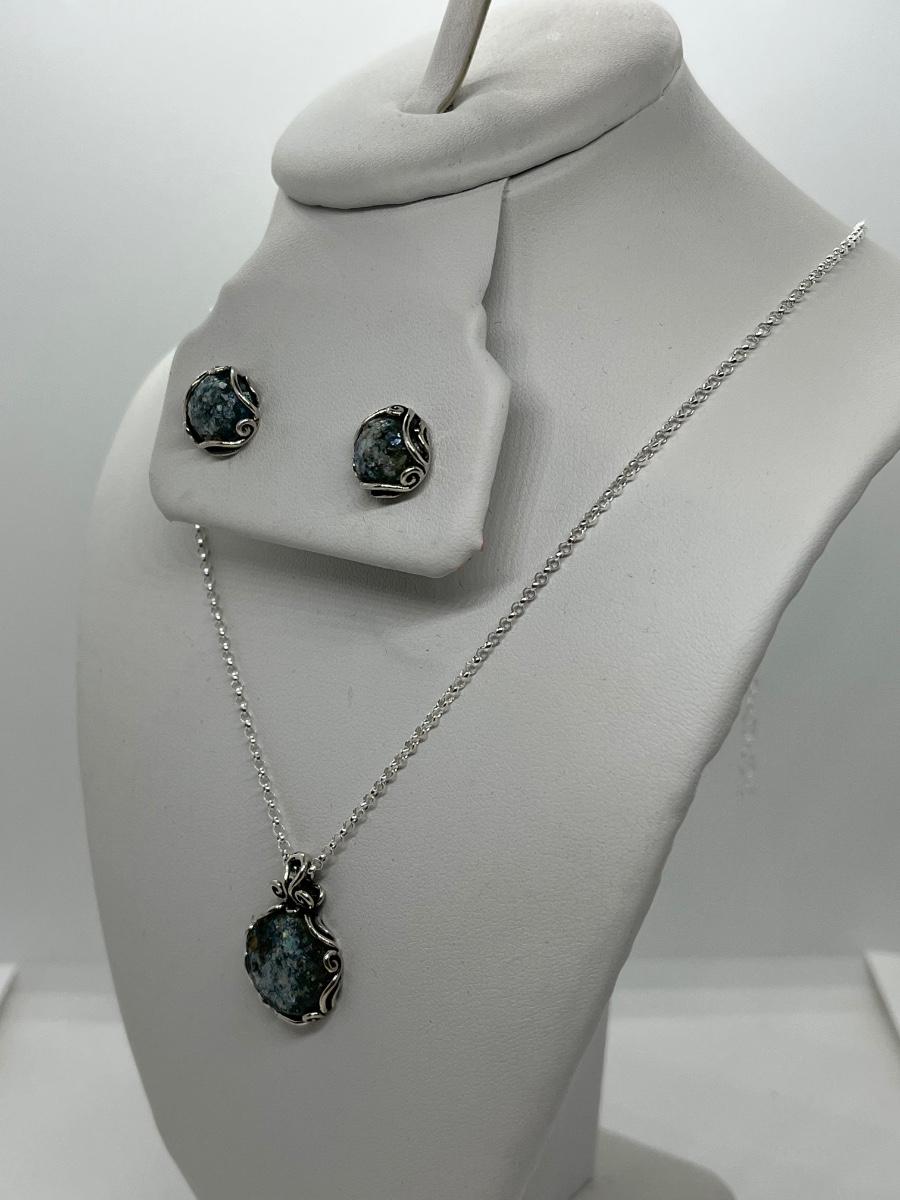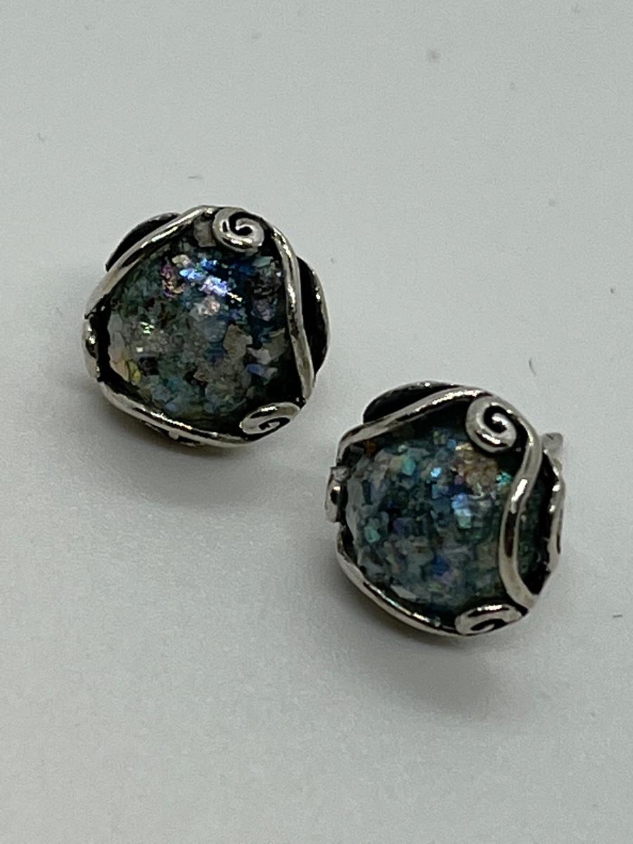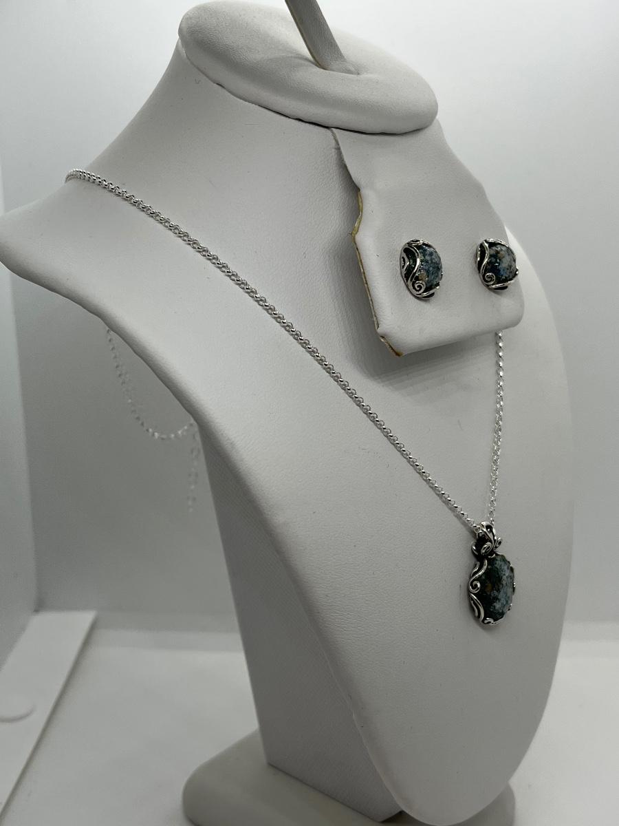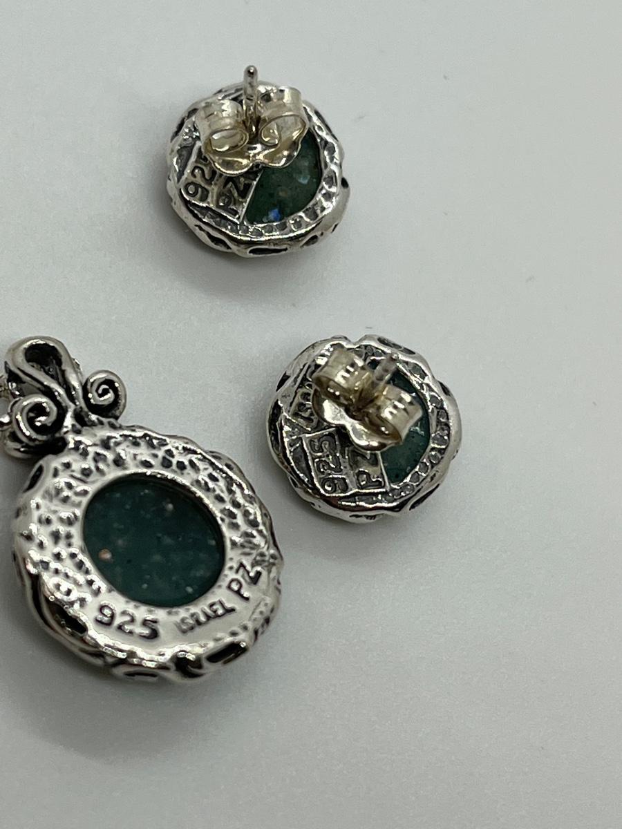 LOTJ161: New in Box Or Paz Sterling Silver Roman glass on 18" Necklace and Pierced Earrings Set from Israel
