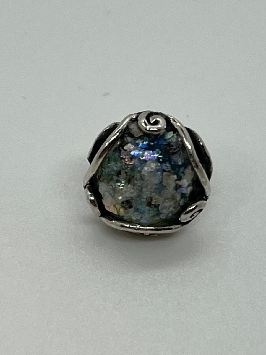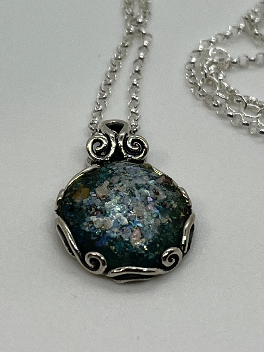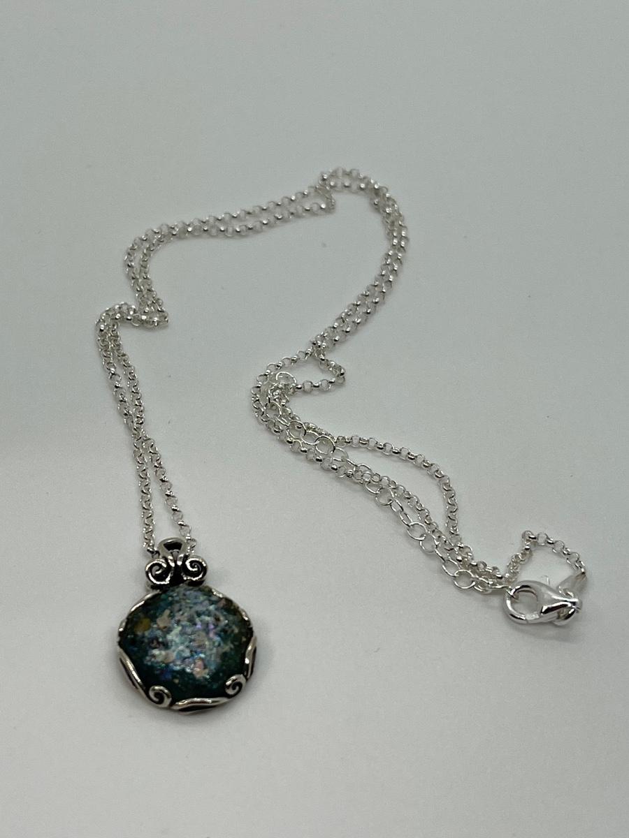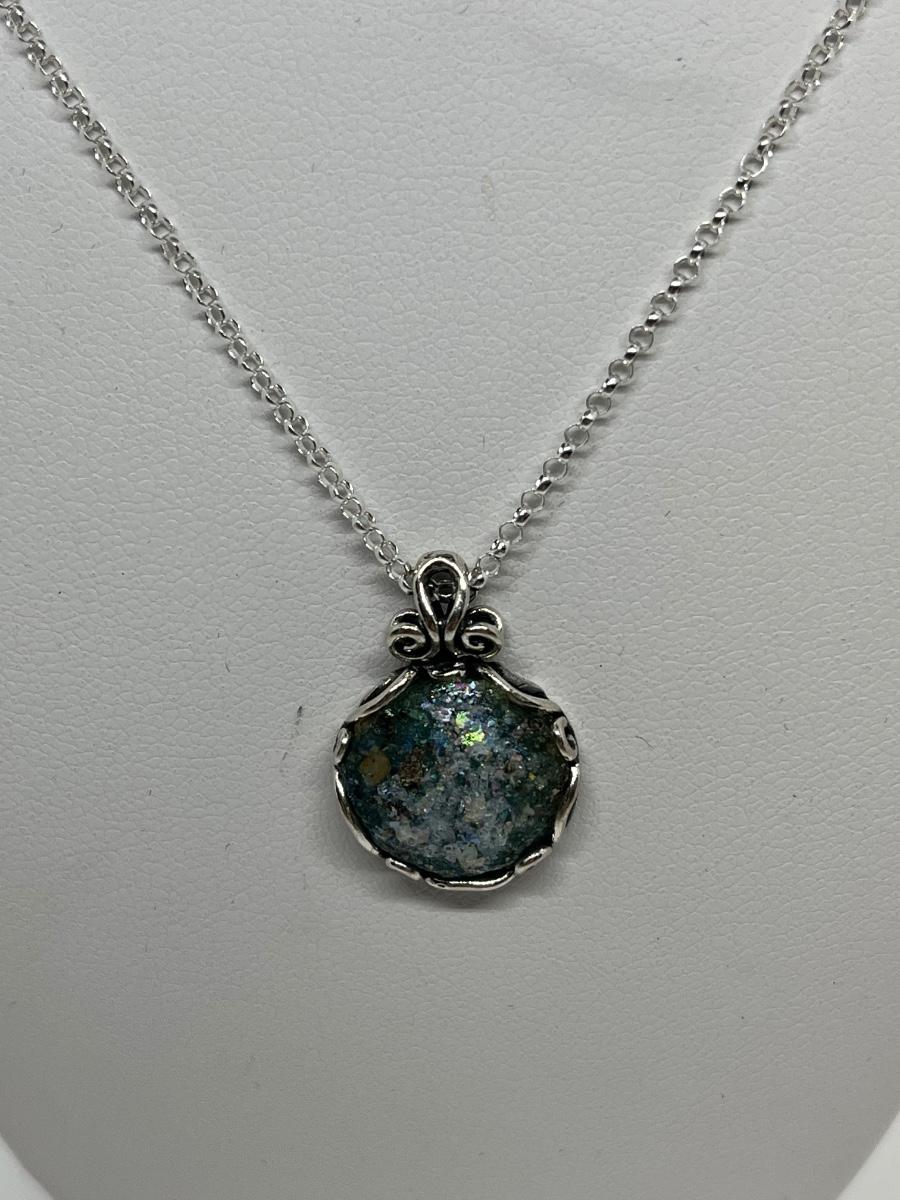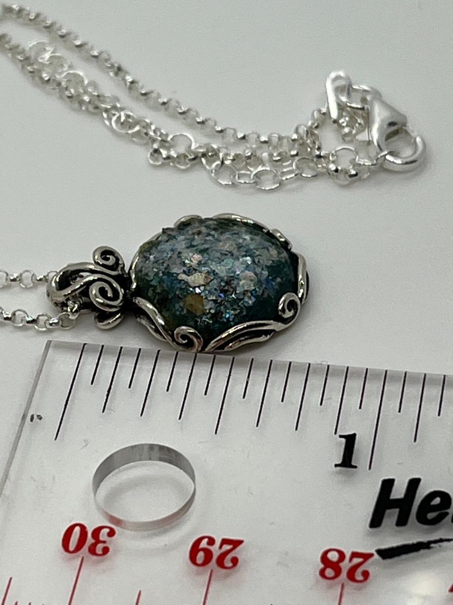 LOTJ161: New in Box Or Paz Sterling Silver Roman glass on 18" Necklace and Pierced Earrings Set from Israel