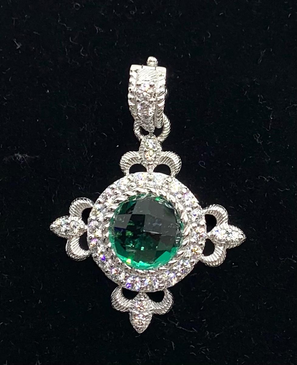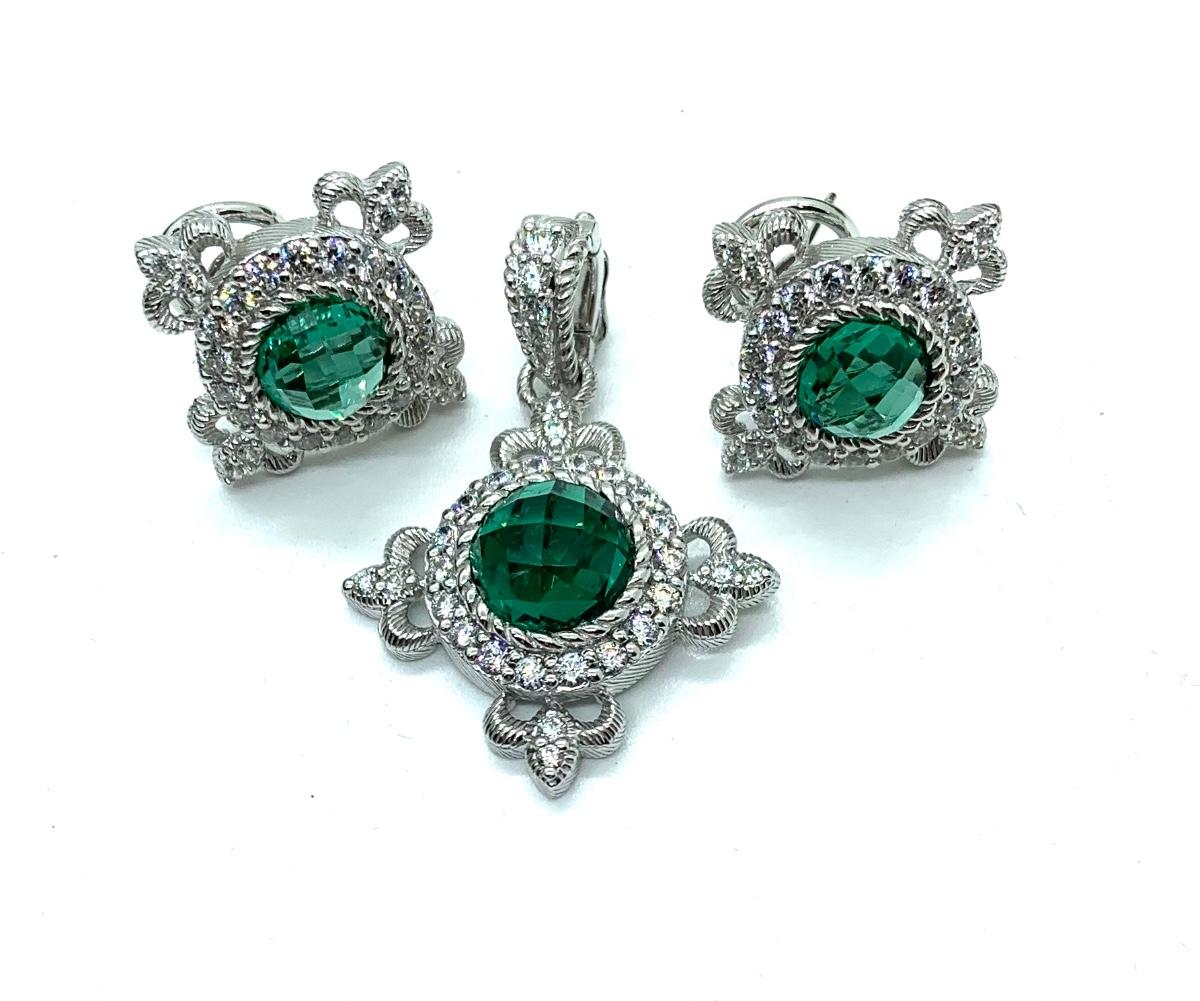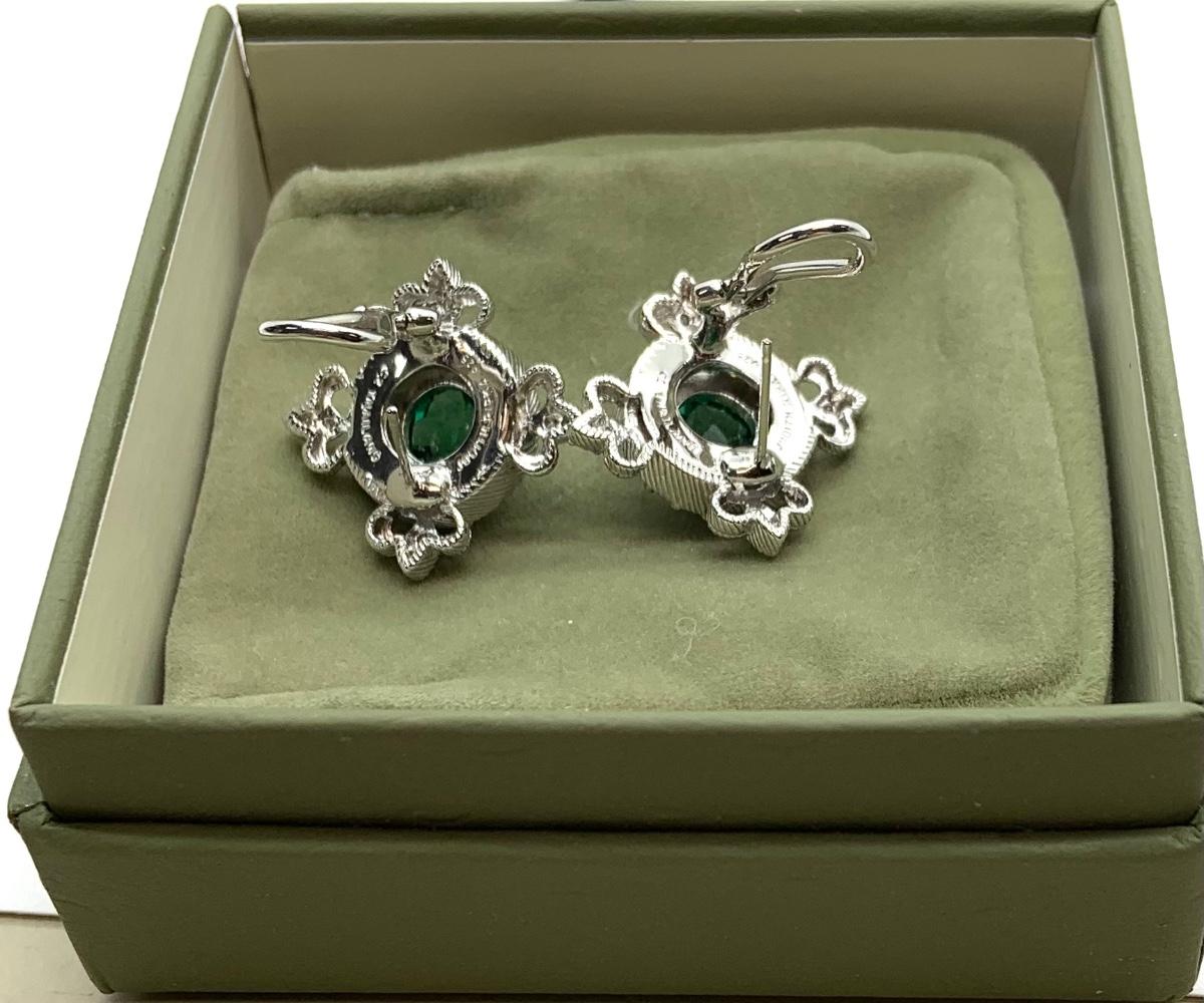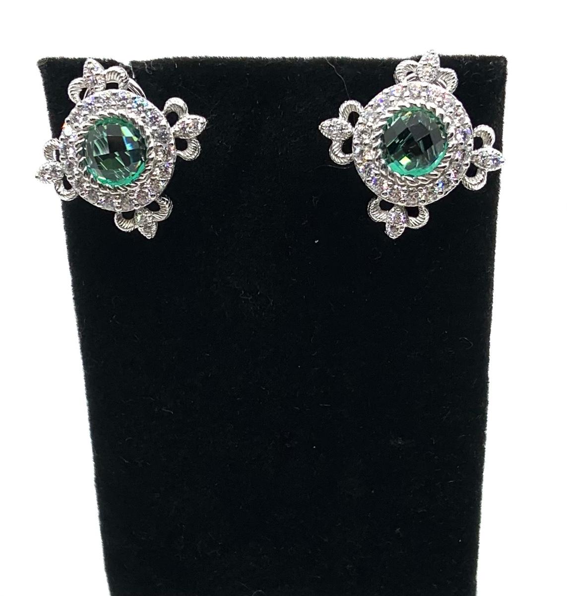 LOTJ162: New in box Judith Ripka Sterling Diamonique Fleur-de-lis Pierced Earrings and Enhancer Set