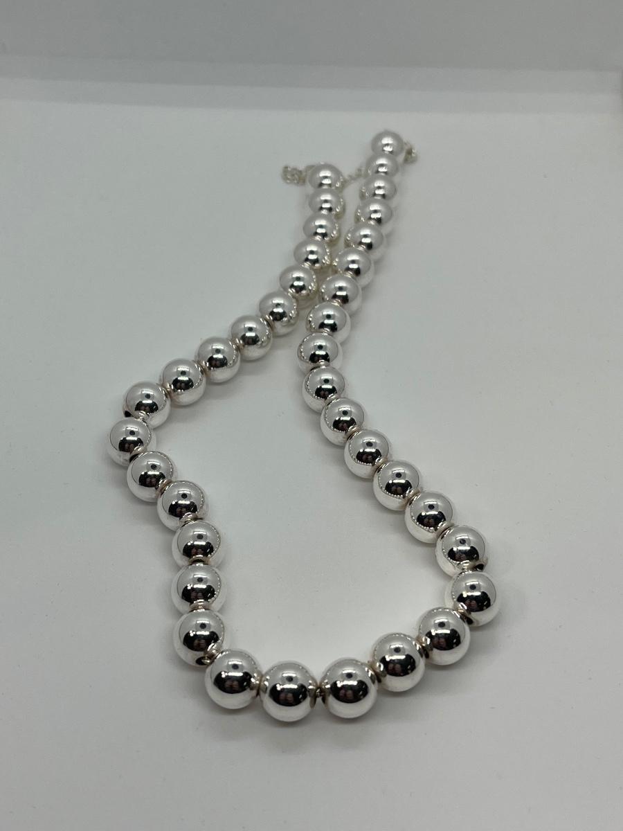 LOTJ165:New in box Sterling Silver Bold Bead Necklace 15" L with 3" extender
