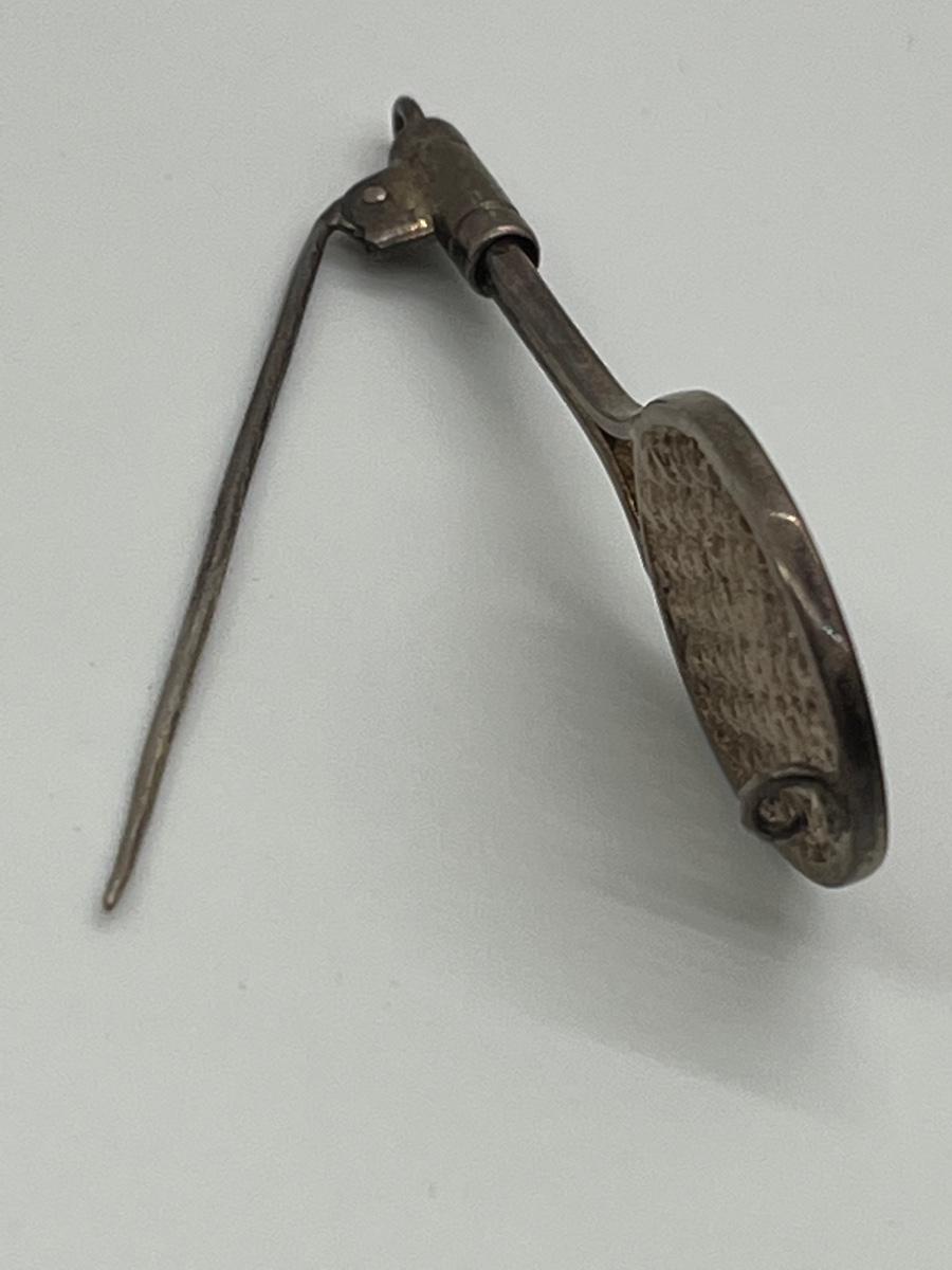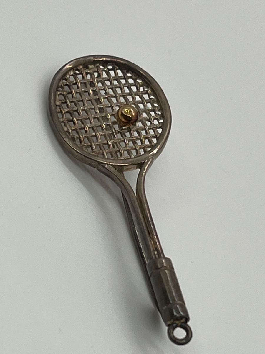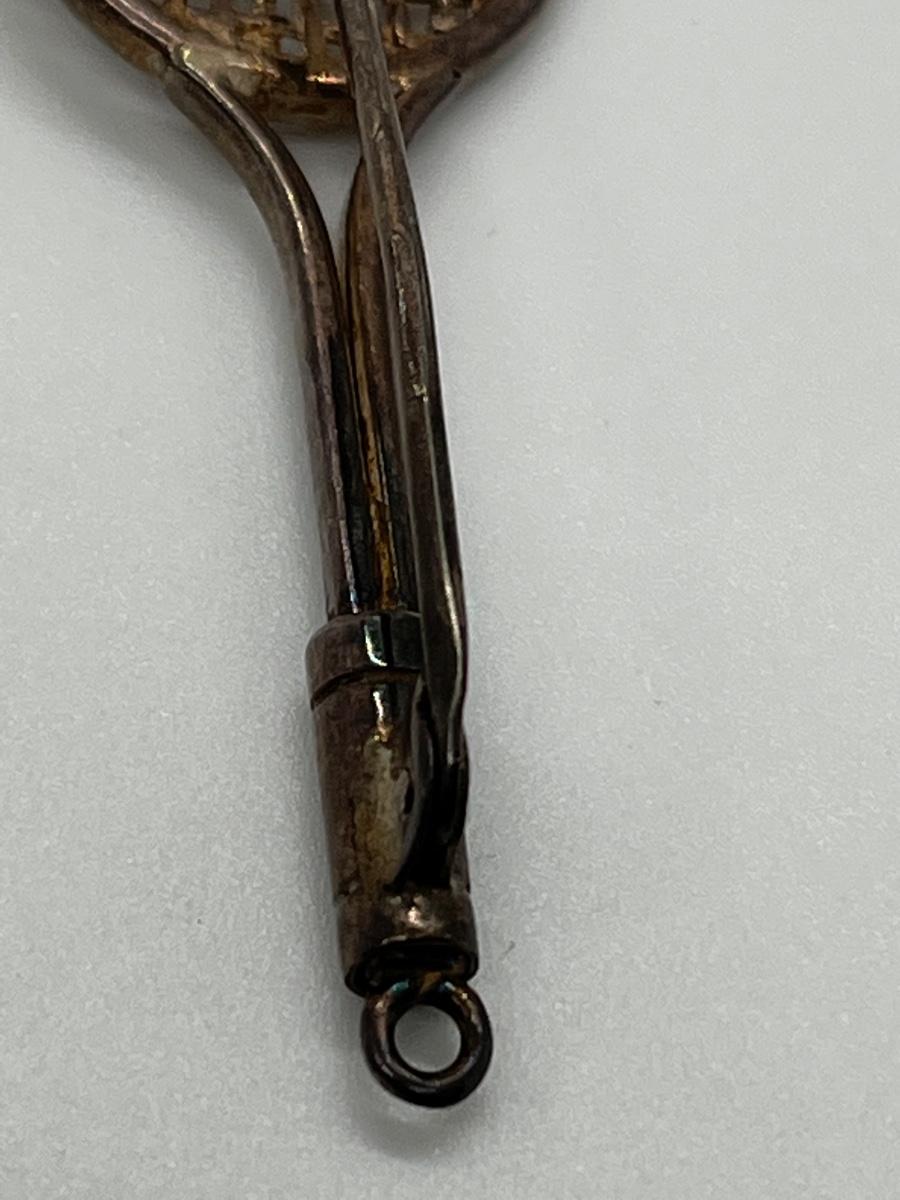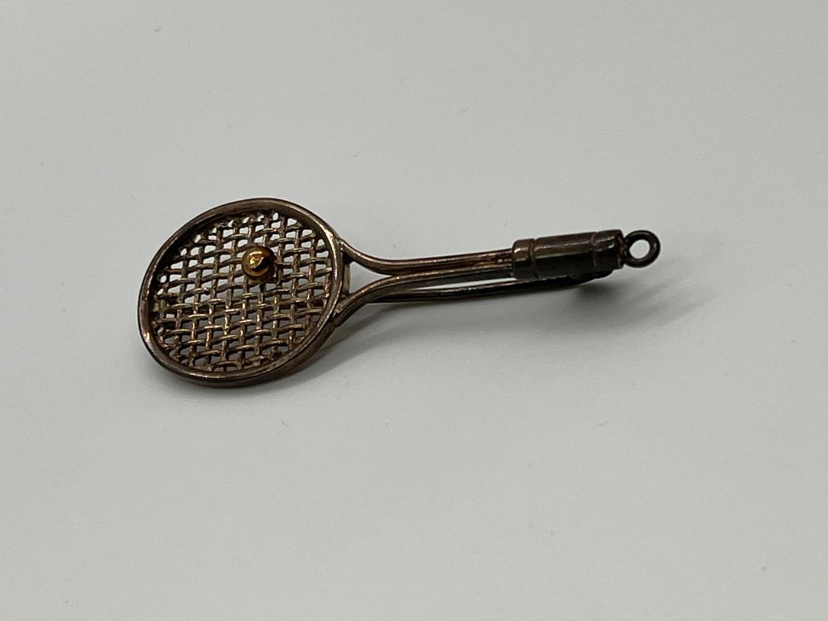 LOTJ166: Sterling Silver Vintage Tennis Racket Brooch with Gold Vermeil Ball Clean it to a silver shine or wear with Vintage Patina