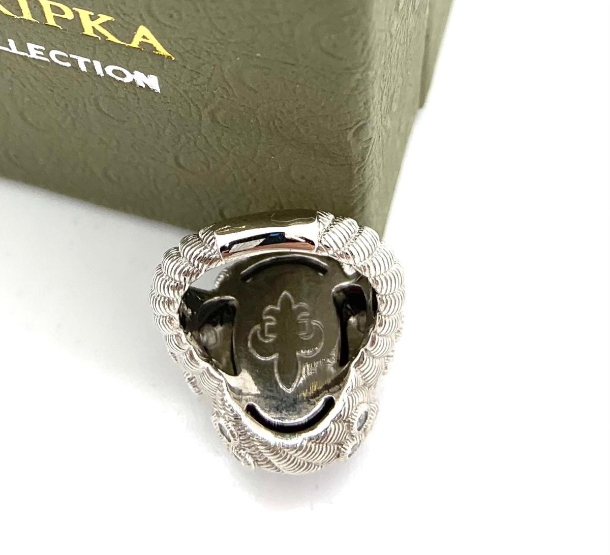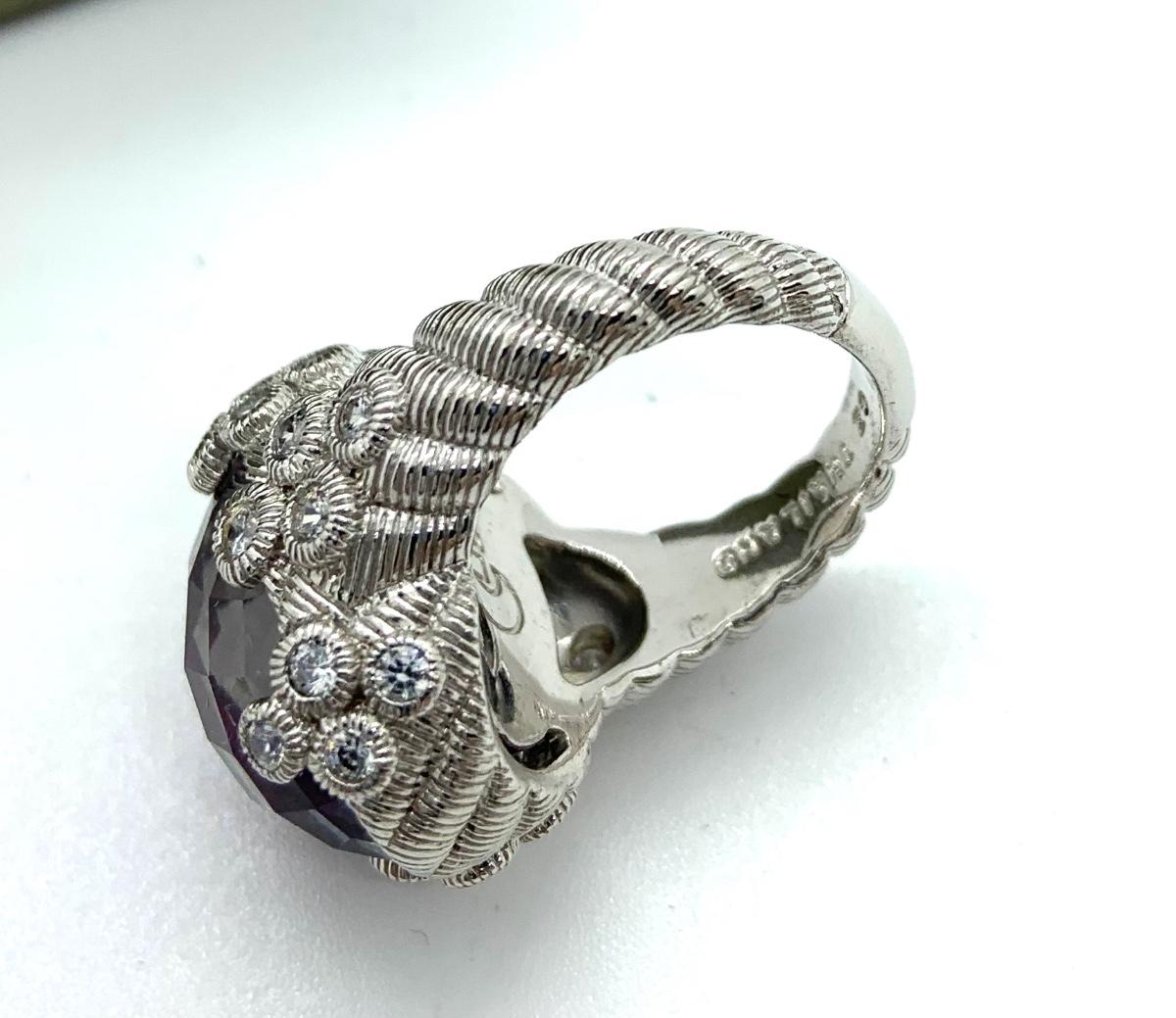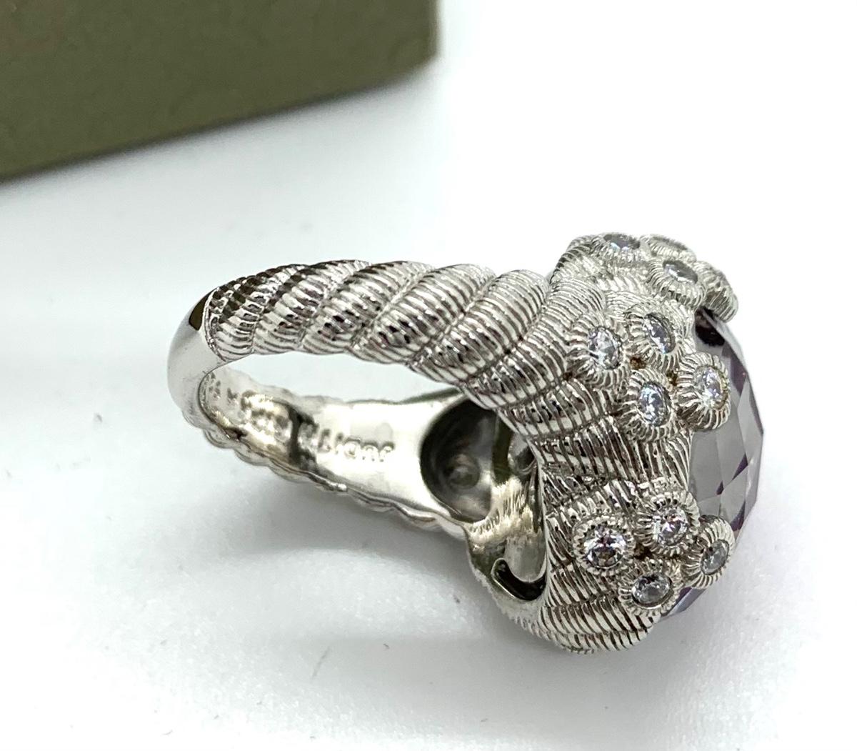 LOTJ170: New in box Judith Ripka Sterling Silver Diamonique and Rasberry Gem Doublet Ring sz. 6