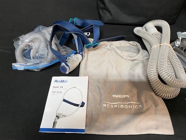 Model#1009586. Includes: tubing, masks, & carry bag. We (Crimson Estate Services) are not certified as CPAP resellers; nor are we authorities on the equipment. It is sold AS IS as all of our items are. Powers on at time of cataloging. Estimated weight of lot: 10lbs. Measurement: 15"H x 11"W x 8"D
