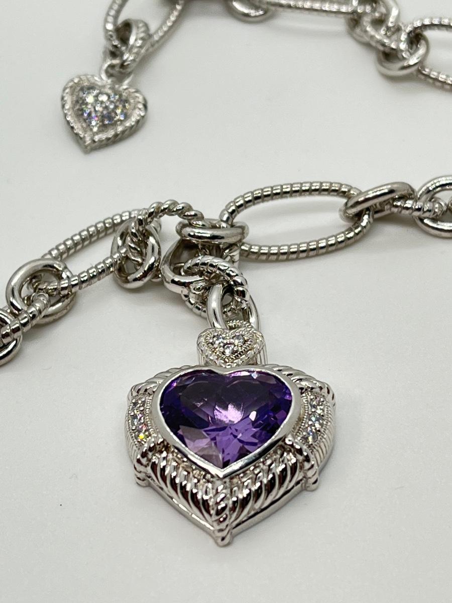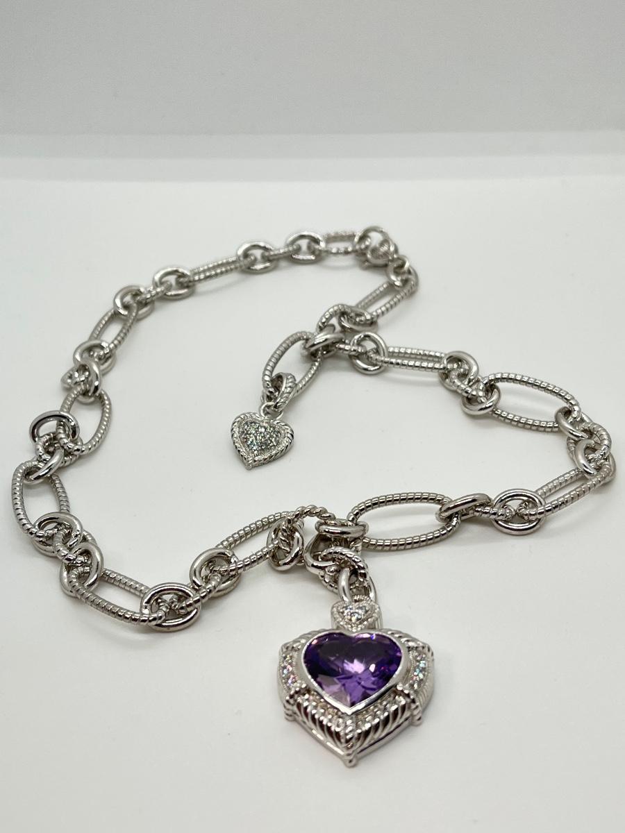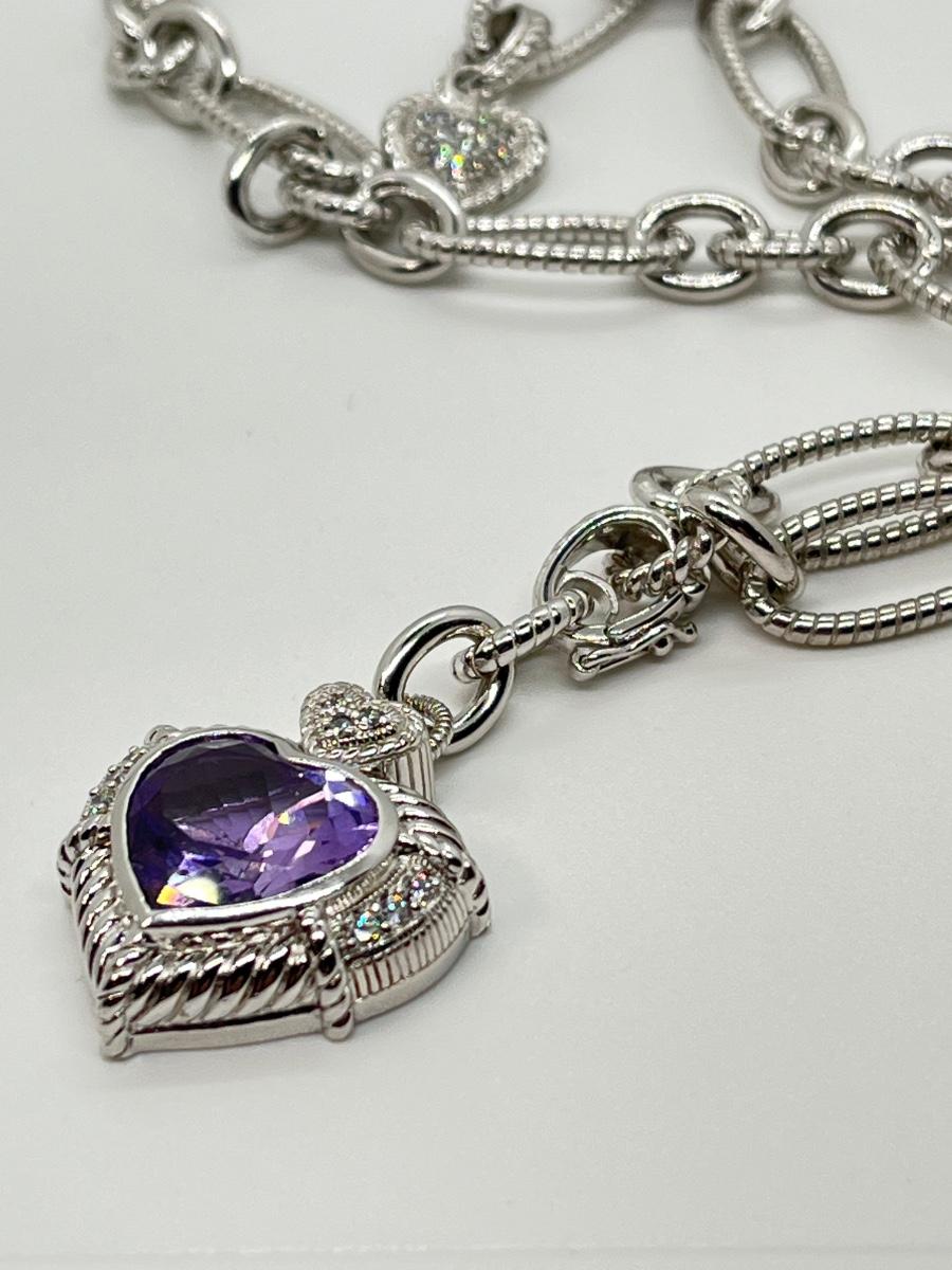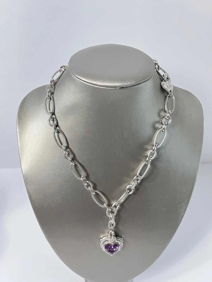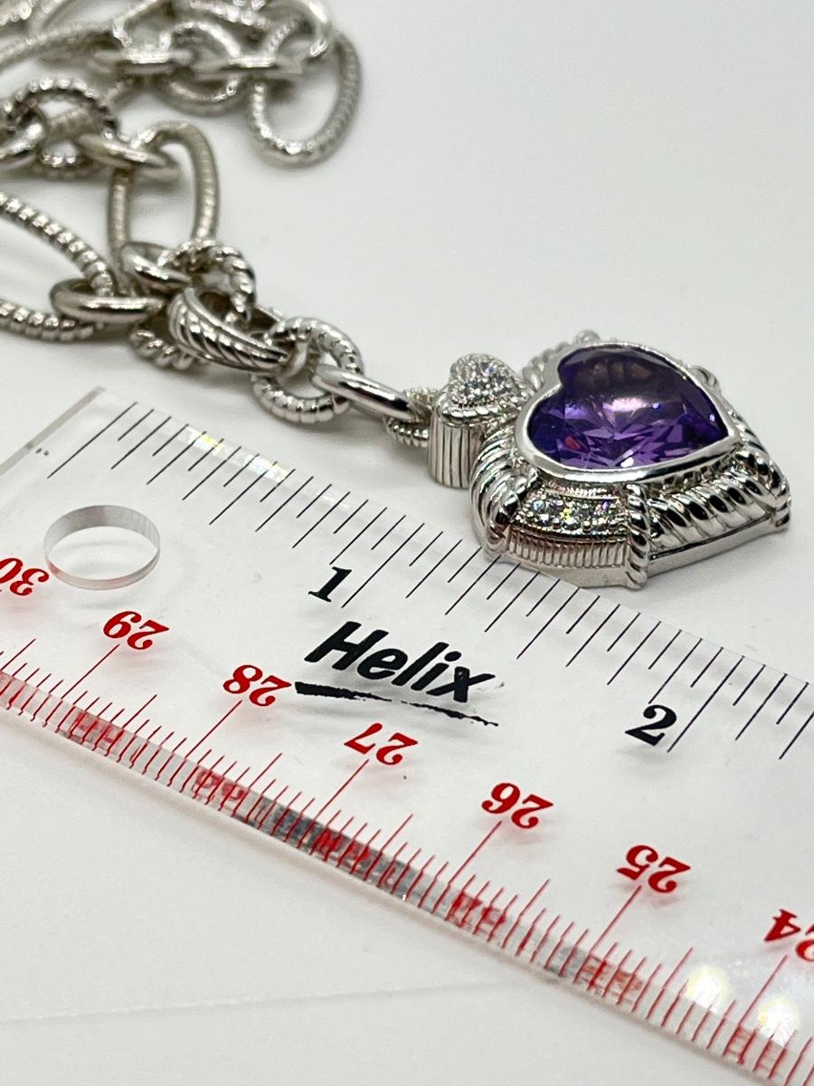 LOTJ180: New in box Judith Ripka  7.00ct Amethyst Sterling Heart Enhancer w/18" Sterling Chain