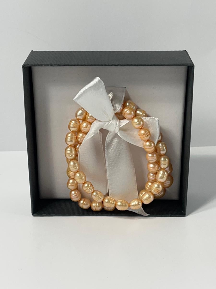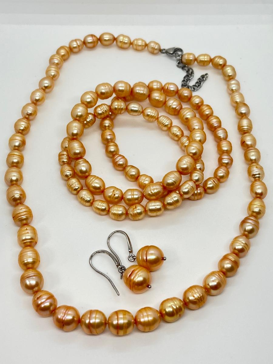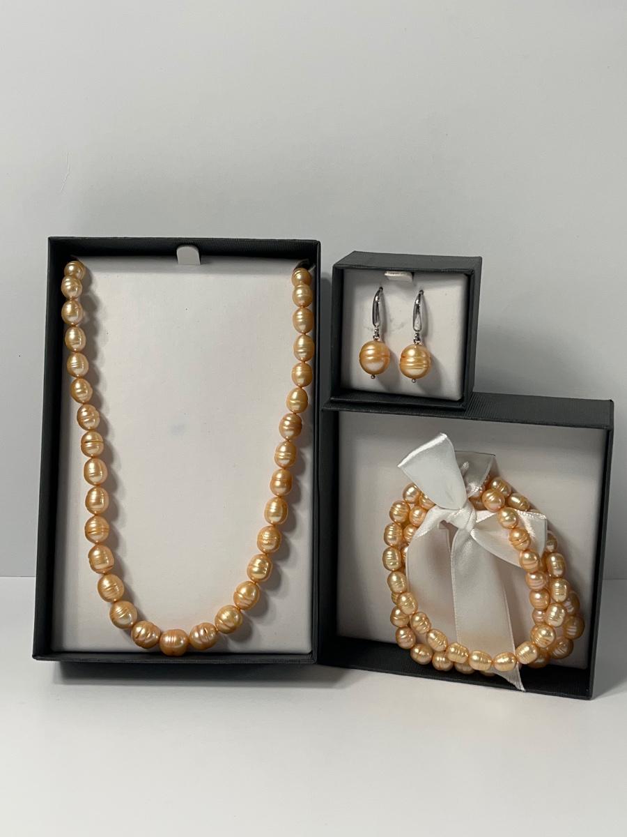 LOTJ181:,New in Box Honora Cultured Pearl Necklace (17" w/2" extender),  pierced earrings and 3 bracelet Set Color-Champagne Sz.-Average