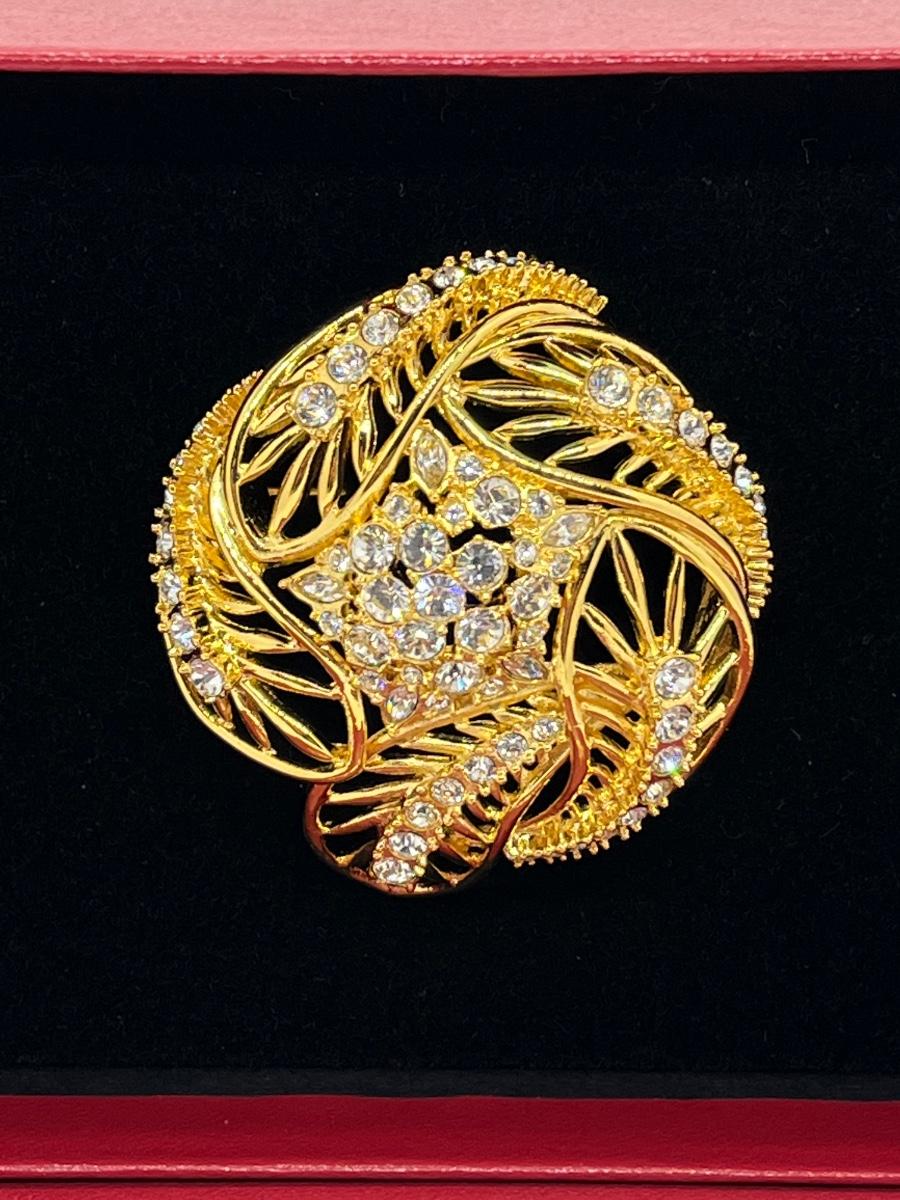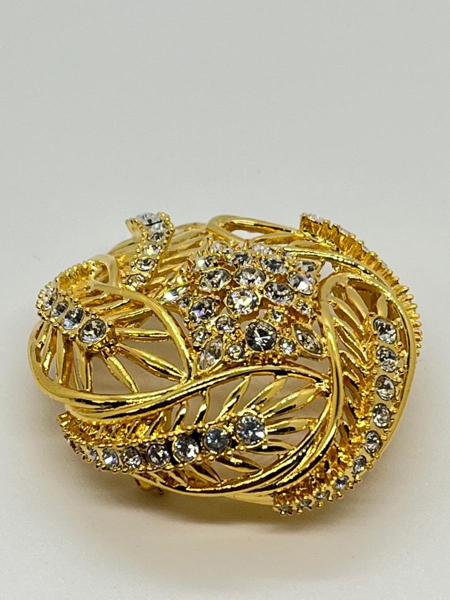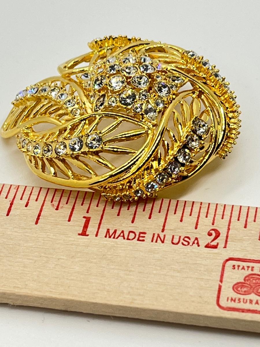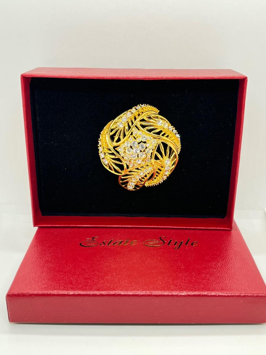 LOTJ182: New in box Estate Style Goldtone Swirl Brooch with Clear Crystals