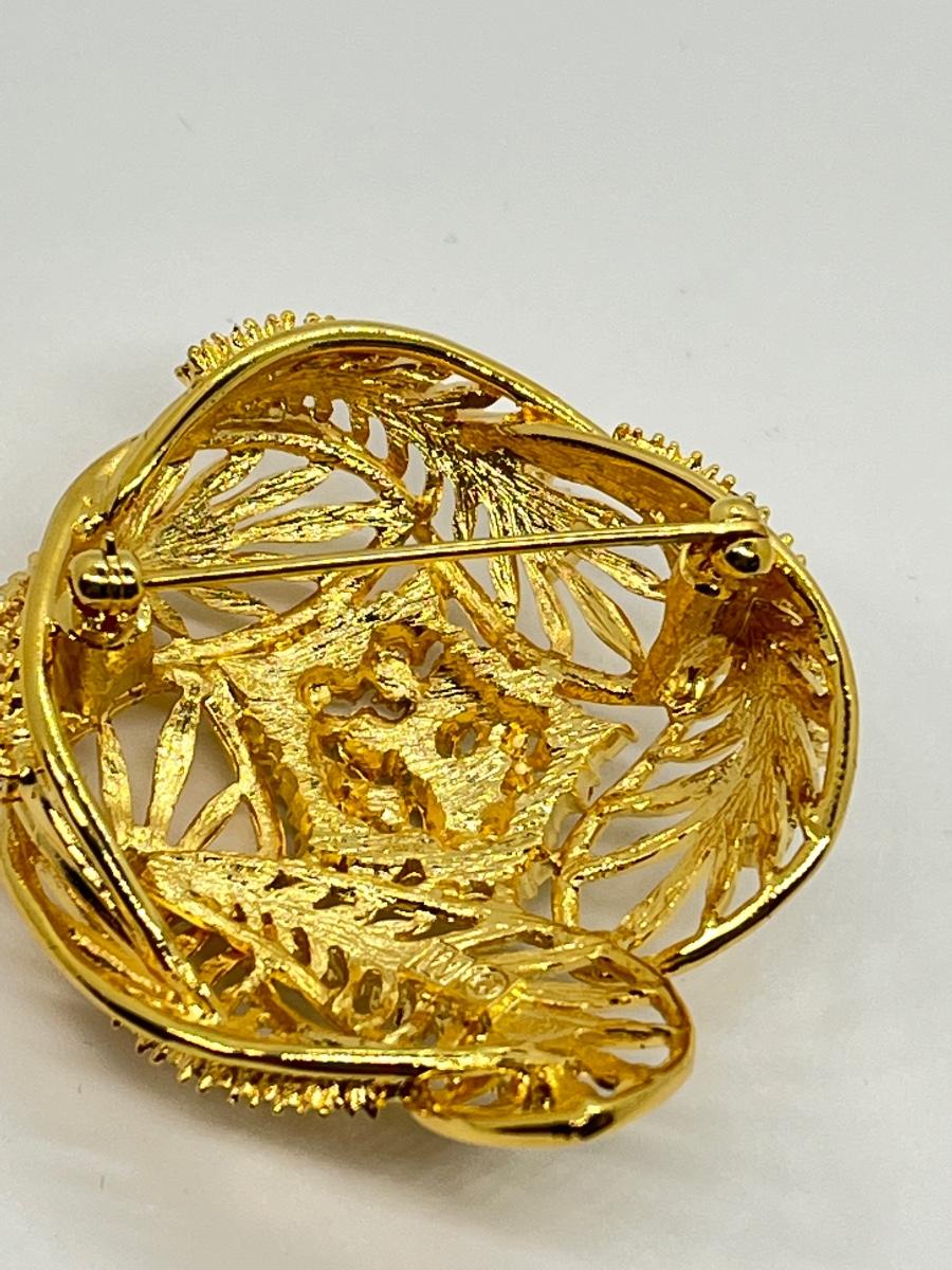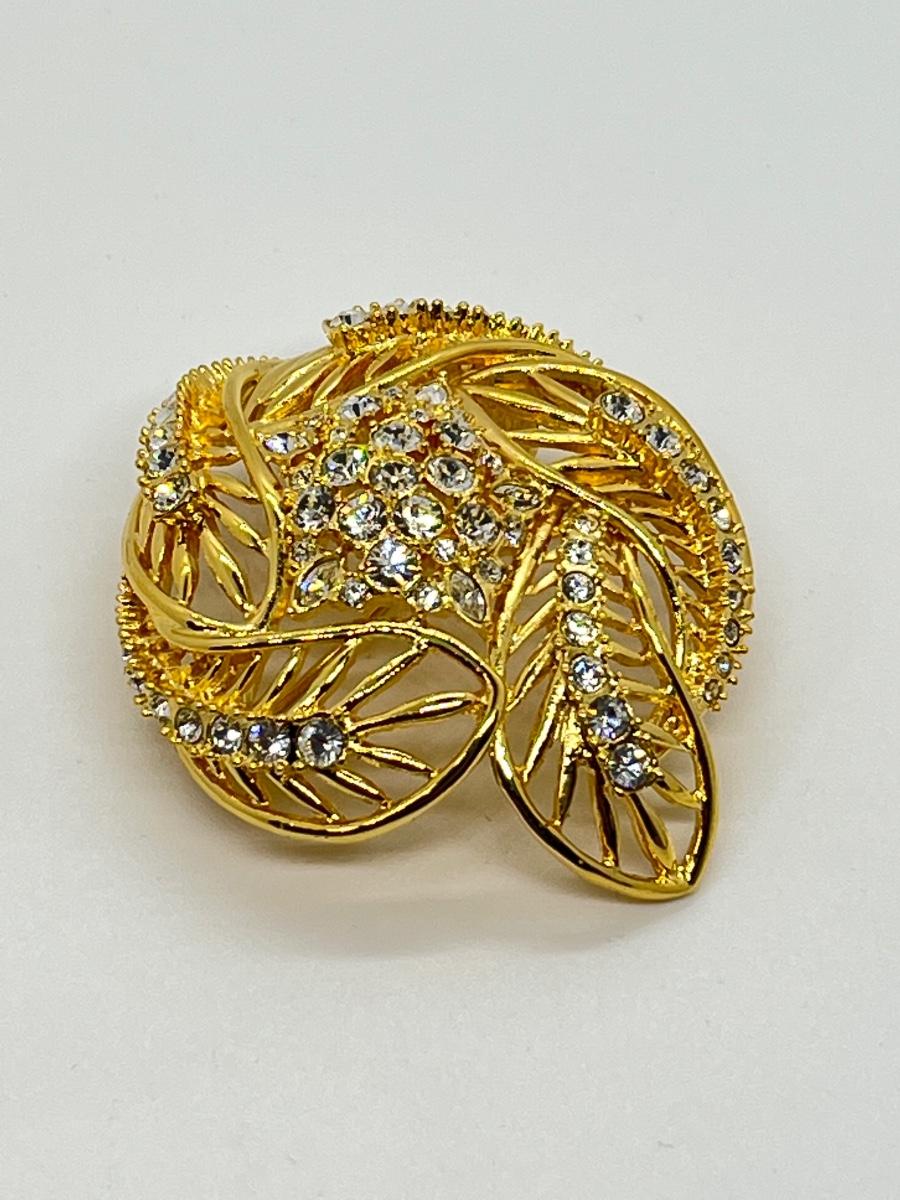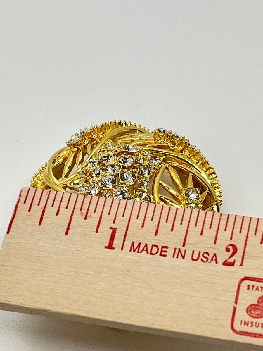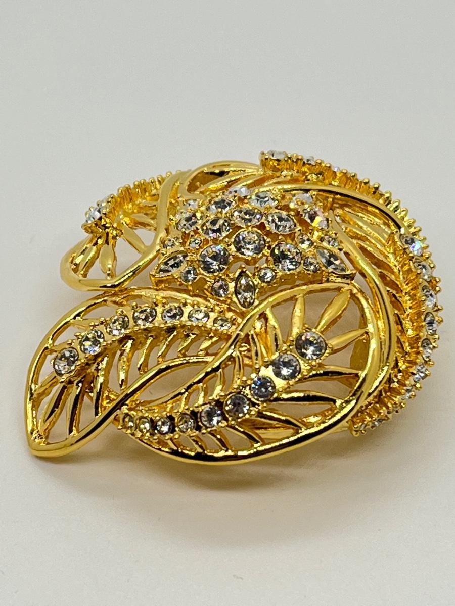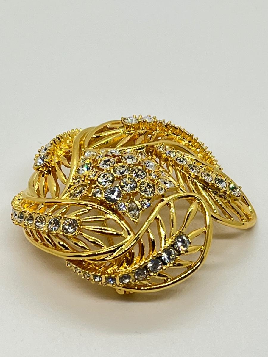 LOTJ182: New in box Estate Style Goldtone Swirl Brooch with Clear Crystals