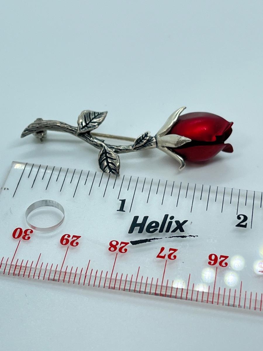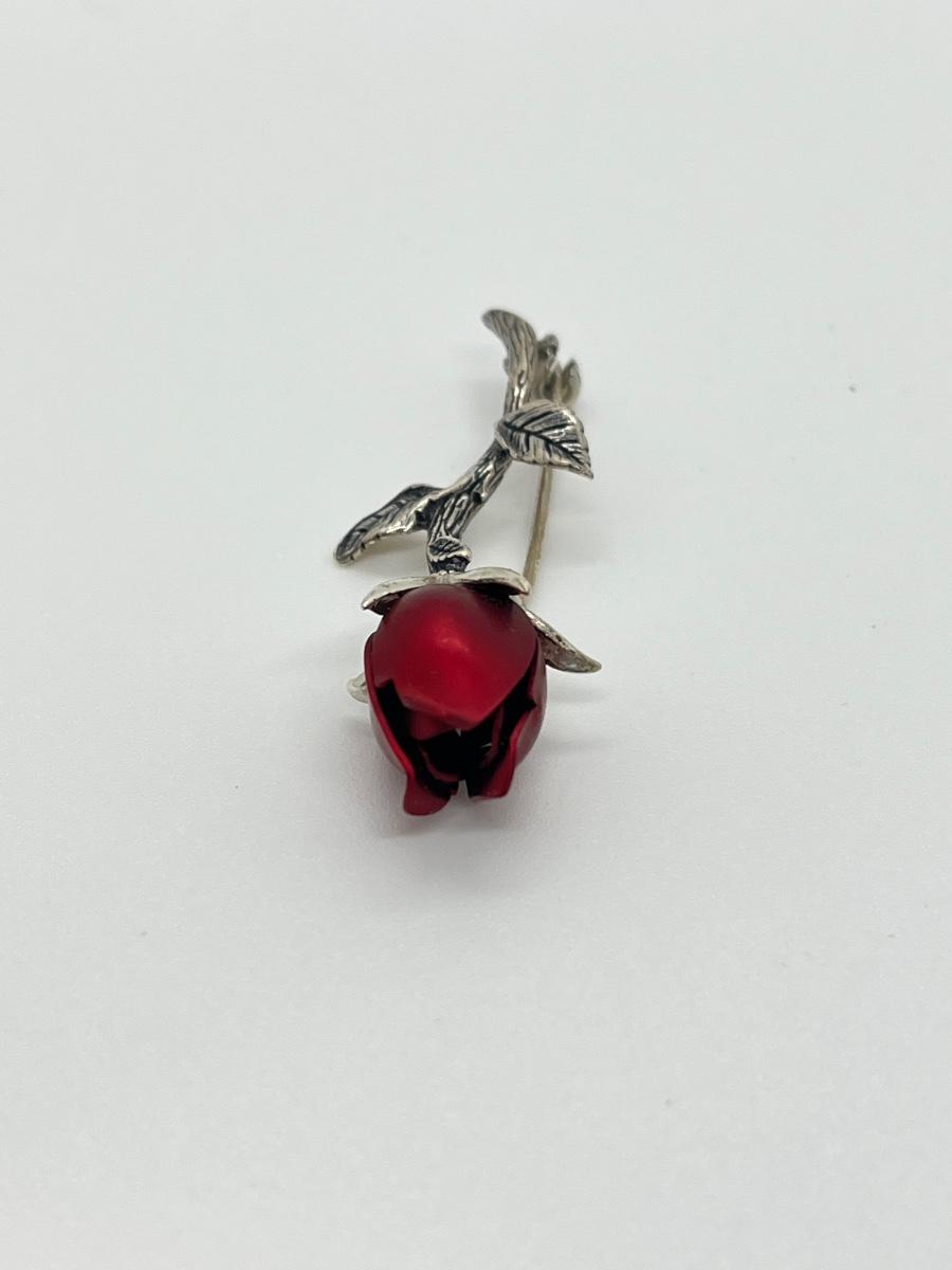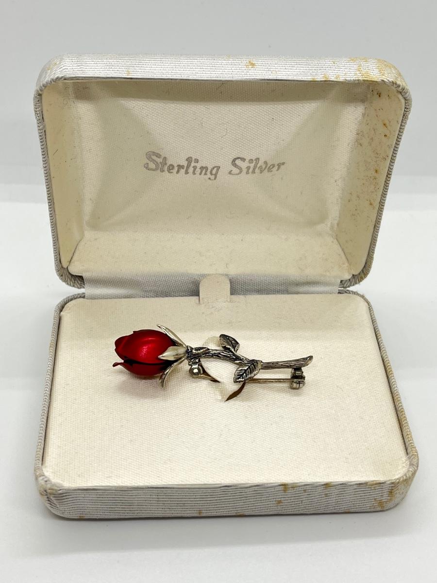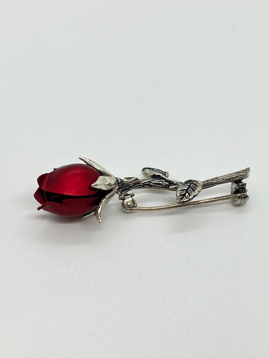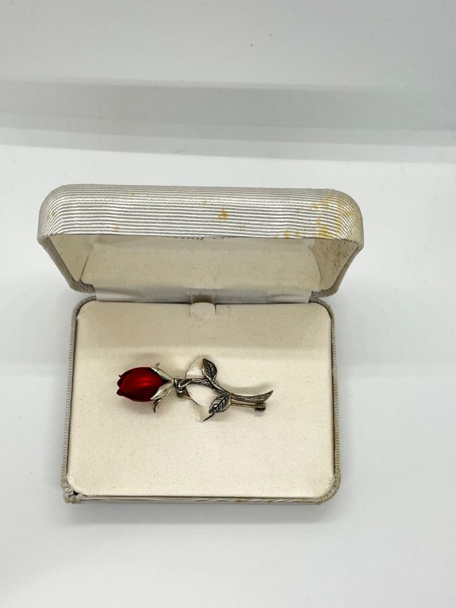 LOTJ188: Sterling Silver Red Rose Brooch like new but box in poor condition