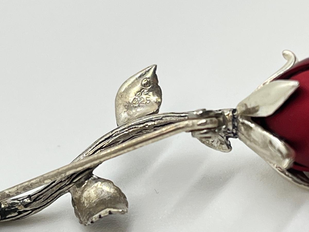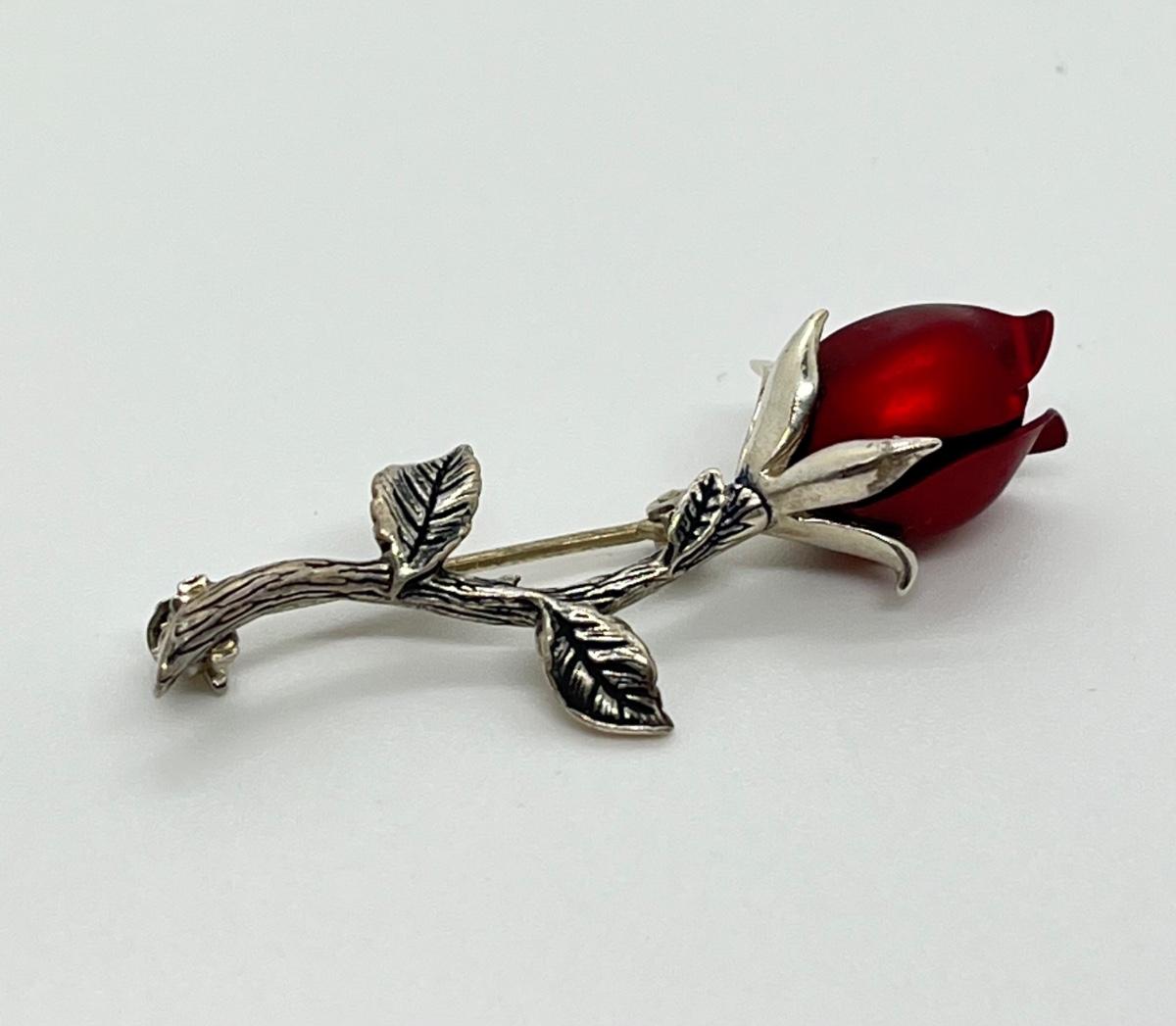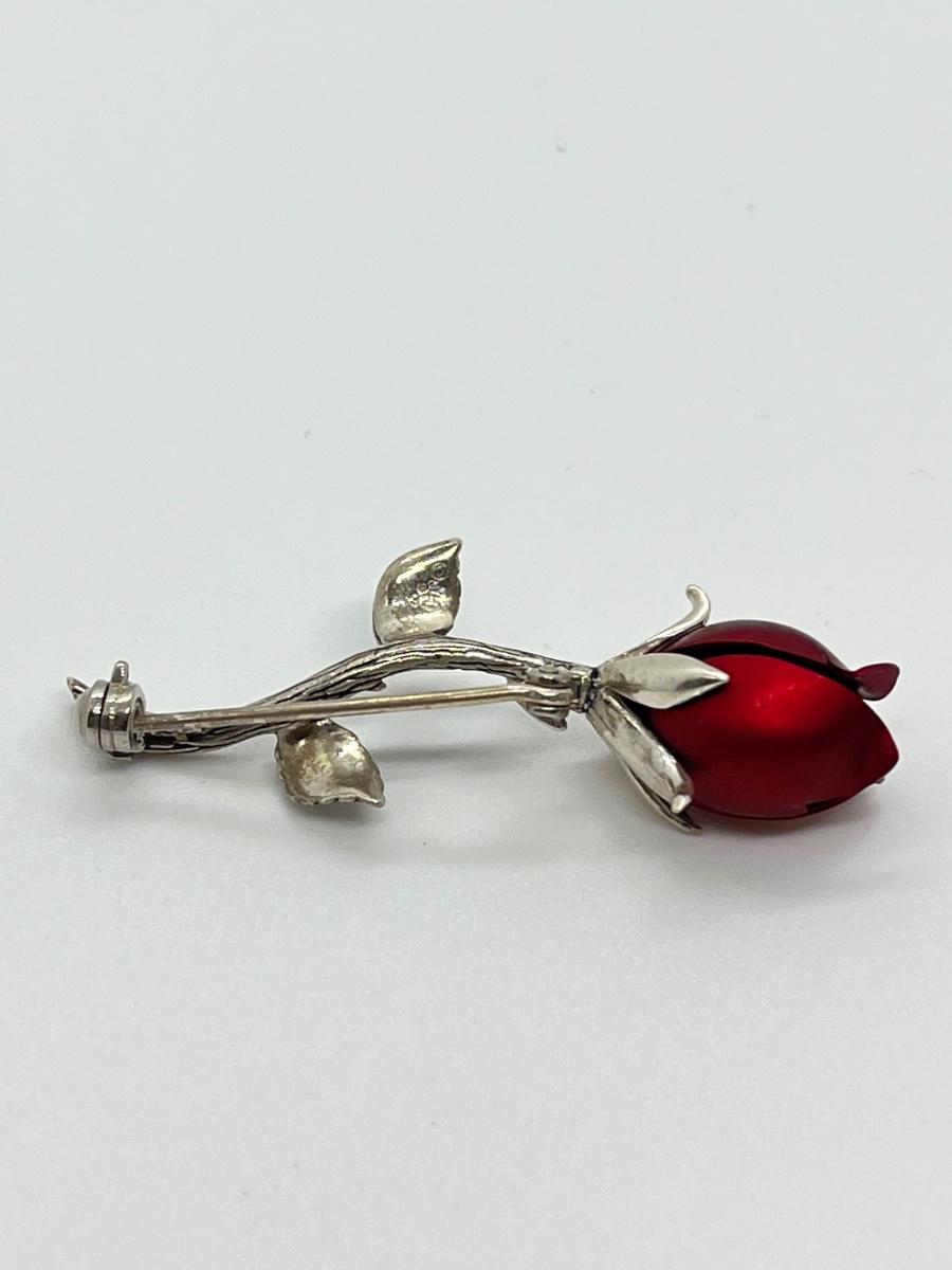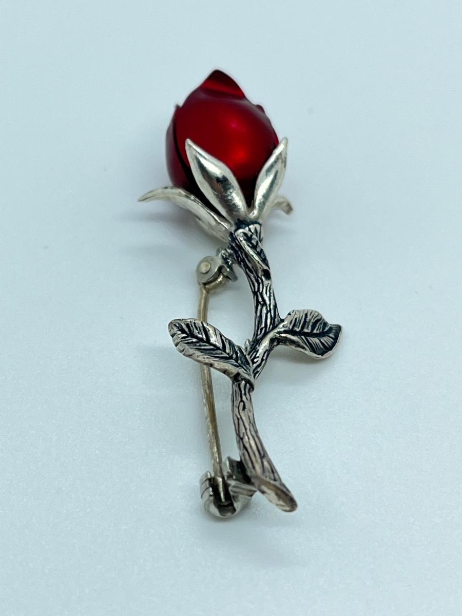 LOTJ188: Sterling Silver Red Rose Brooch like new but box in poor condition