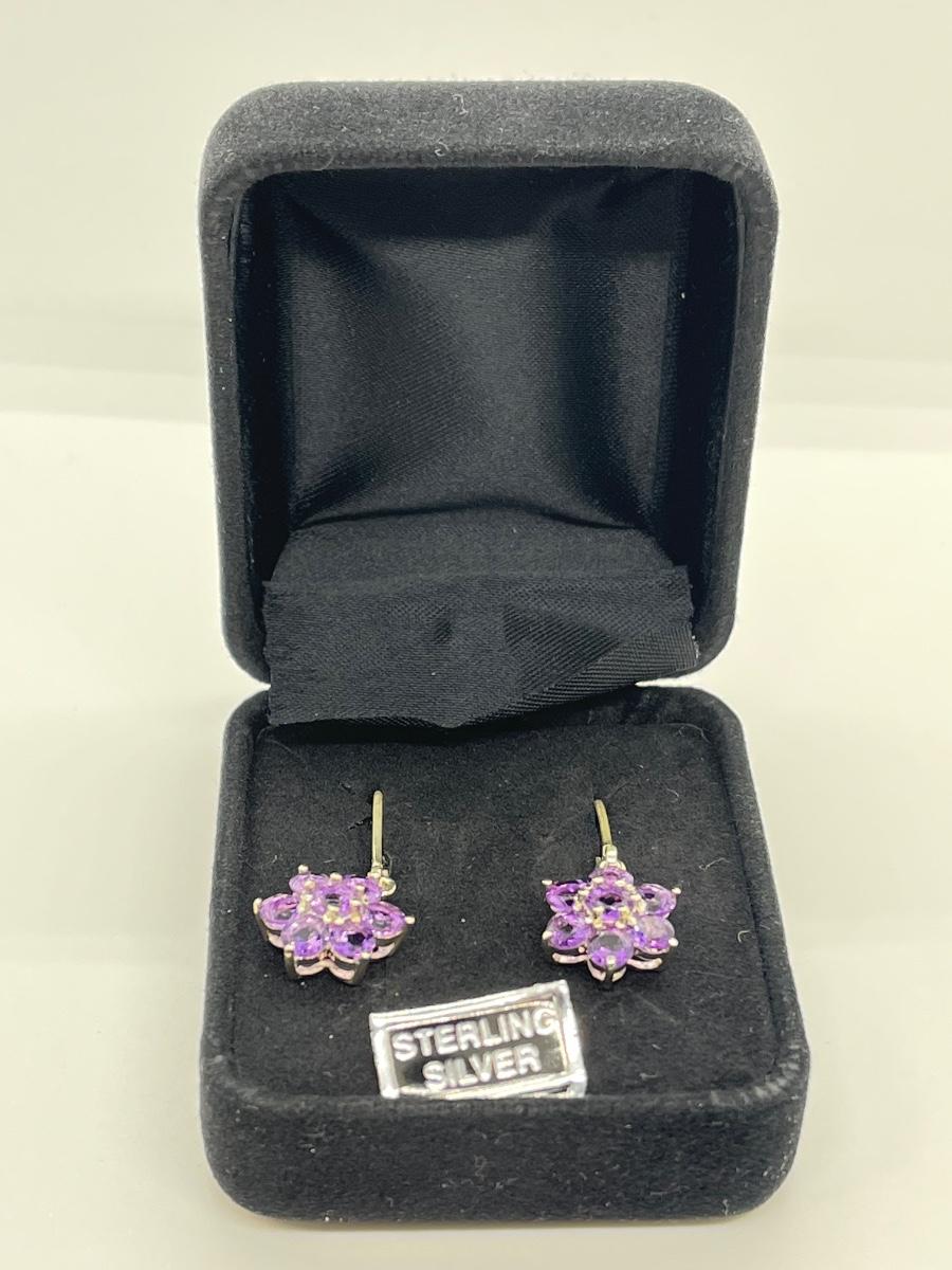 LOTJ193: Sterling silver and Amethyst Pierced Earrings