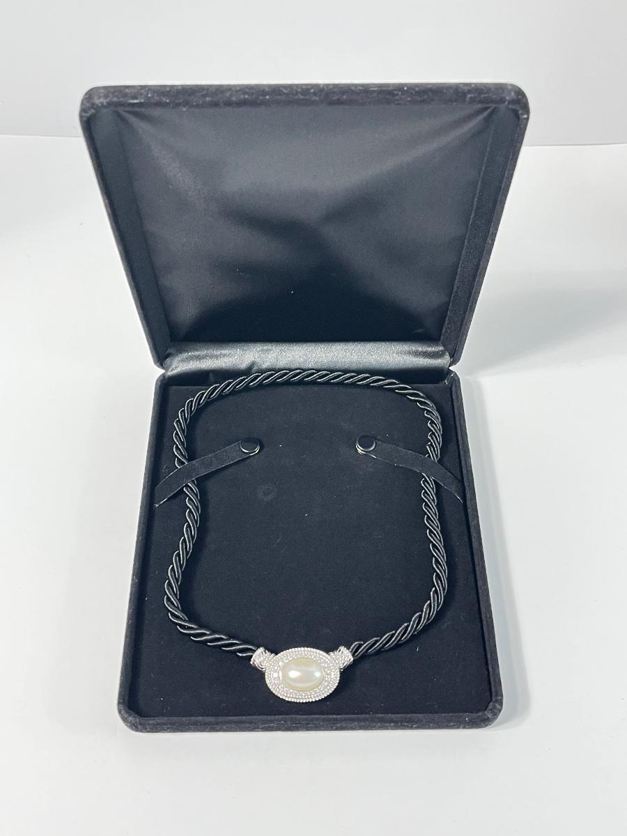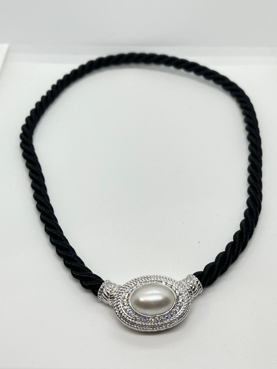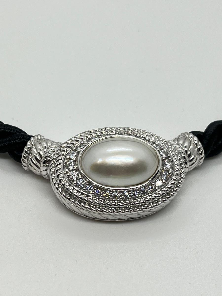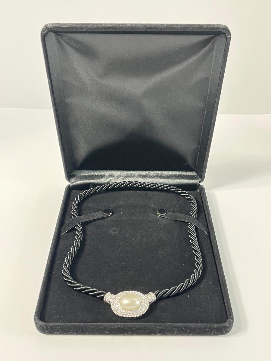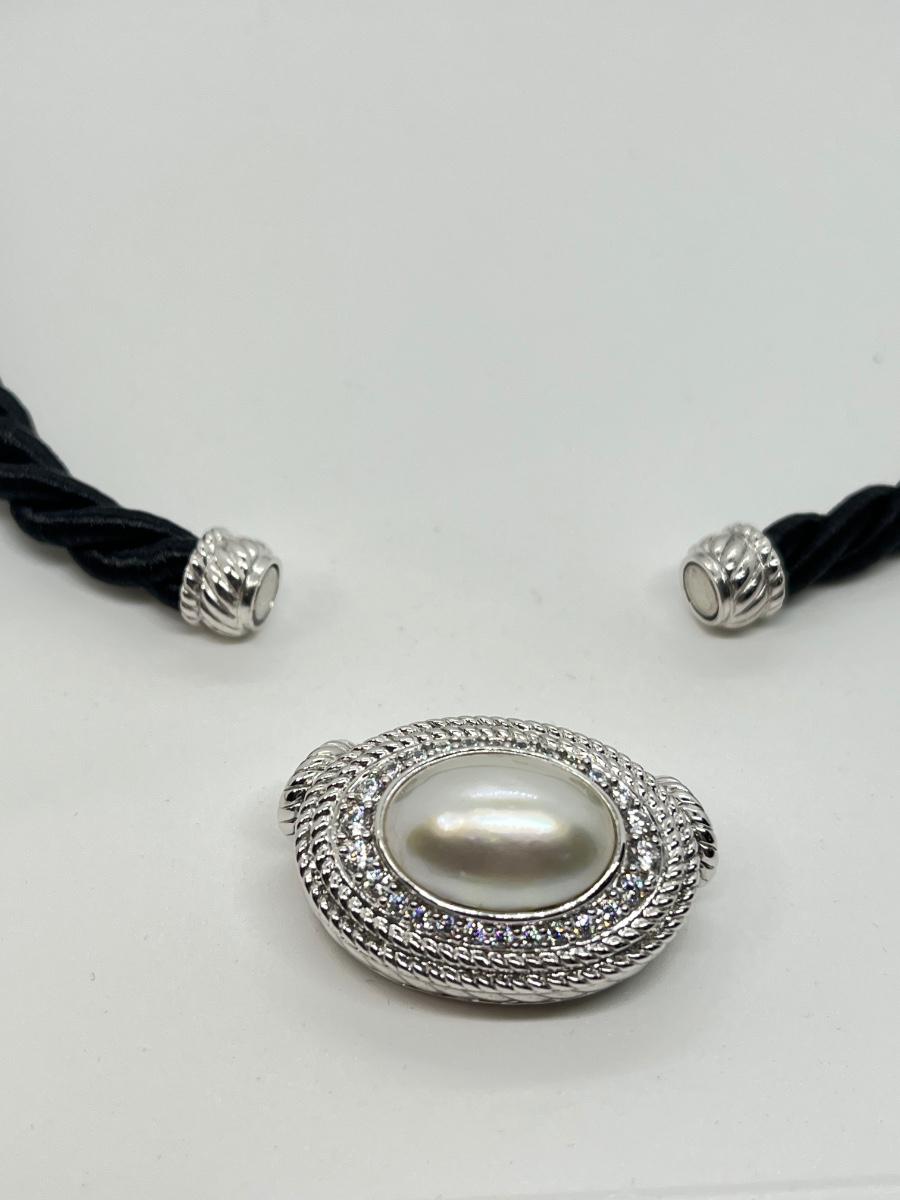 LOTJ200: New in Box Judith Ripka Sterling Simulated Pearl and CZ's Pendant Magnetic Clasps on 18" Cord