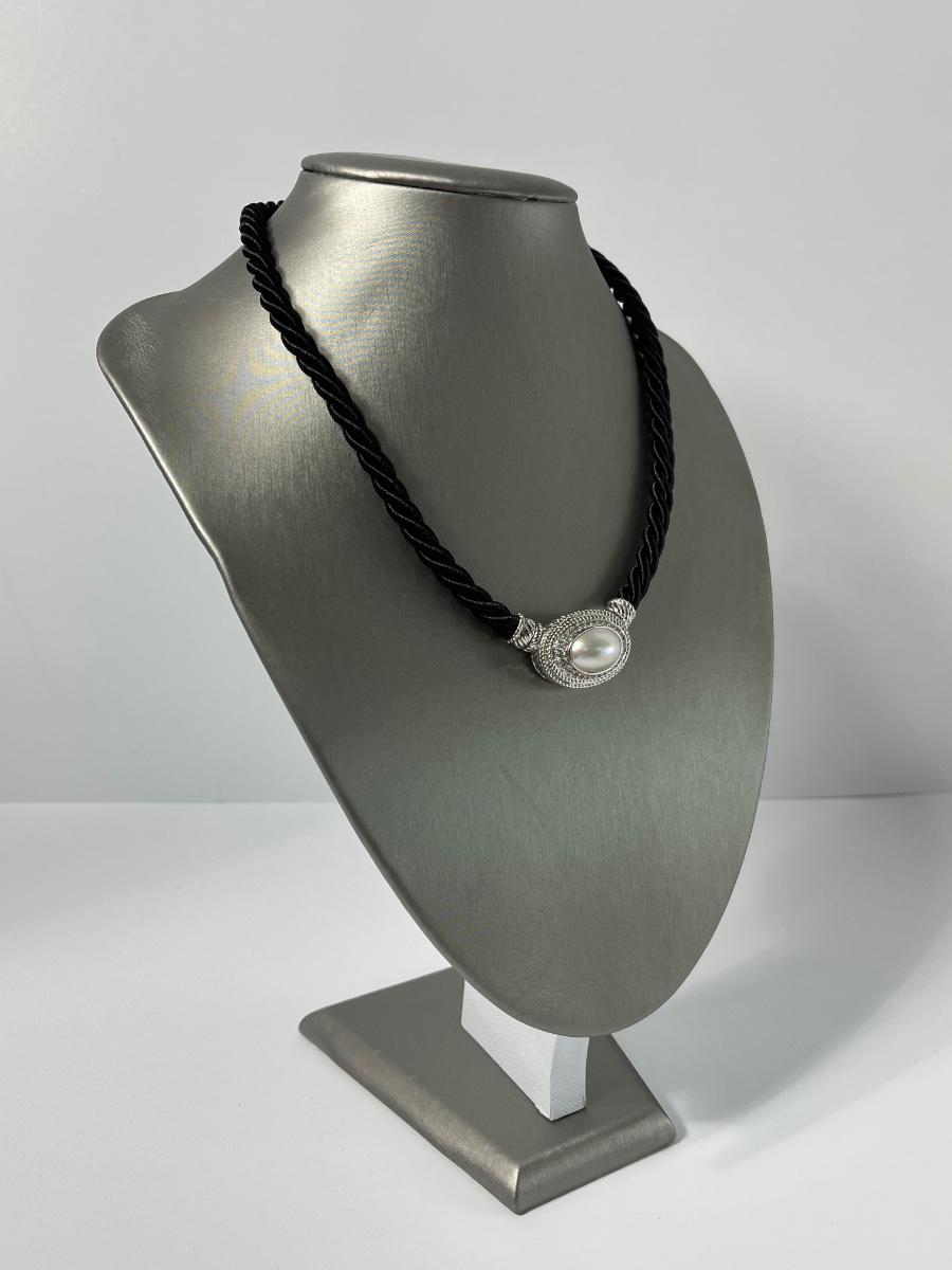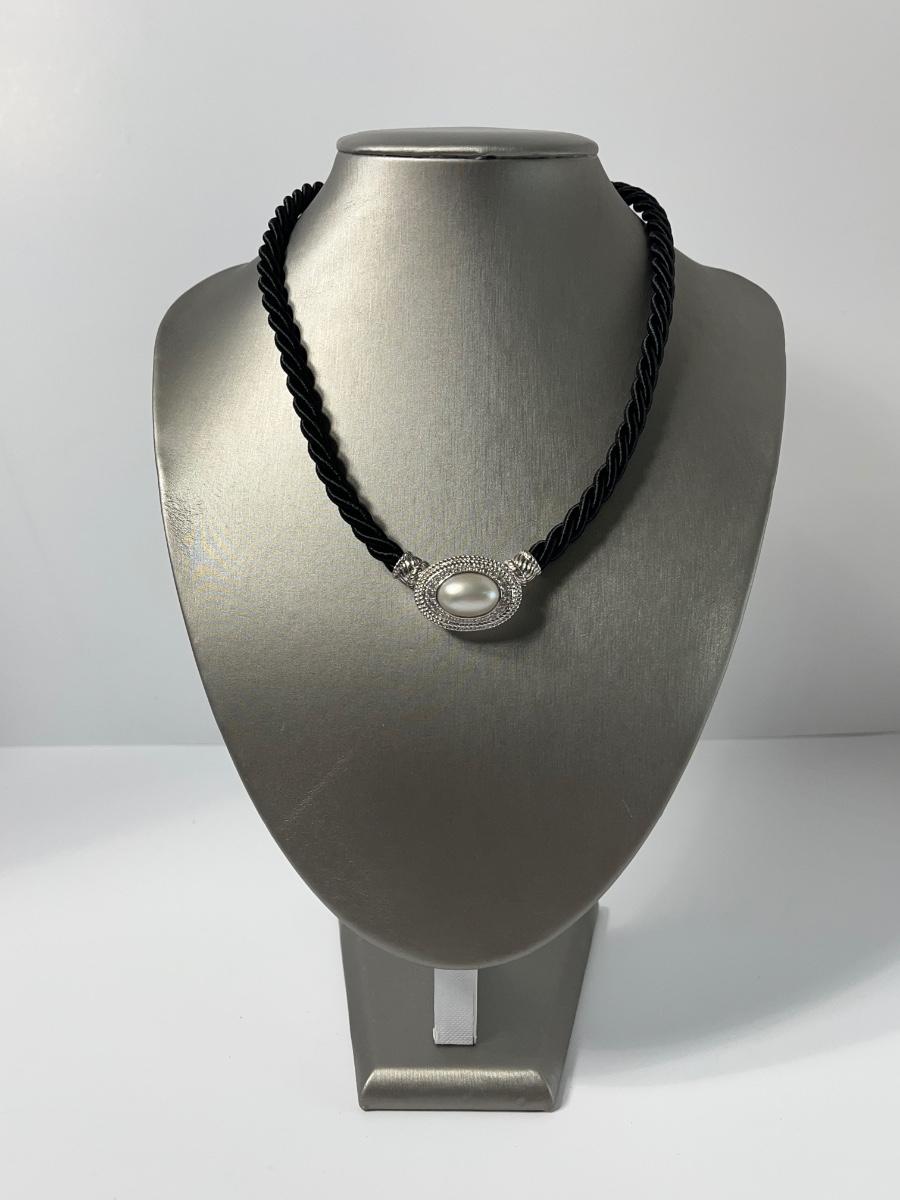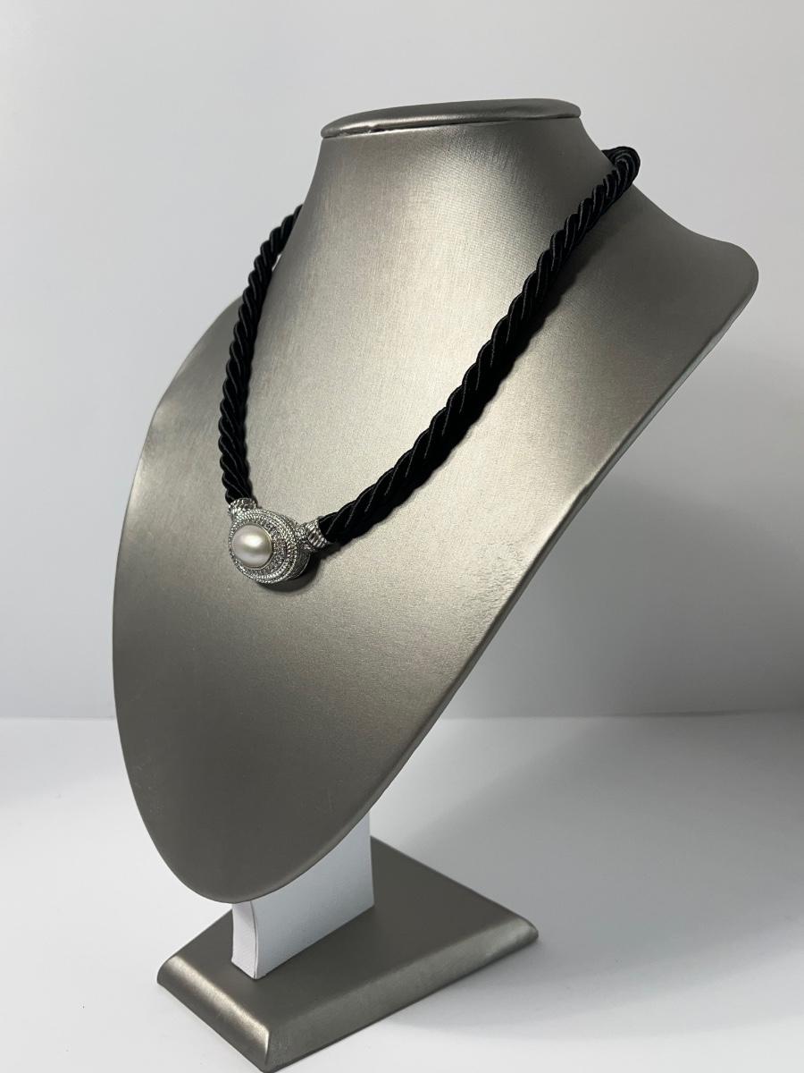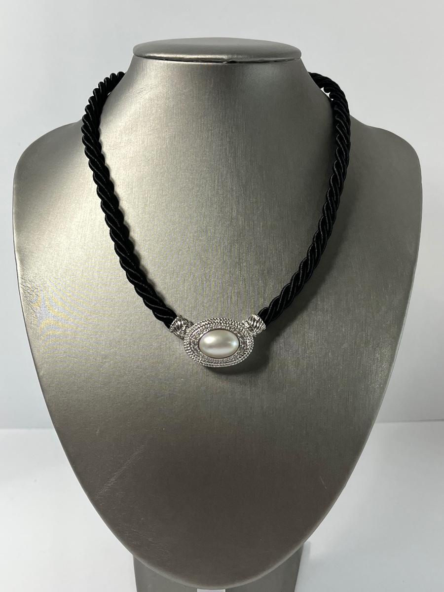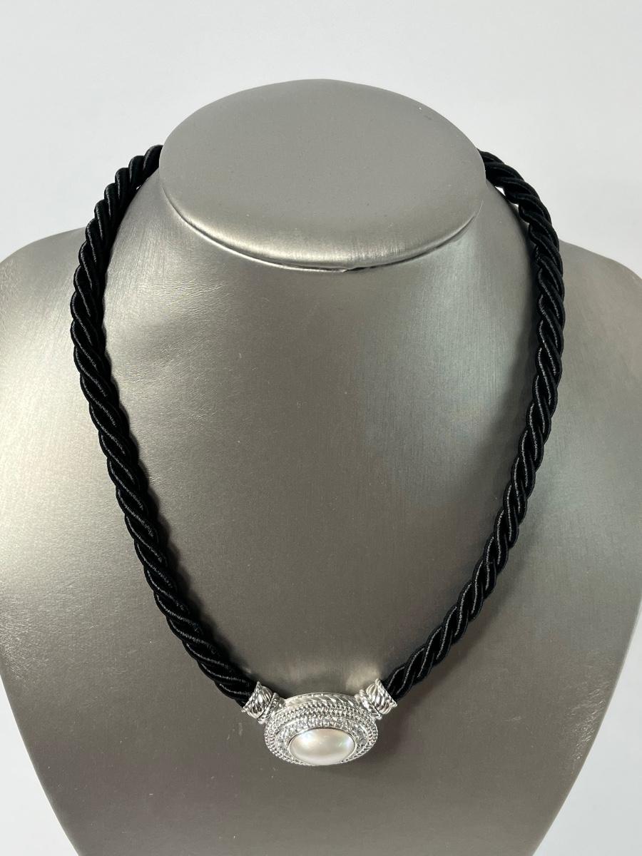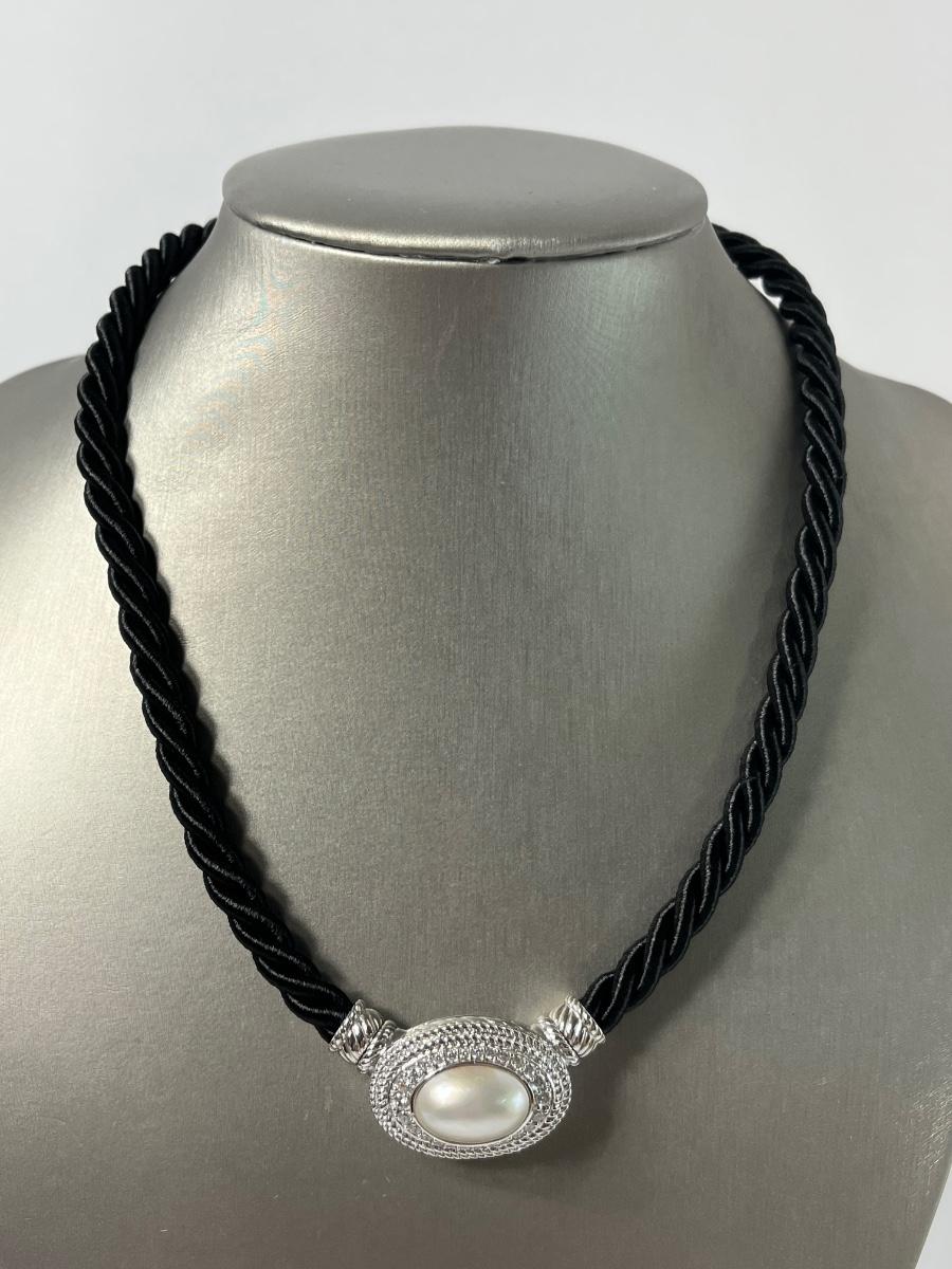 LOTJ200: New in Box Judith Ripka Sterling Simulated Pearl and CZ's Pendant Magnetic Clasps on 18" Cord