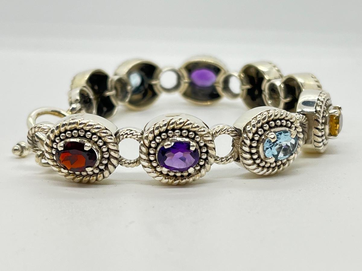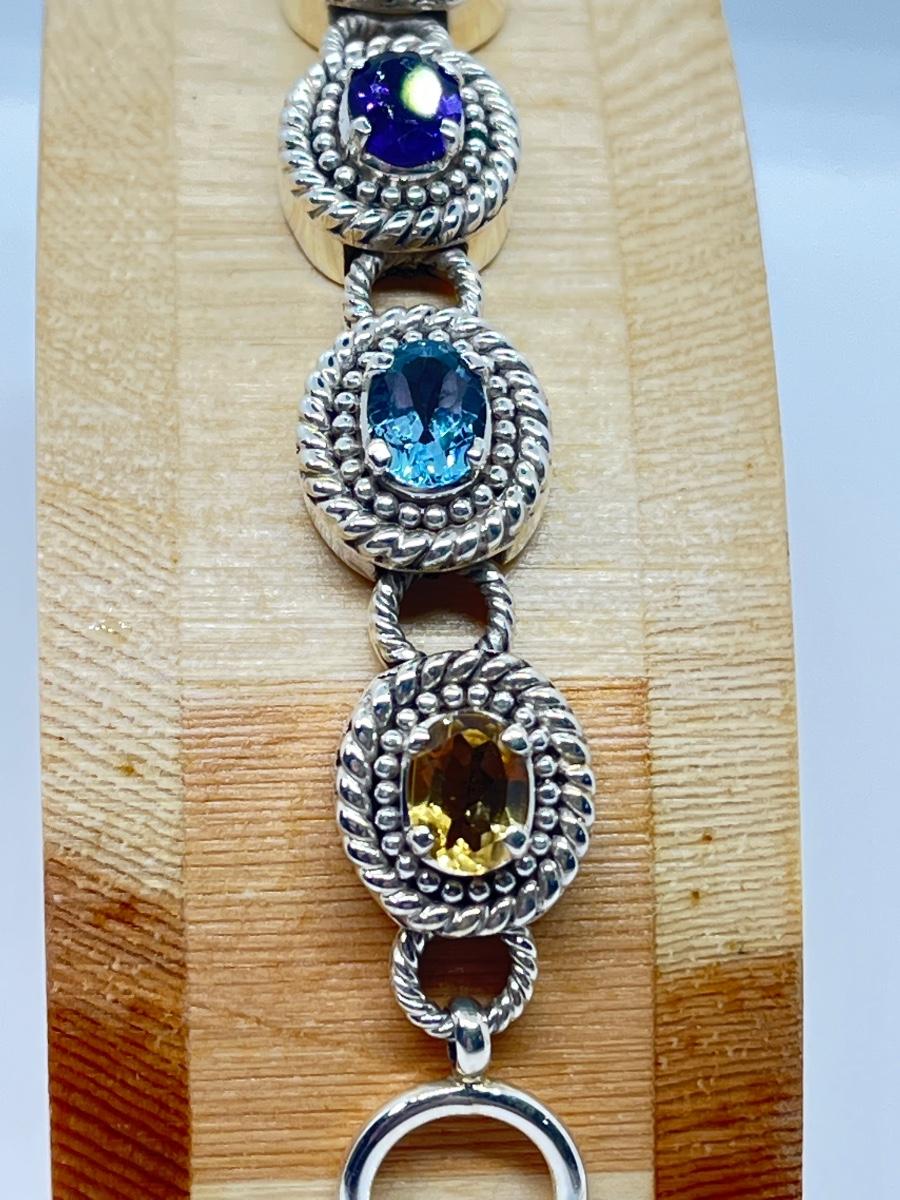 LOTJ203: New in box Artisan Crafted Sterling Silver Multiple Gemstone Bracelet