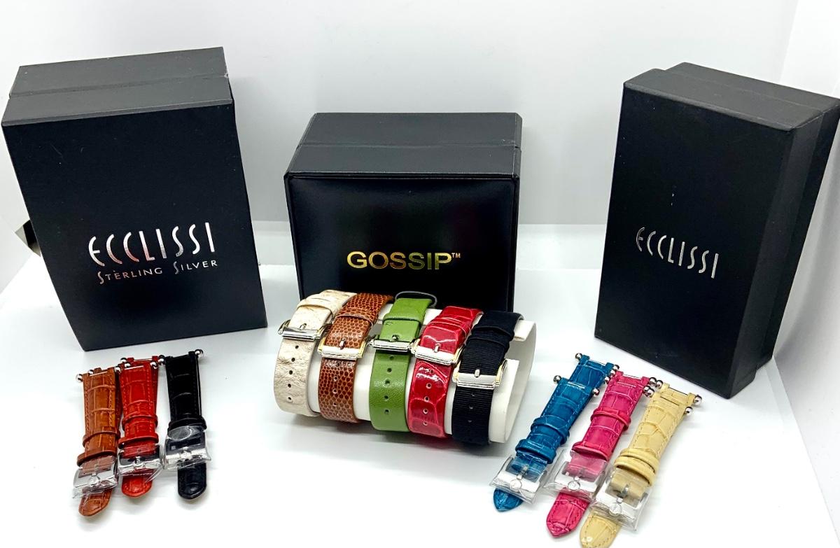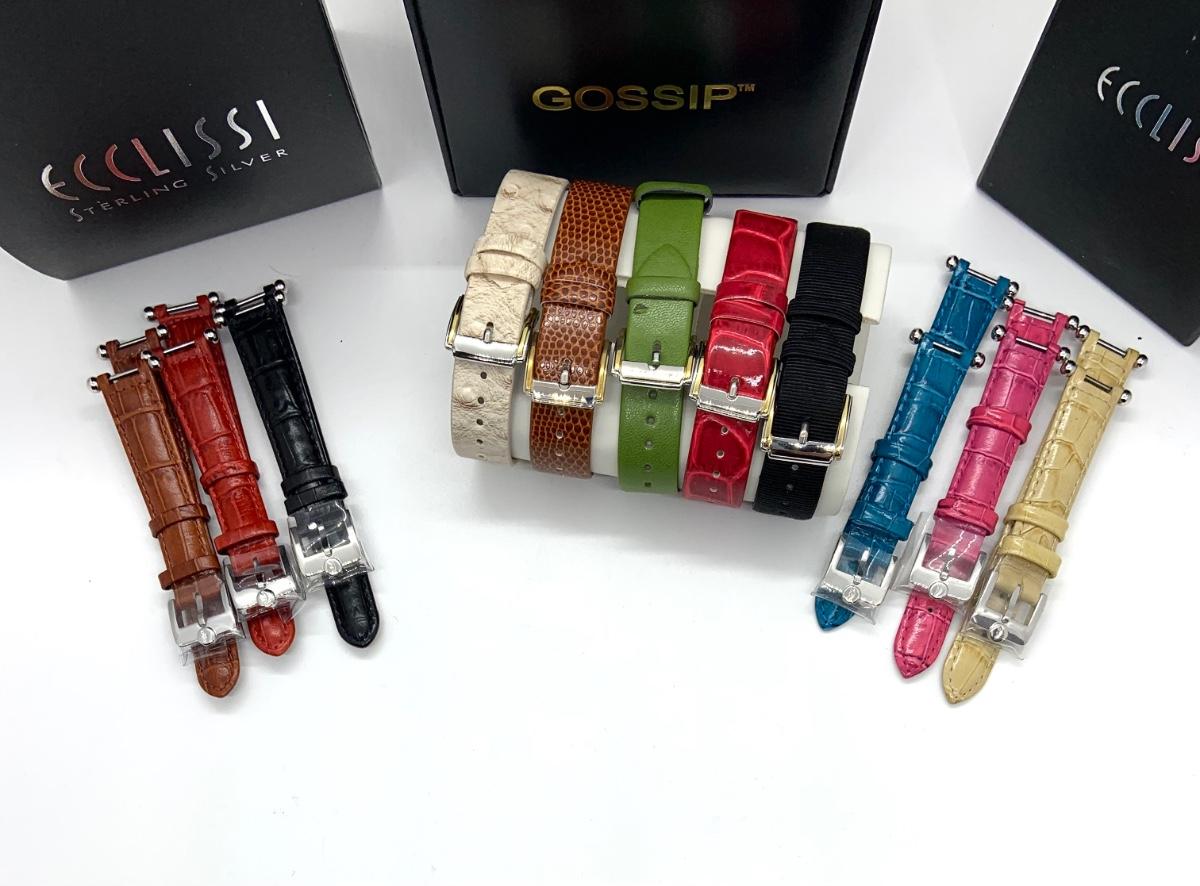 5 GossipS can be worn without the watch or it goes with the type of watch that slides on and off. The Ecclissi bands are they type with pins to attach directly onto watch.