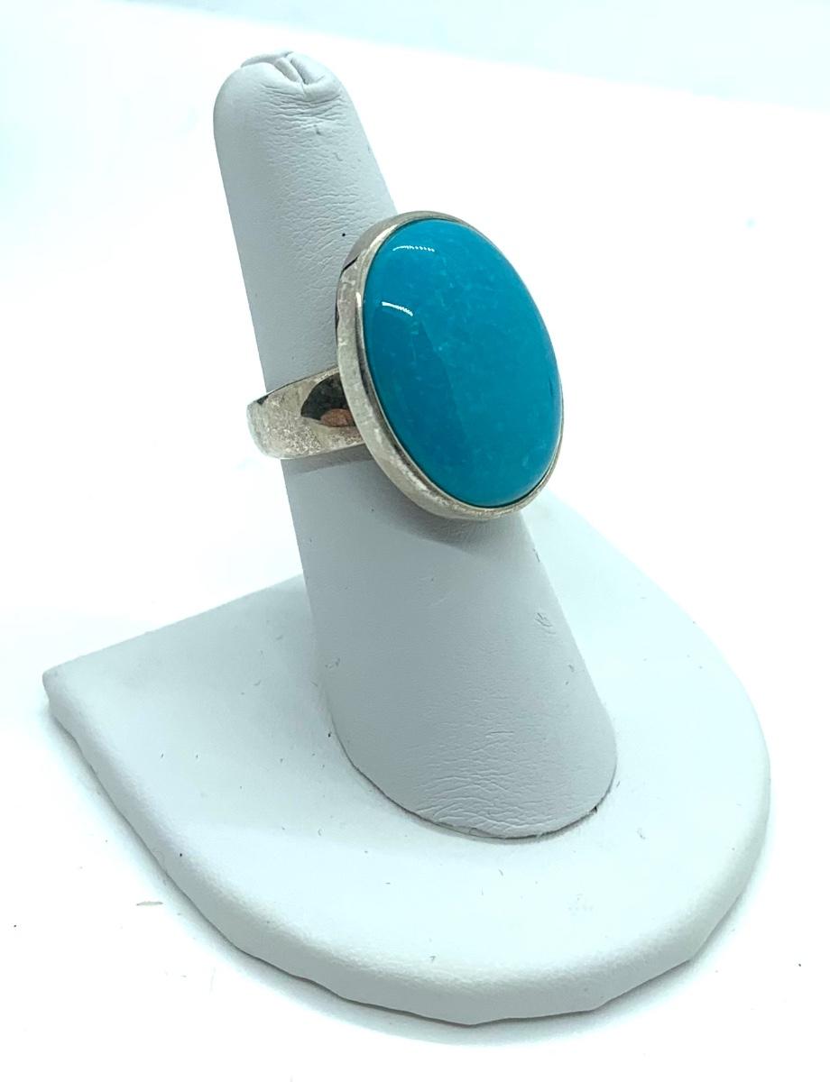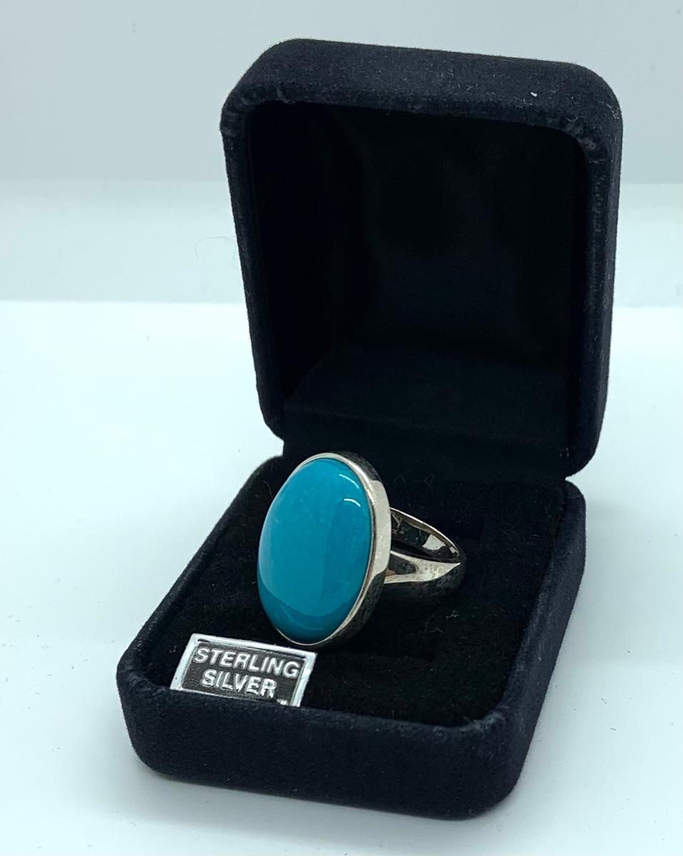 LOTJ205: New in Box Sterling Silver Cabachon Turquoise Ring sz. 6