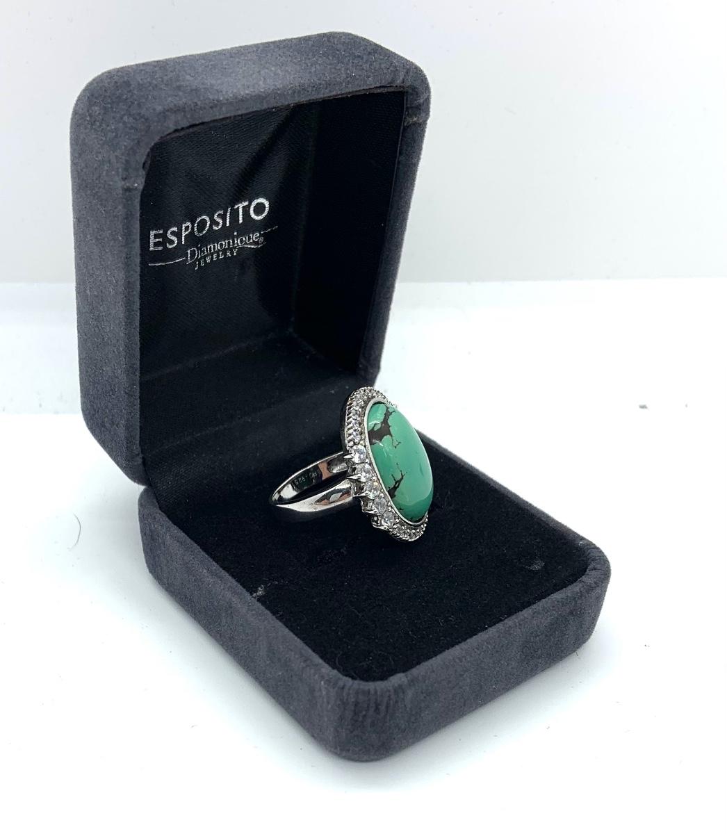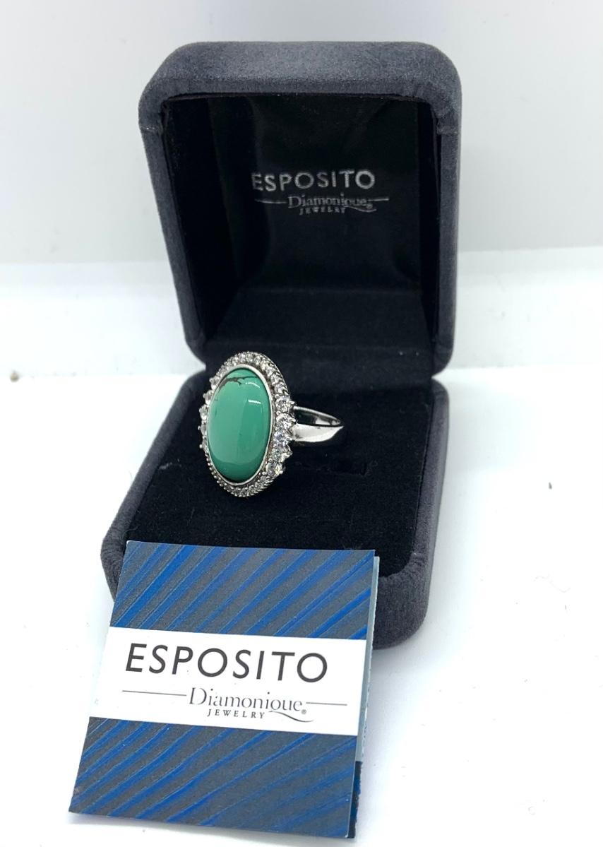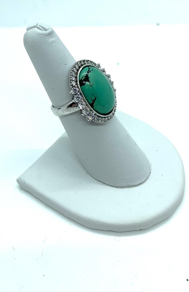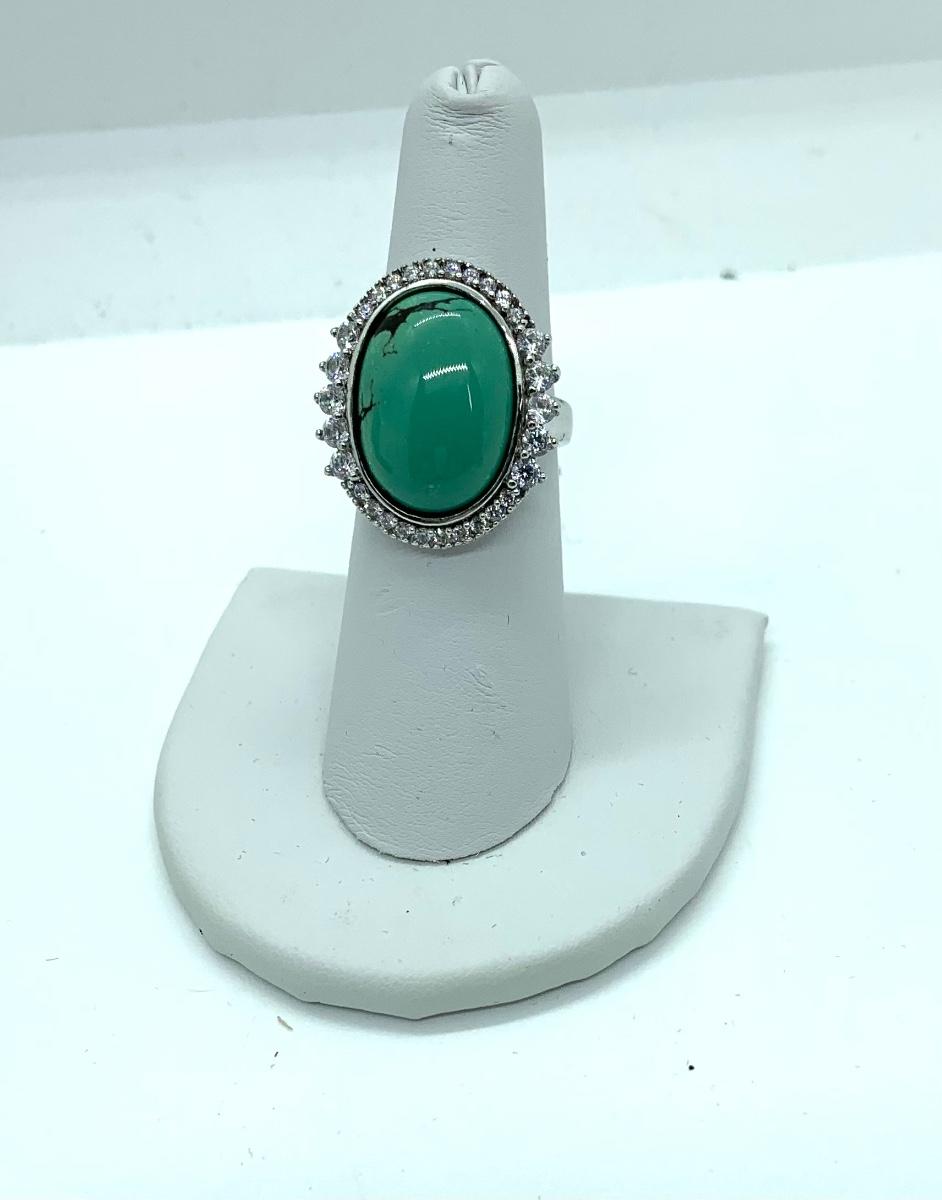 LOTJ206: Esposito Diamonique CZ Halo around Green Turquoise Cabachon Ring size 6