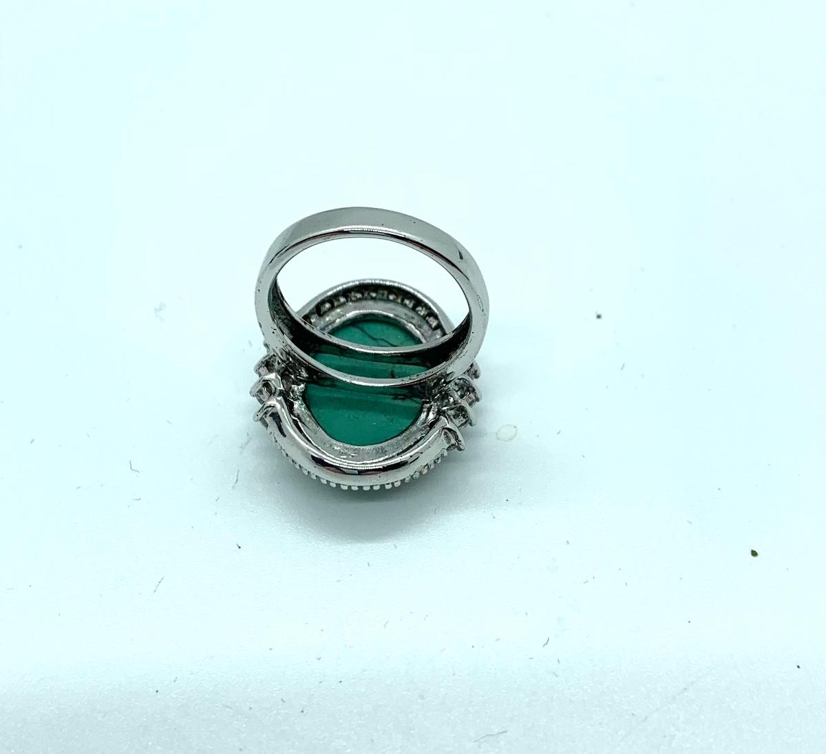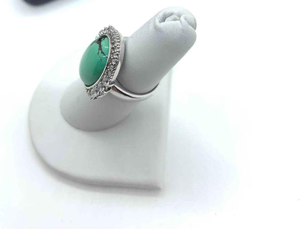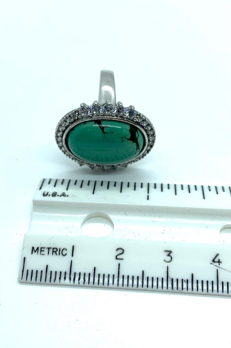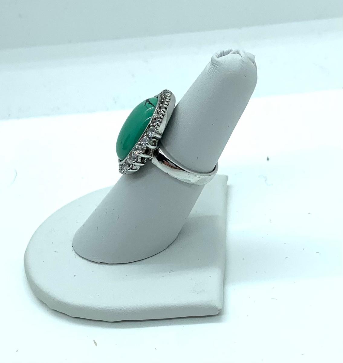 LOTJ206: Esposito Diamonique CZ Halo around Green Turquoise Cabachon Ring size 6