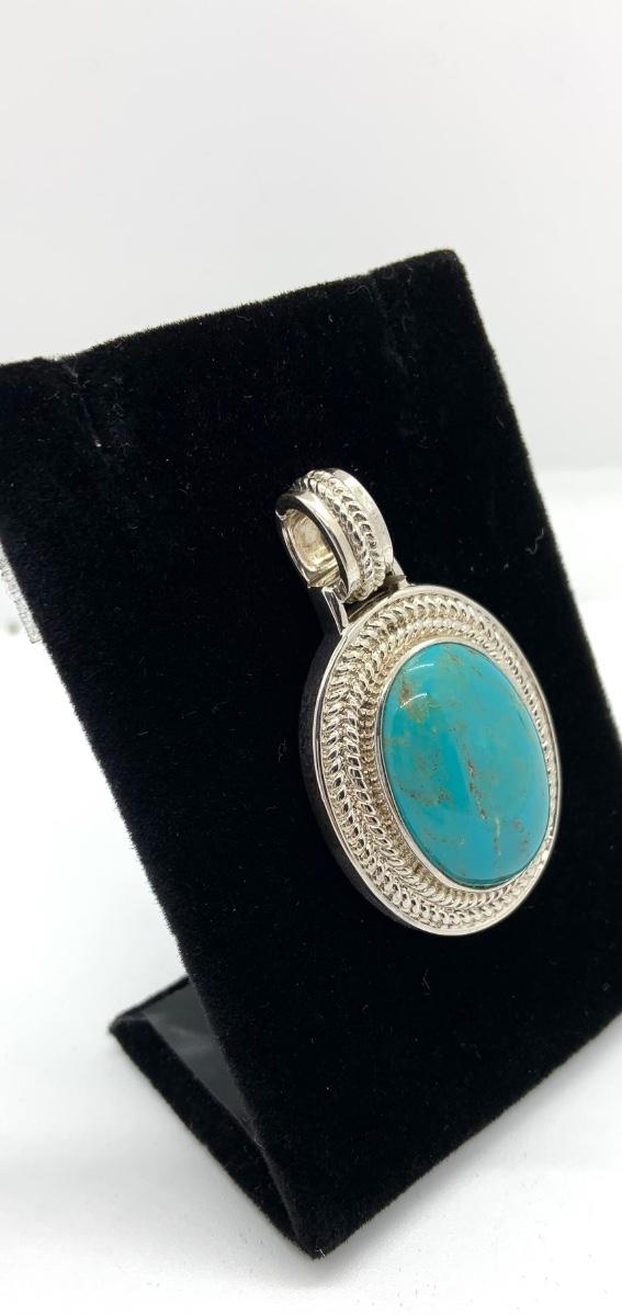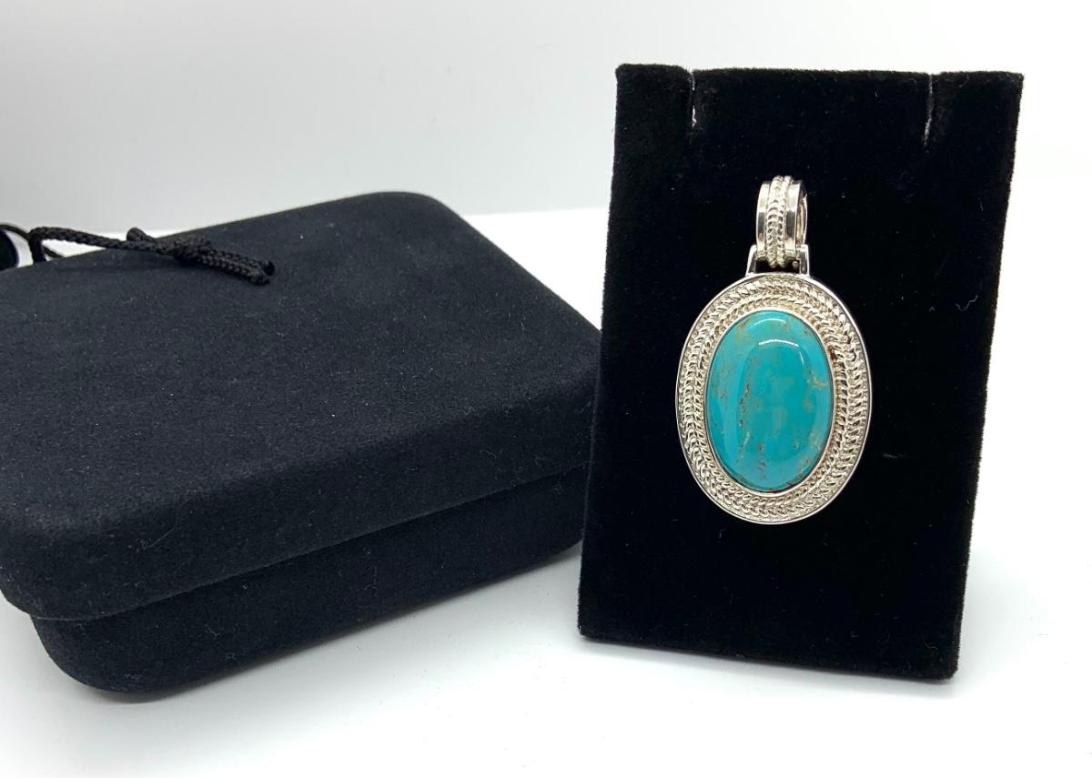 LOTJ213: New in box Beautiful Sterling Silver Turquoise Pendant