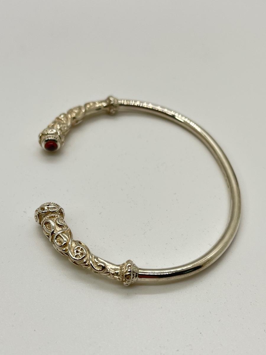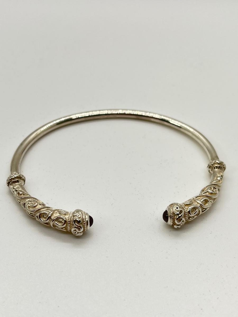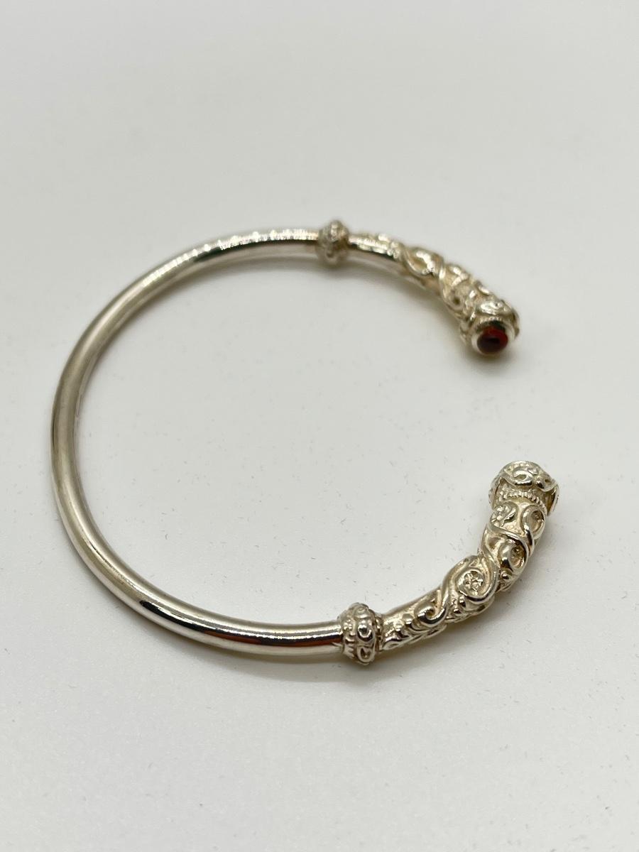 LOTJ222: New in box Sterling Silver and Garnet Celtic Torc Bracelet
