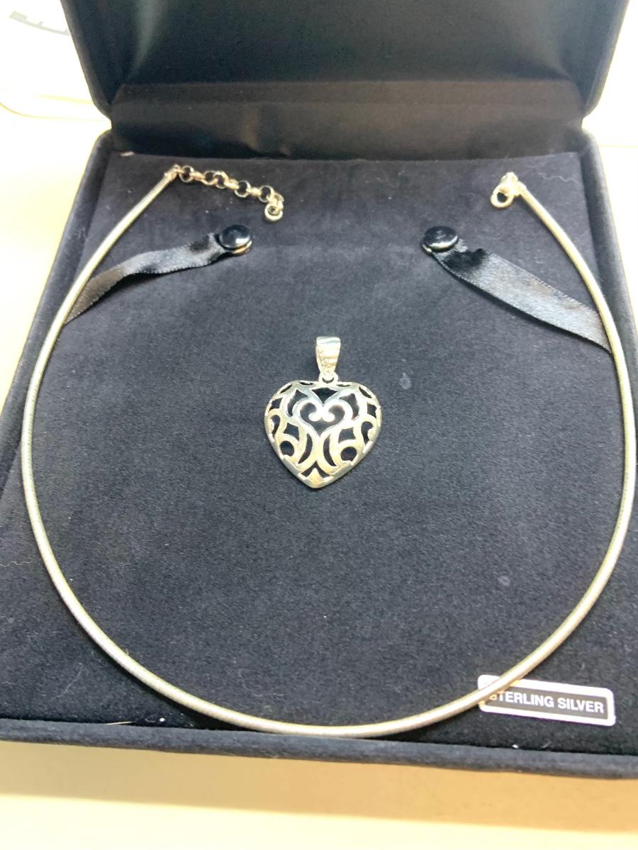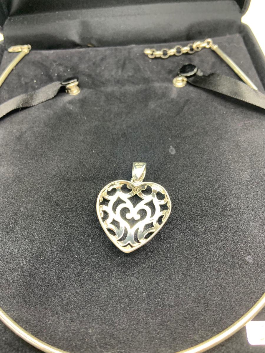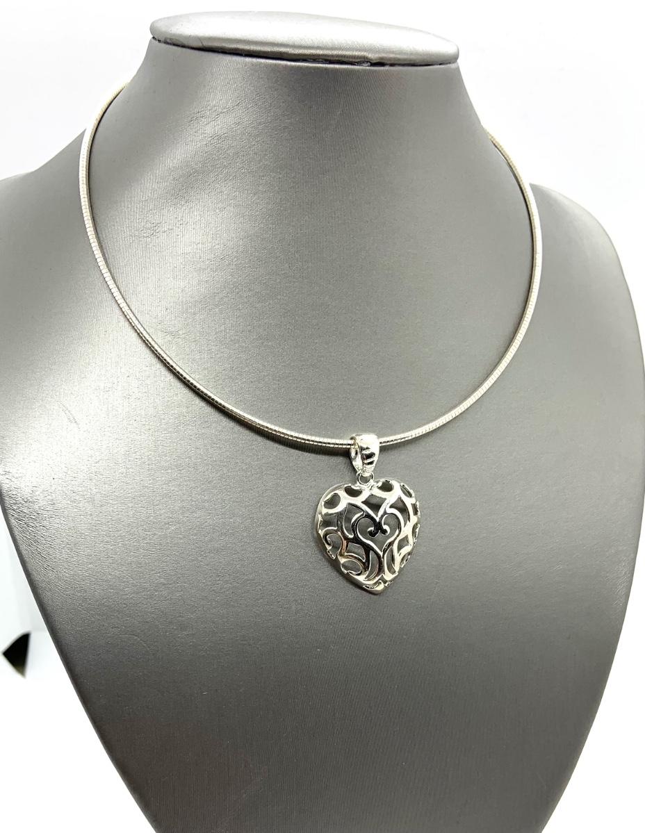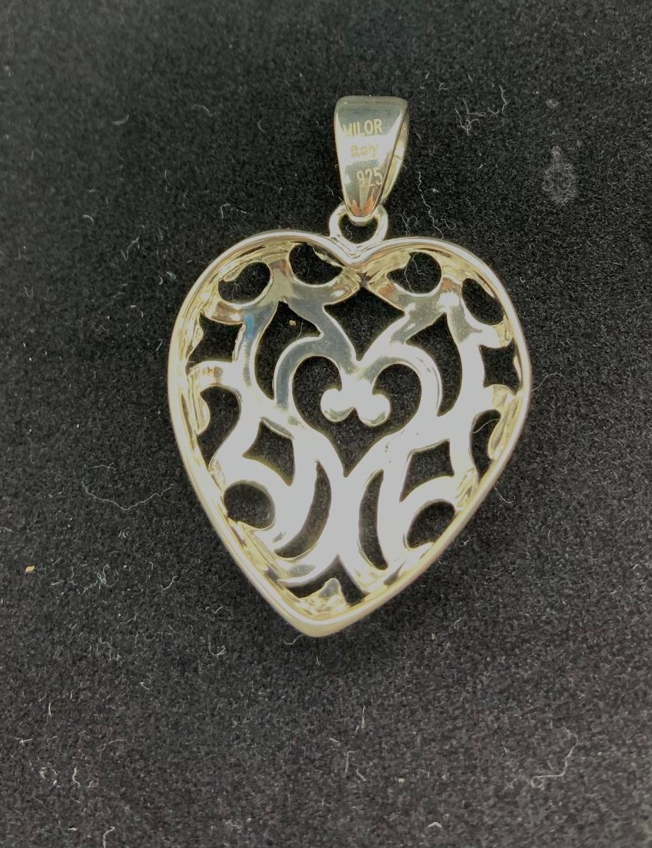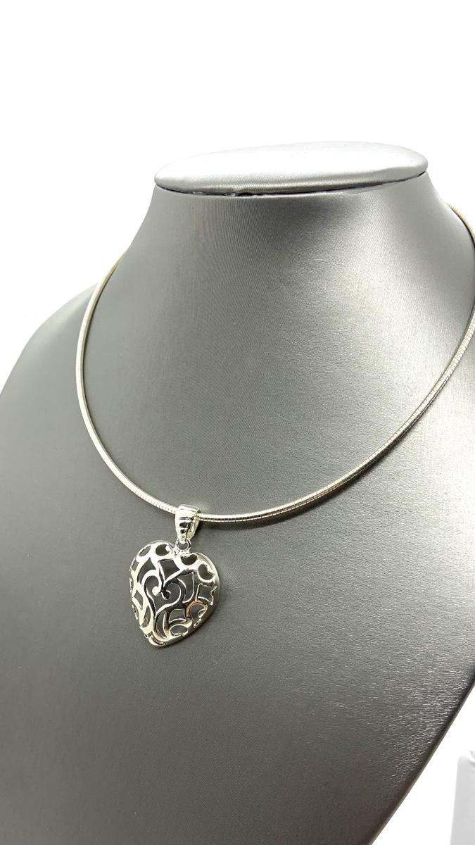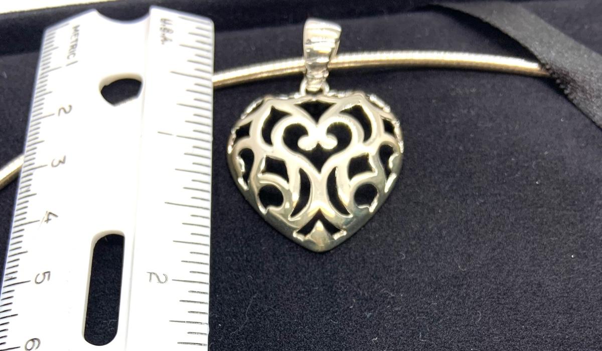 LOTJ223: New in box Sterling Silver Fillagree Heart Pendant on Round Omega Chain 16" & 2" extender