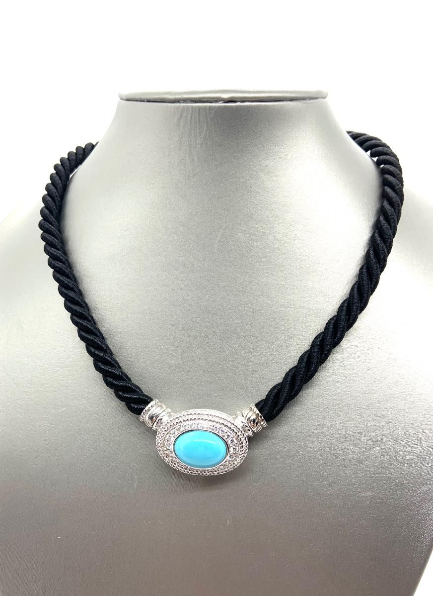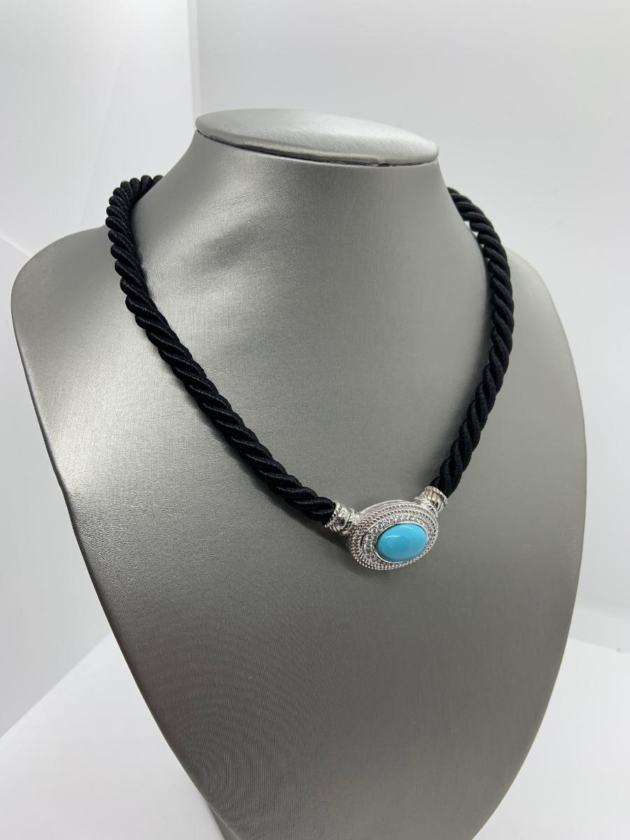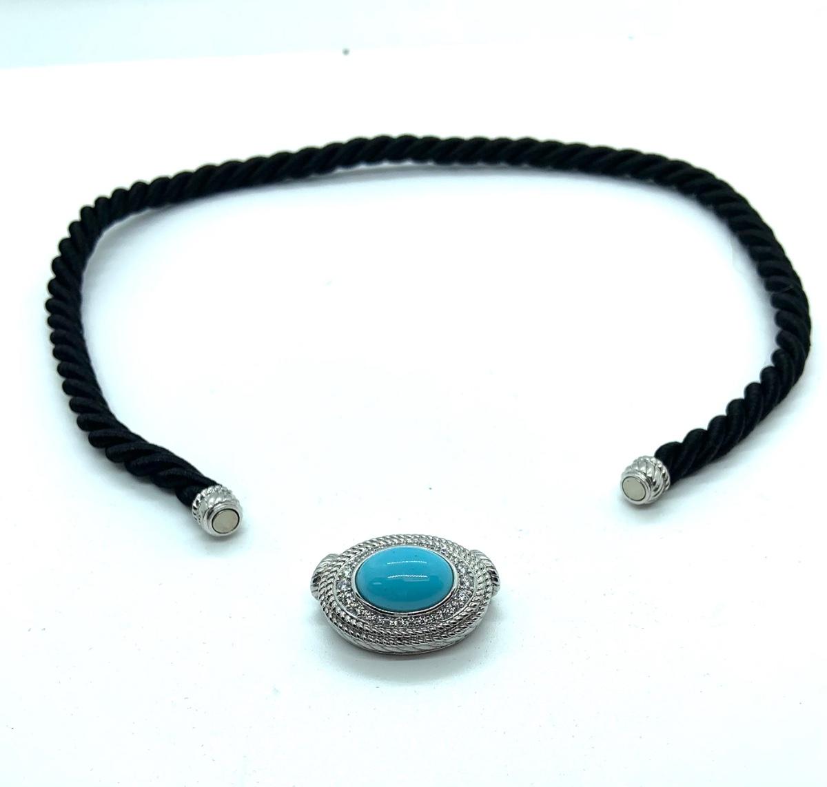 LOTJ225: New in box Judith Ripka Sterling Silver Necklace with Magnetic Changeable Turquoise Pendant on 18" Cord