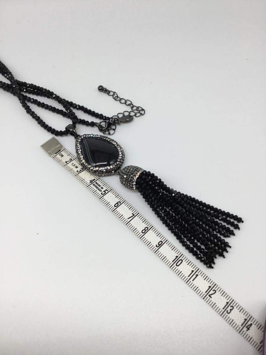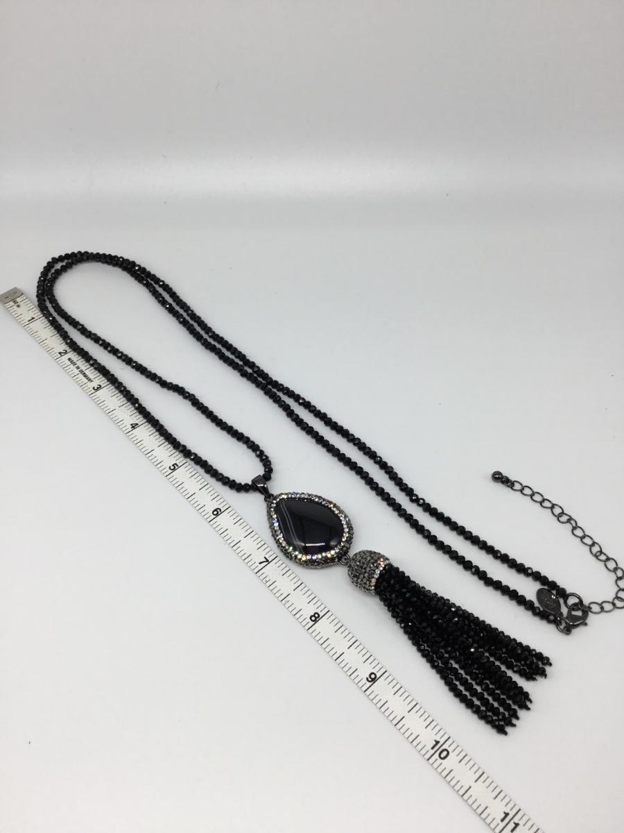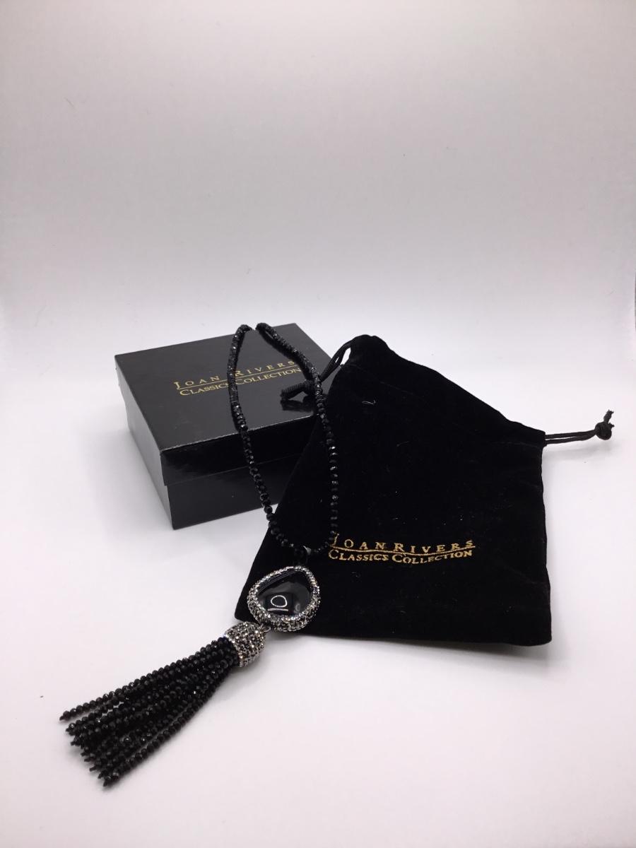 LotJ233: New in Box Joan Rivers Long Black Beads Simulated Black Onyx Pendant Tassel Necklace