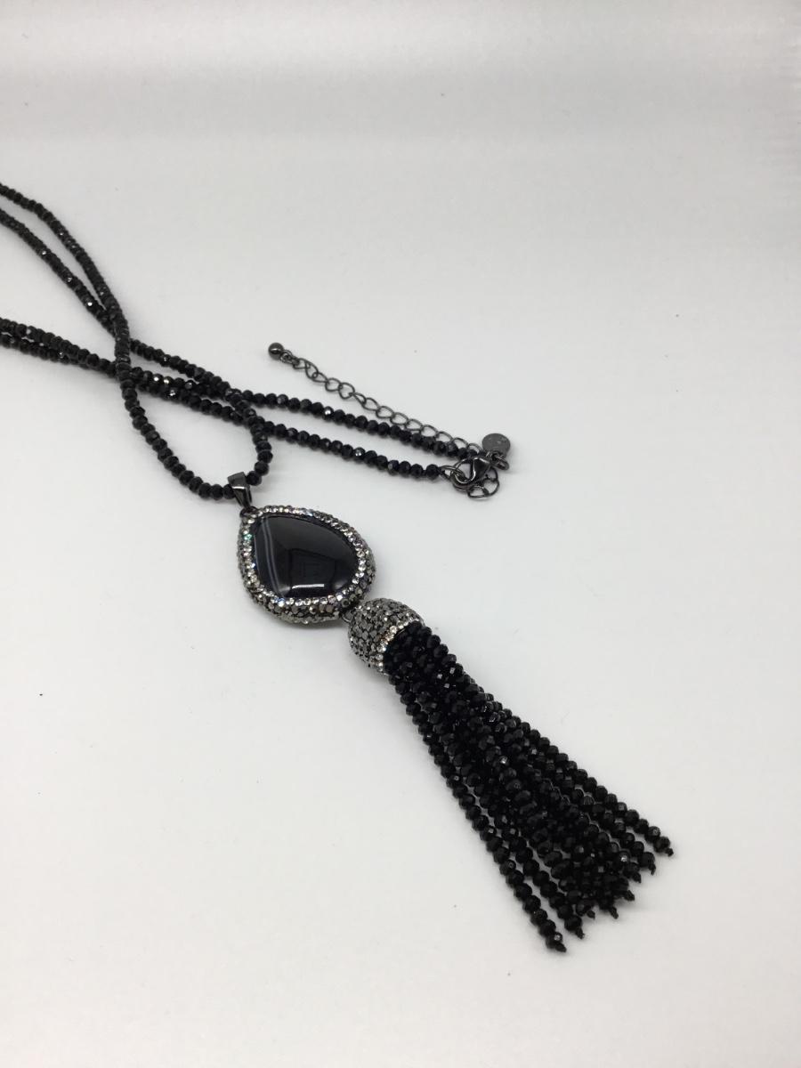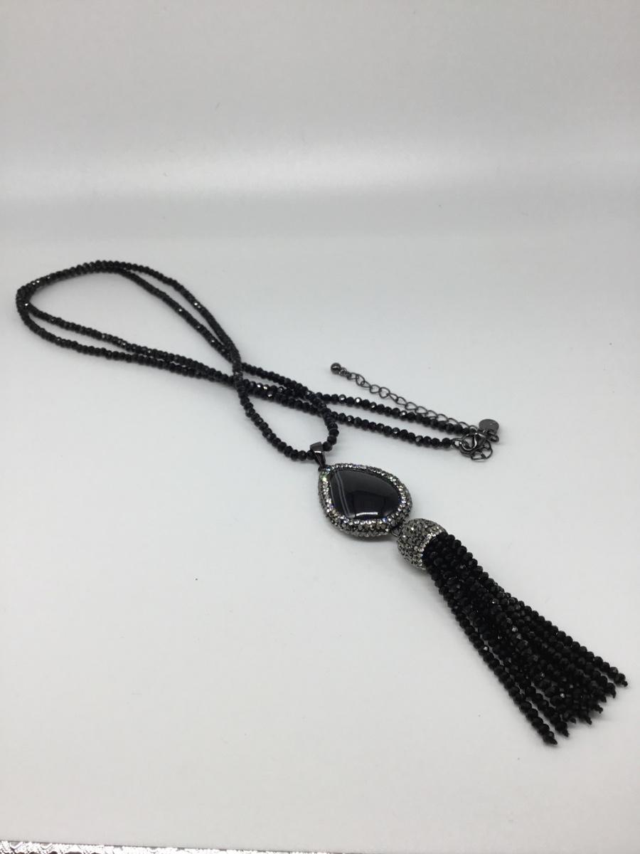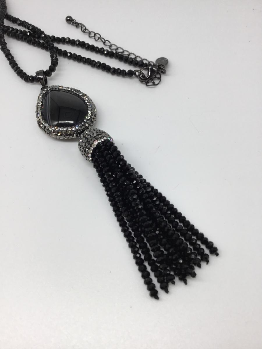LotJ233: New in Box Joan Rivers Long Black Beads Simulated Black Onyx Pendant Tassel Necklace