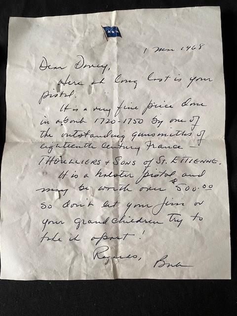 LOT#J3: Rare French 18th Century Thiolliere Flintlock Owned by Maj General David "Davey" Jones (Doolittle Raiders)