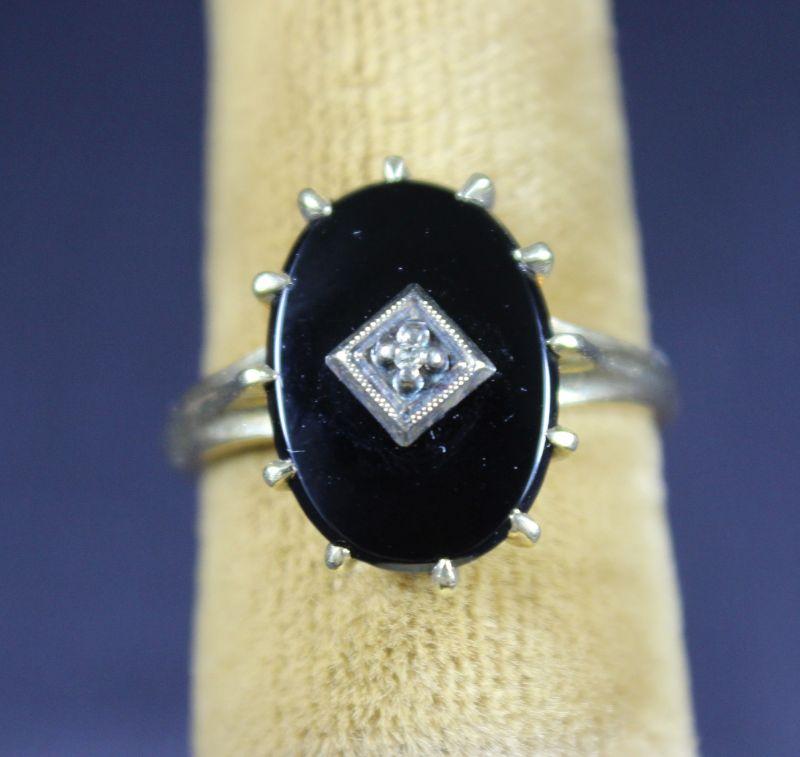 LOT#J47: 10K Antique Black Onyx Ladies Ring