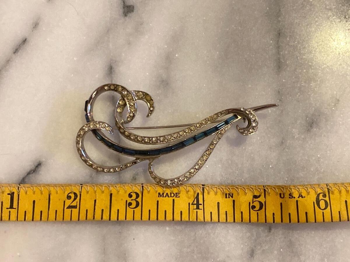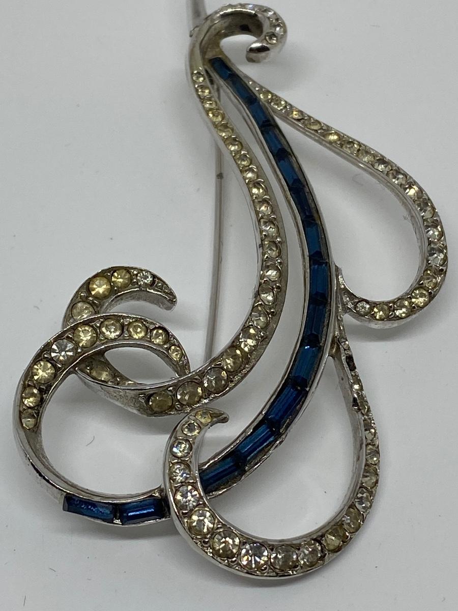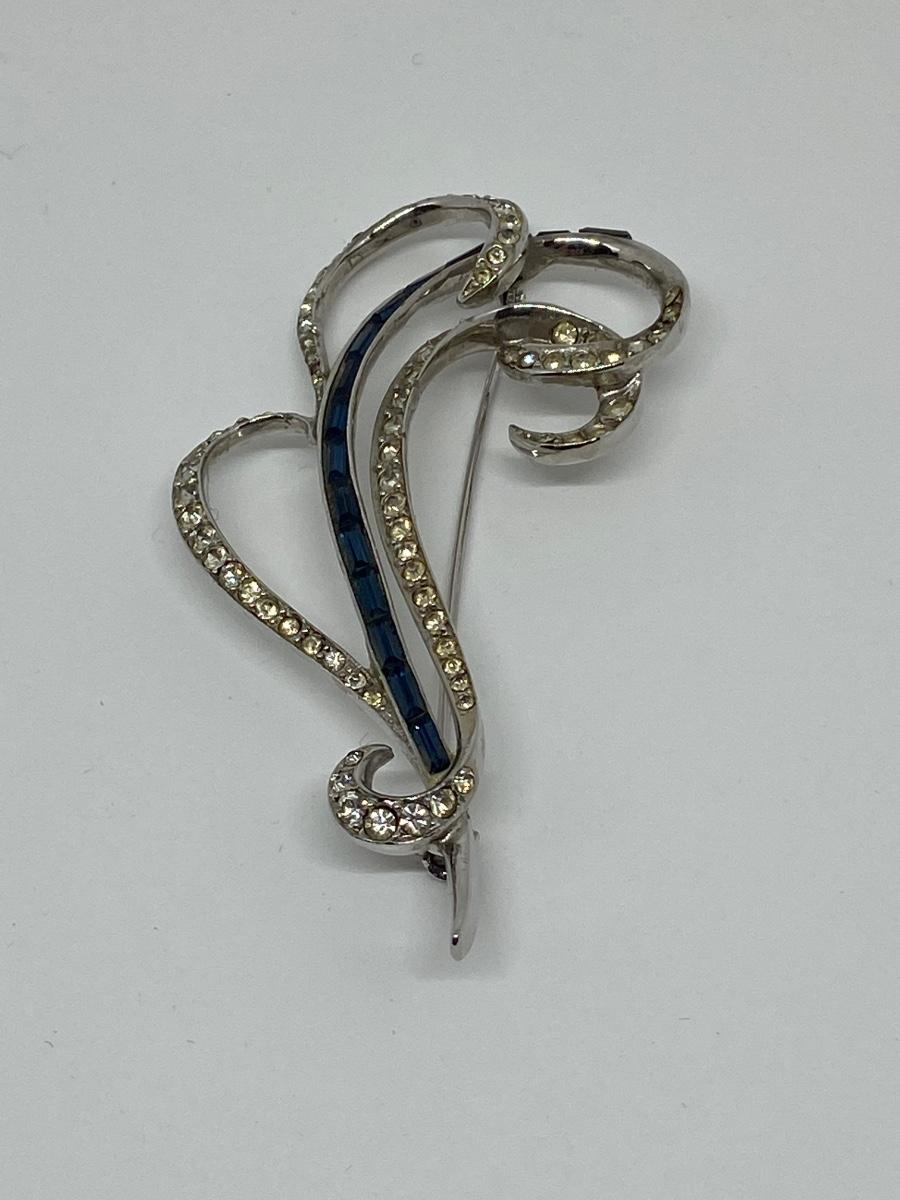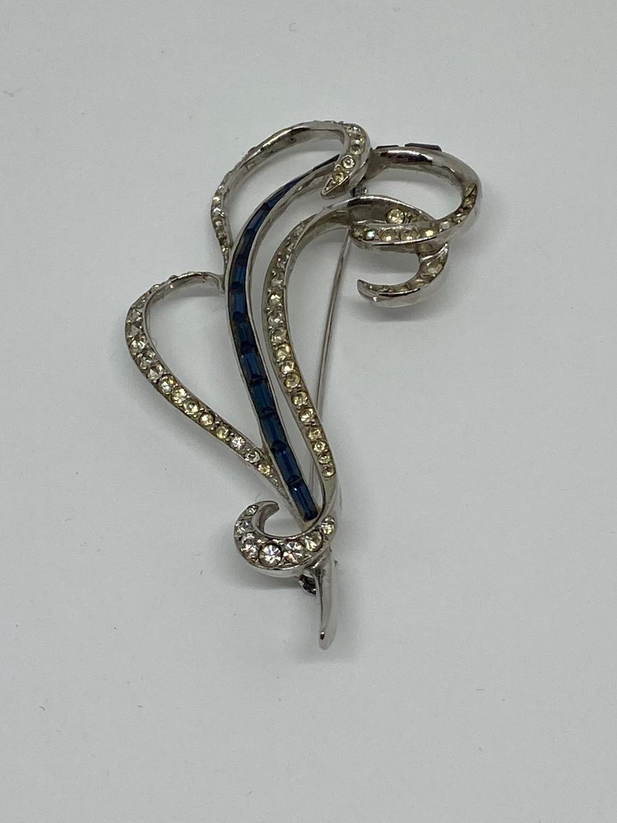 LOTJ47: Freeform Vintage Rhinestone Silvertone Brooch