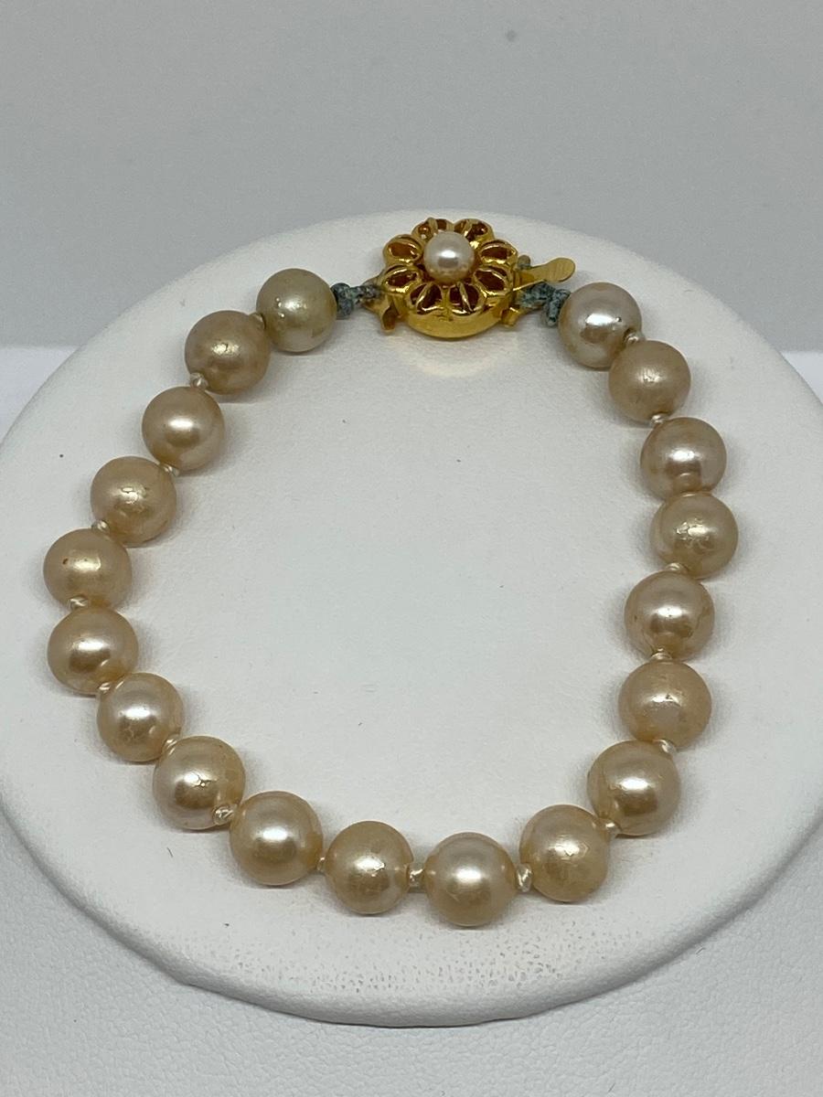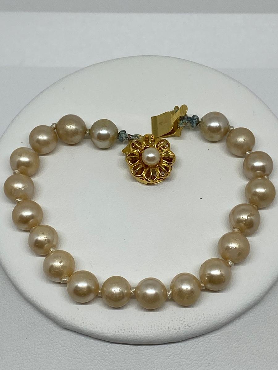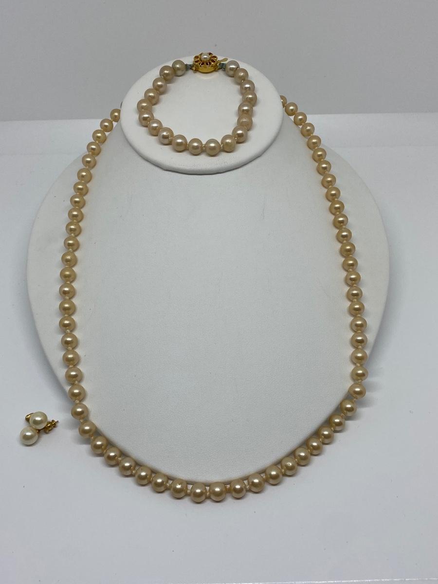 LOTJ49: Vintage Faux Pearl Necklace, Bracelet and Pierced Earrings