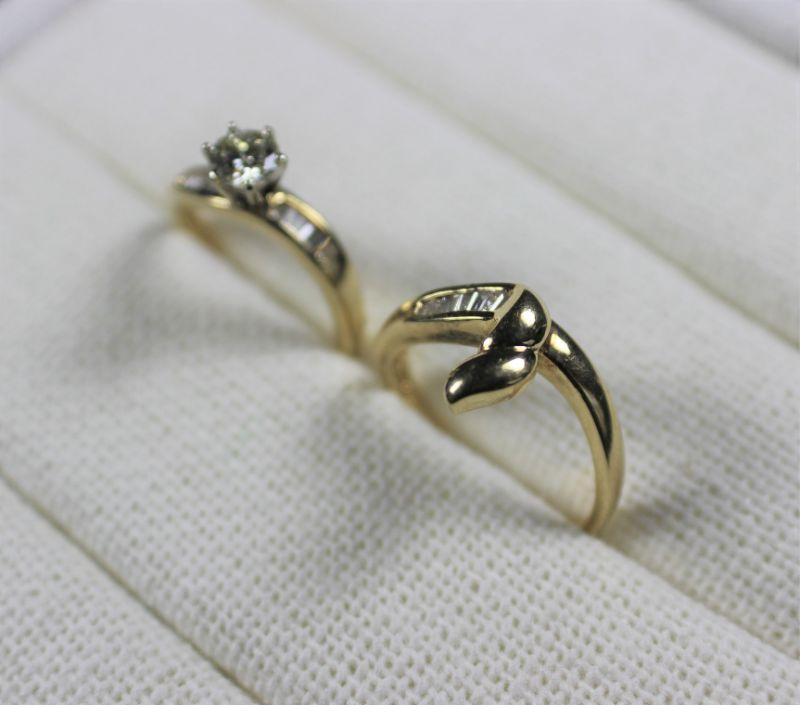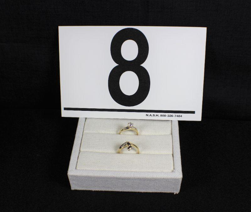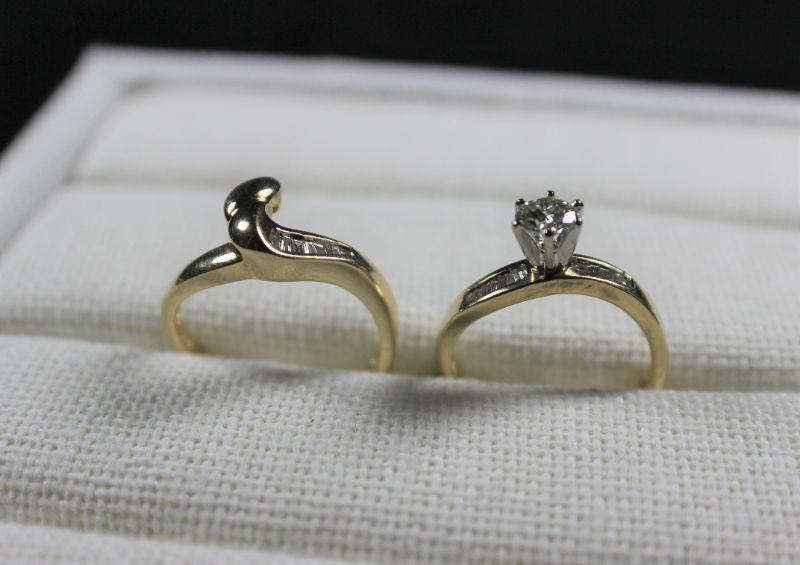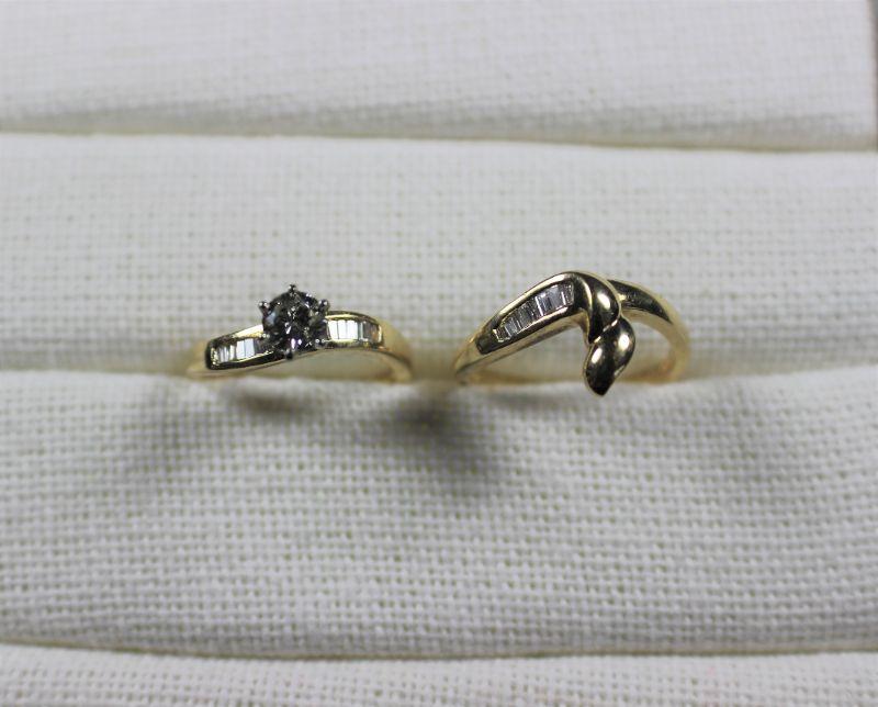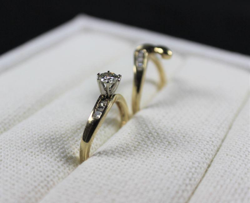 LOT#J8: Stamped 14K Brilliant Cut "Diamond" Solitaire with Companion Band [5.2g]