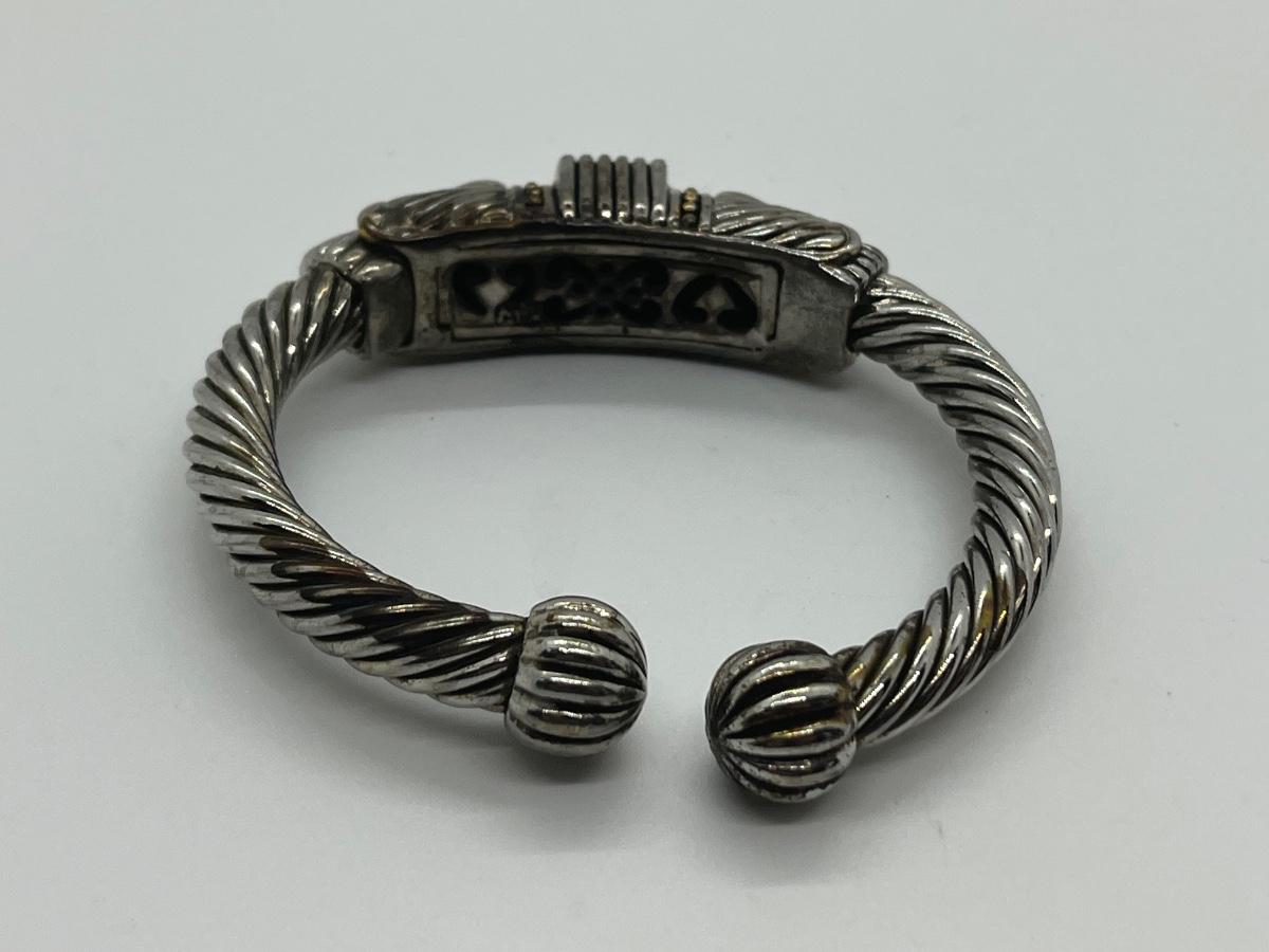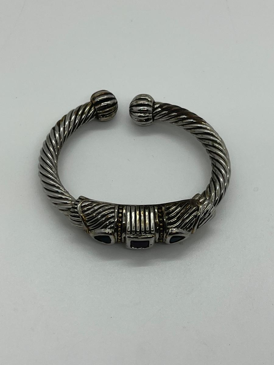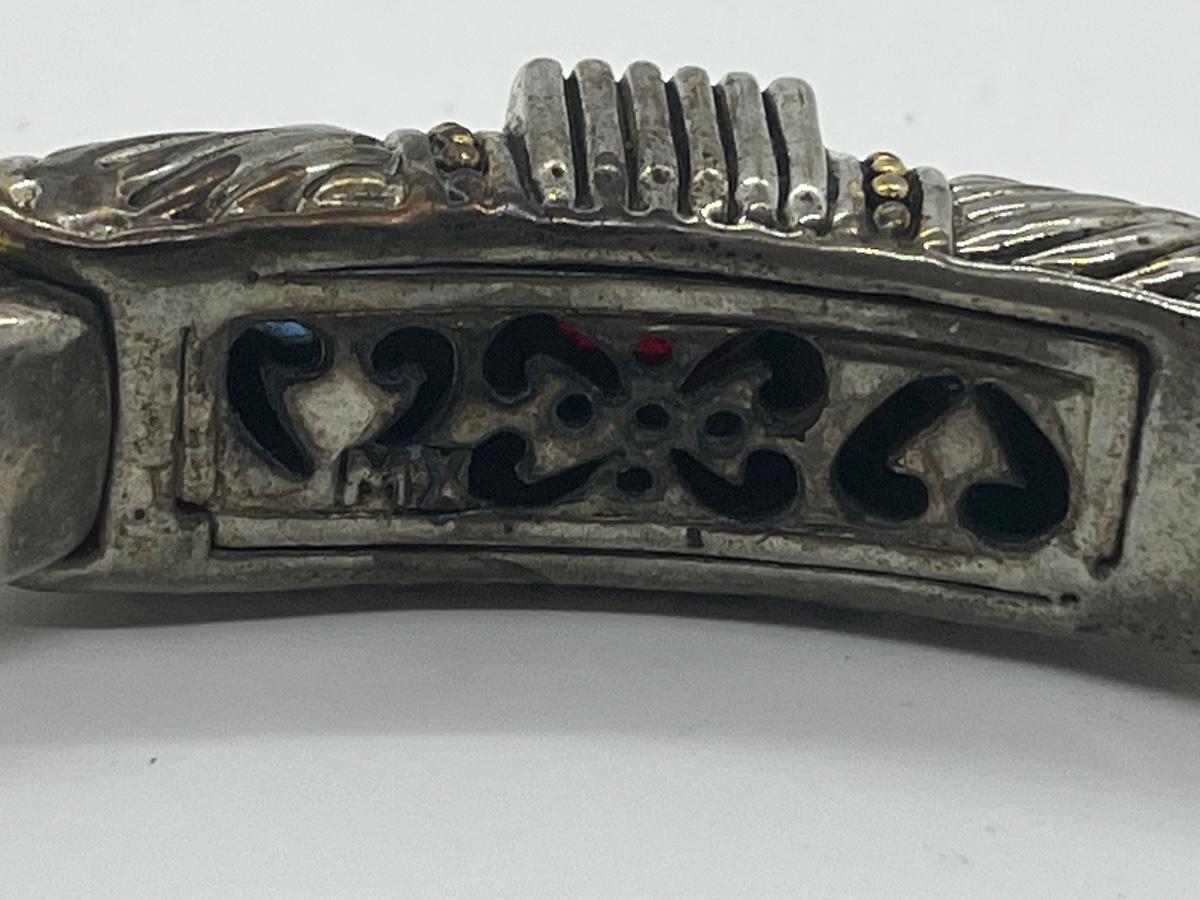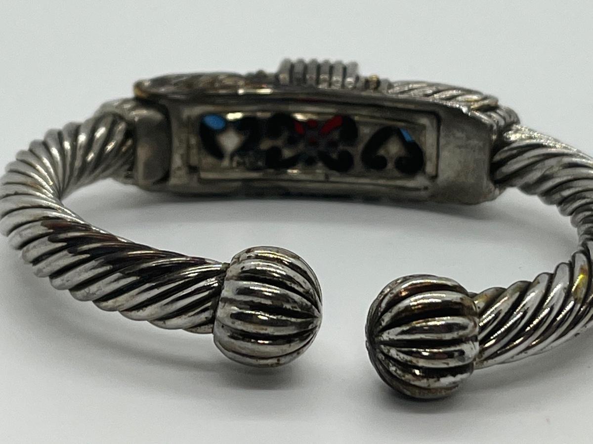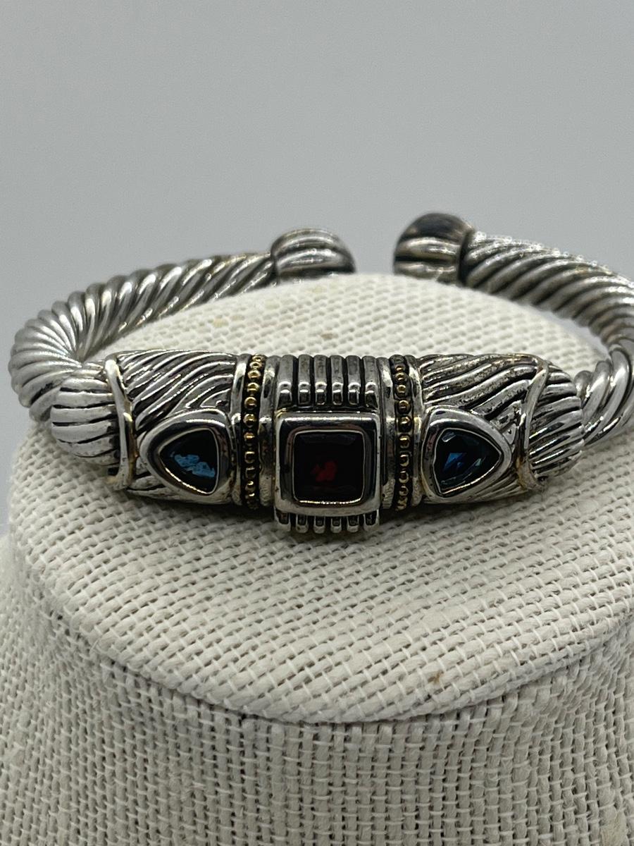 Designer Mexico Silvertone Hinged Cuff Bracelet with Red and Blue CZs. The pictures show condition, measurements if taken, and what is included in the lot. All items unless noted, are pre-owned and may or may not have been worn. Unless noted in the pictures or description, there are no boxes for the jewelry. Shipping will be offered at the actual shipping cost to your zip-code plus $5.00 for packing and handling. We can do combined shipping. Items over $50.00 will have an added insurance charge, and will be signature required for delivery at the buyers expense. All lots have a Buyers Premium of 15%. For a shipping quote, please email with zip code and items (lot) numbers. Treasure Me Estate Sales offers shipping as a courtesy and in doing so, reserves the right to choose the shipping supplies including whether not to send in an envelope or box to protect the integrity of the item. When the auction closes, and all items have sold, you will receive an invoice with all of your winning items. If you need shipping, and there is not a shipping charge on the invoice, please email for a quote and new invoice will be sent with shipping charges and pay at that time. Paying through PayPal helps so we can generate a label with tracking, but is not required. Thank you and please email with any questions.