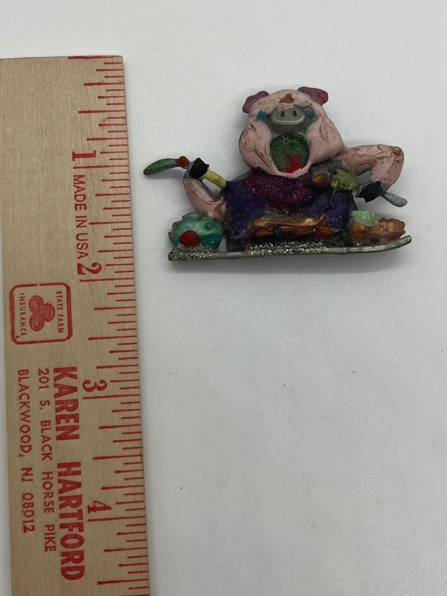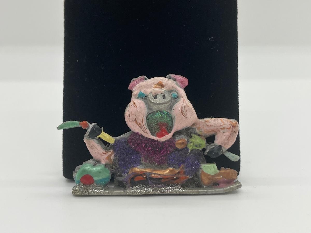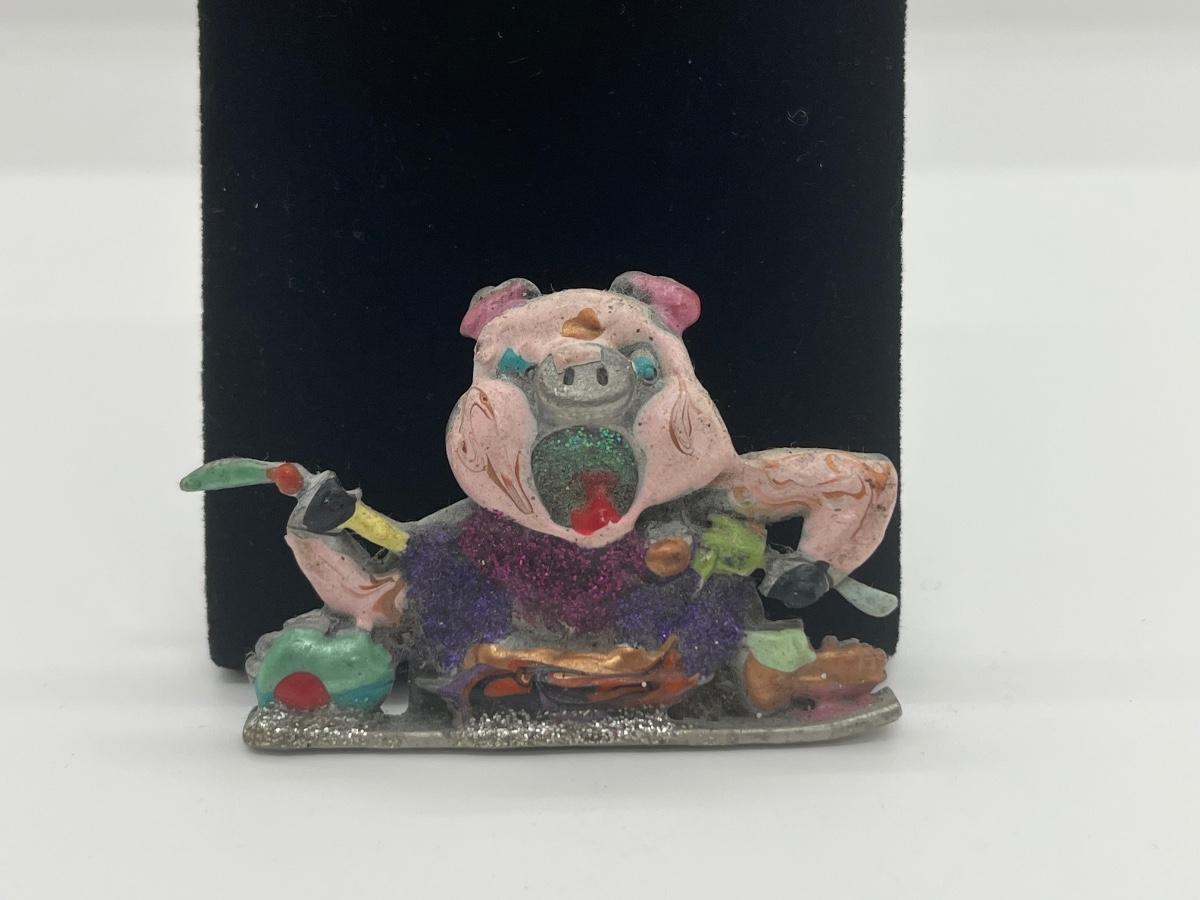 LOTJ96: JJ Signed Enamel Feasting Pig Brooch