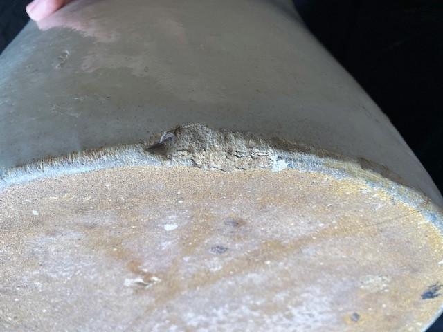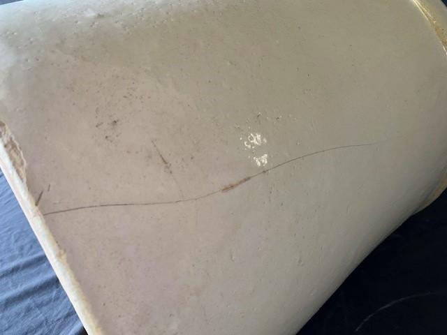 Chip on base (pictured). Appears to have a superficial crack on base. Measurement: 16 1/2"H x 15"dia