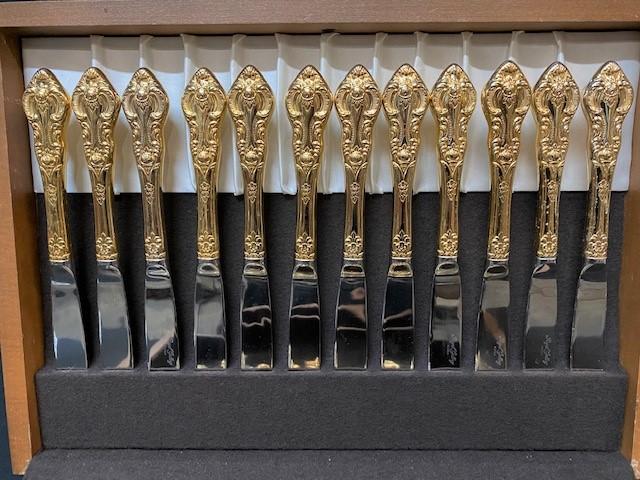 LOT#K184: Believed to be Unused Royal Gallery Gold-Toned Flatware