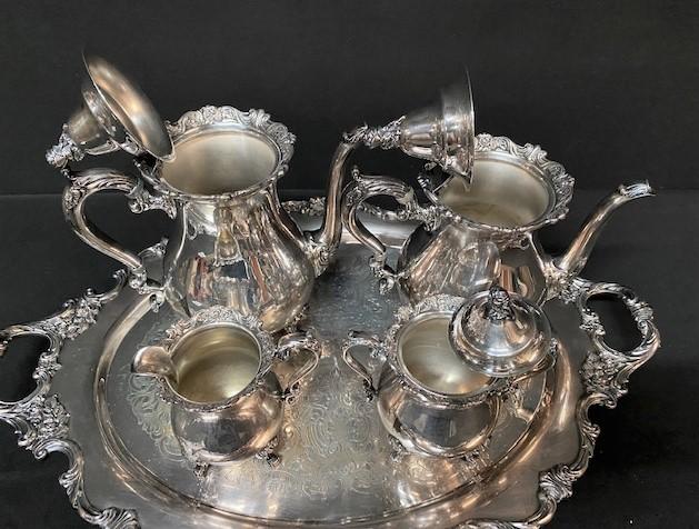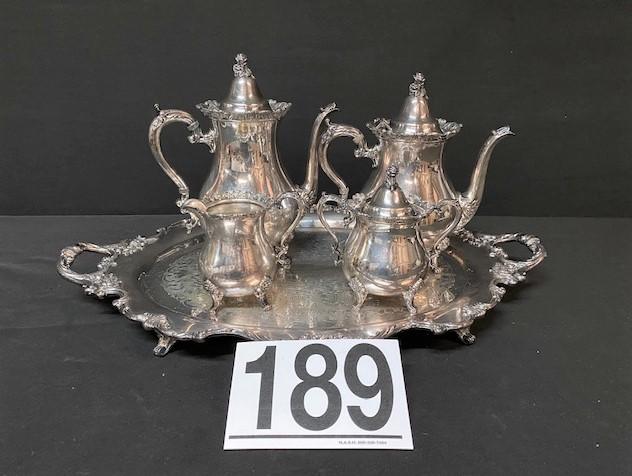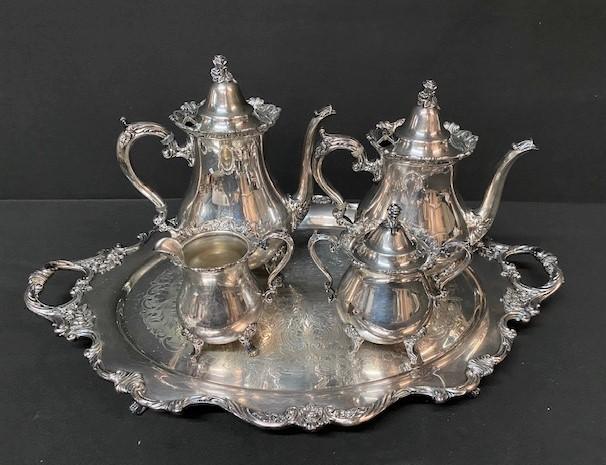 LOT#K189: 5 Piece Royal Rose by Wallace Tea Service (Plated)