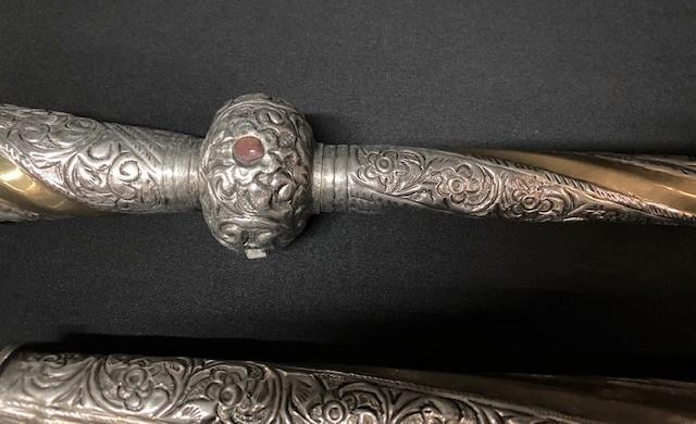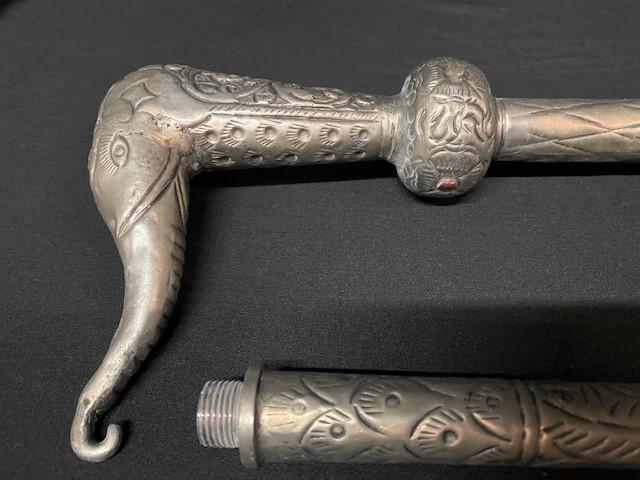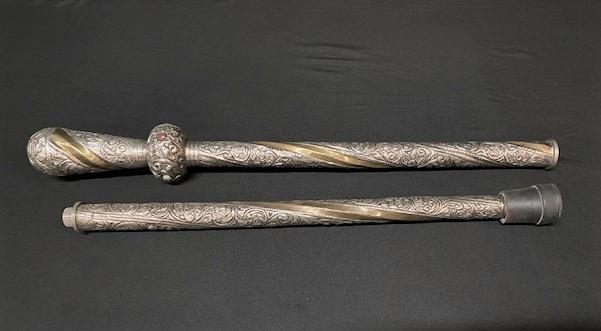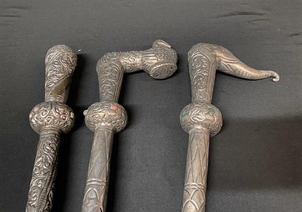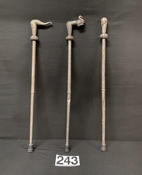LOT#K243: 3 Nickel Canes w/ Colored Stone Inlays