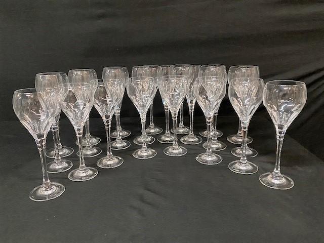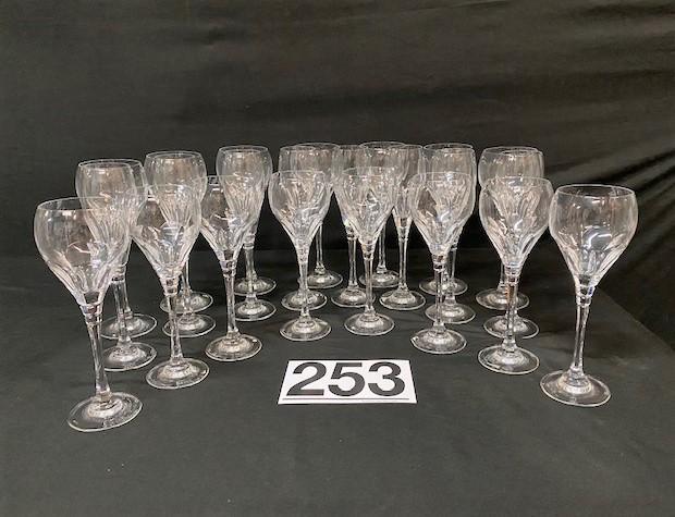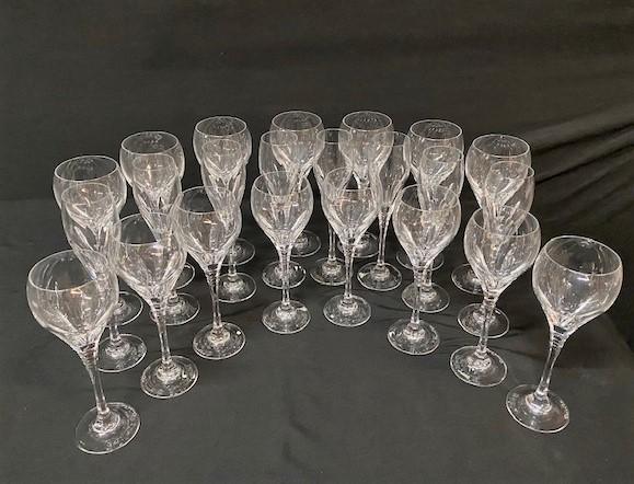 3 sizes. Appear to all be signed. Estimated weight of lot: 15lbs. Measurement: 9 1/4"H (flutes; each) 3"diameter(larger wine glasses; each)