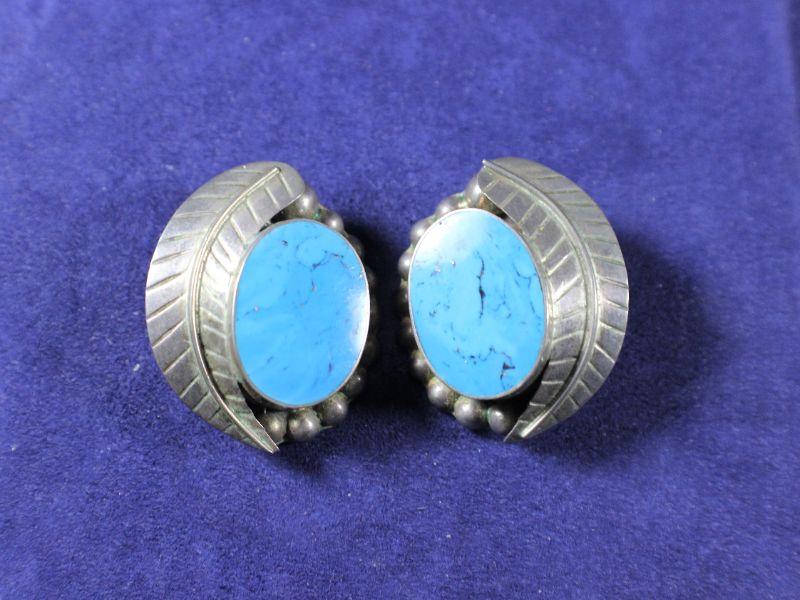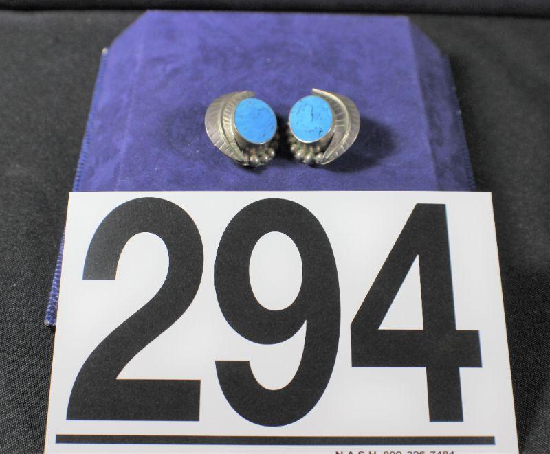 LOT#K294: Marked .925 Taxco Silver & Turquoise Earrings