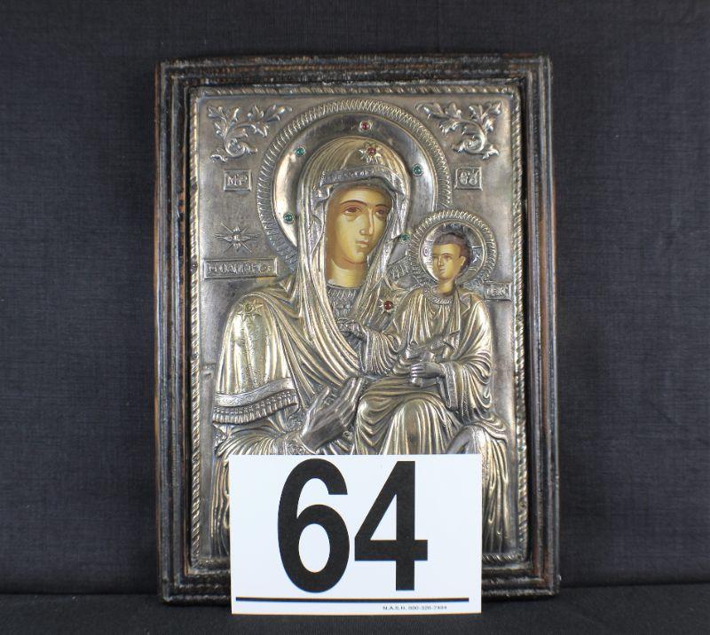 LOT#K64: Marked .950 Silver Orthodox Icon #2